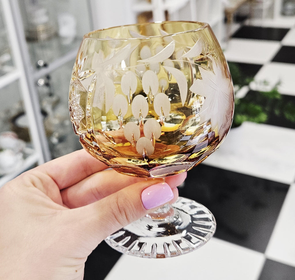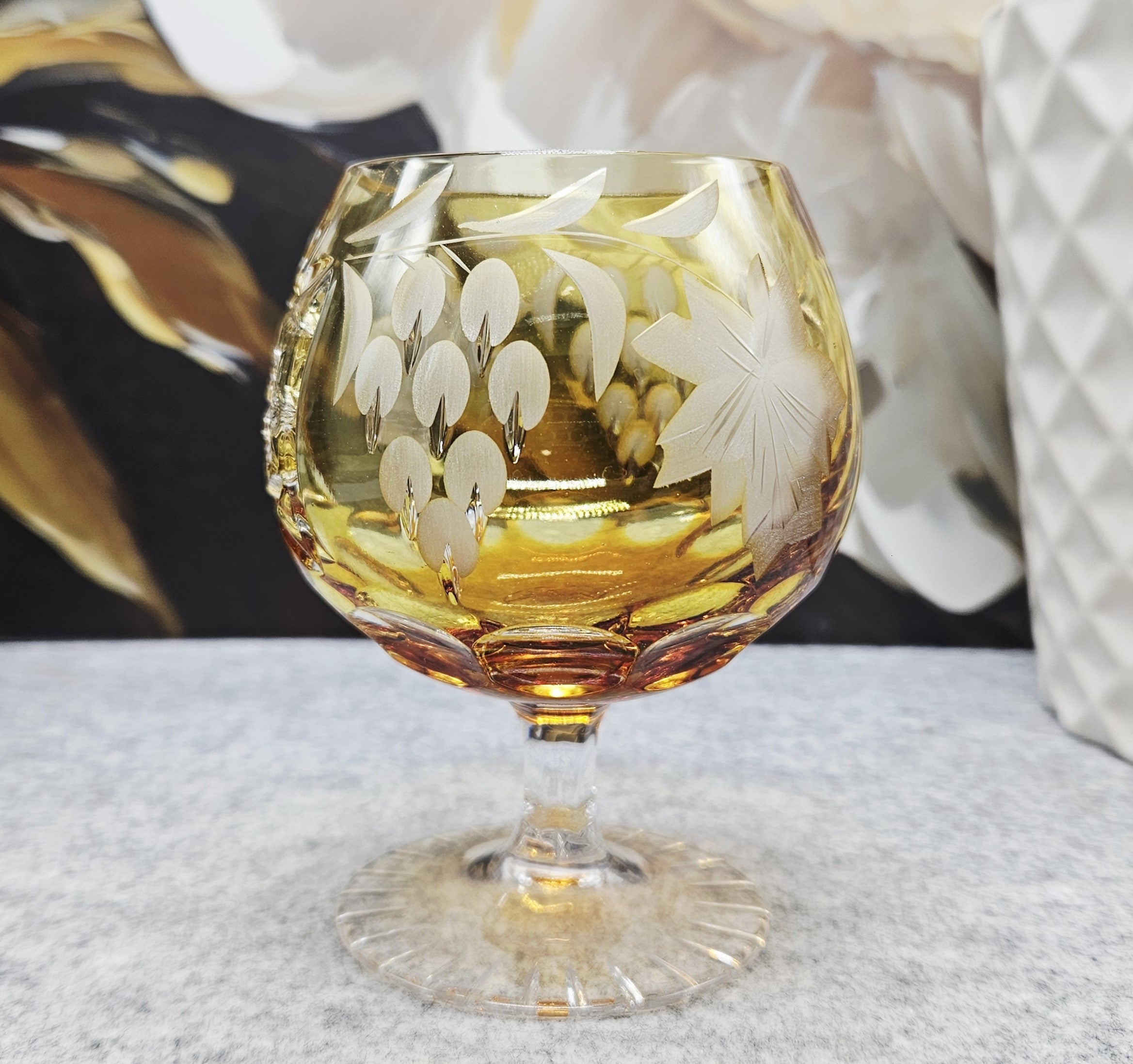 Įspūdinga, aukščiausios kokybės(24PbO), garsaus vokiškojo “Nachtmann” krištolo , “Traube” serijos (vynuogių motyvai),spalvota taurė konjakui / brendžiui.
