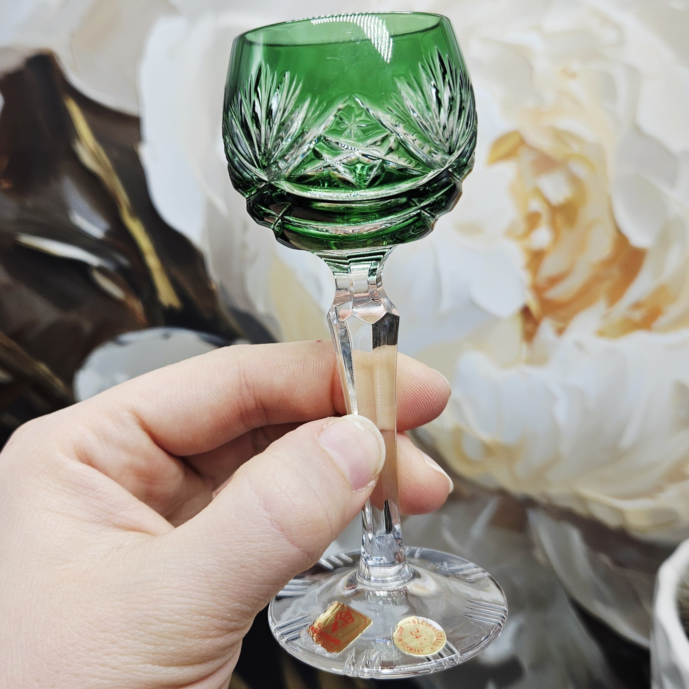 Įspūdinga aukščiausios kokybės(24PbO), garsaus vokiškojo „Nachtmann“ krištolo žalios spalvos taurelė likeriui.