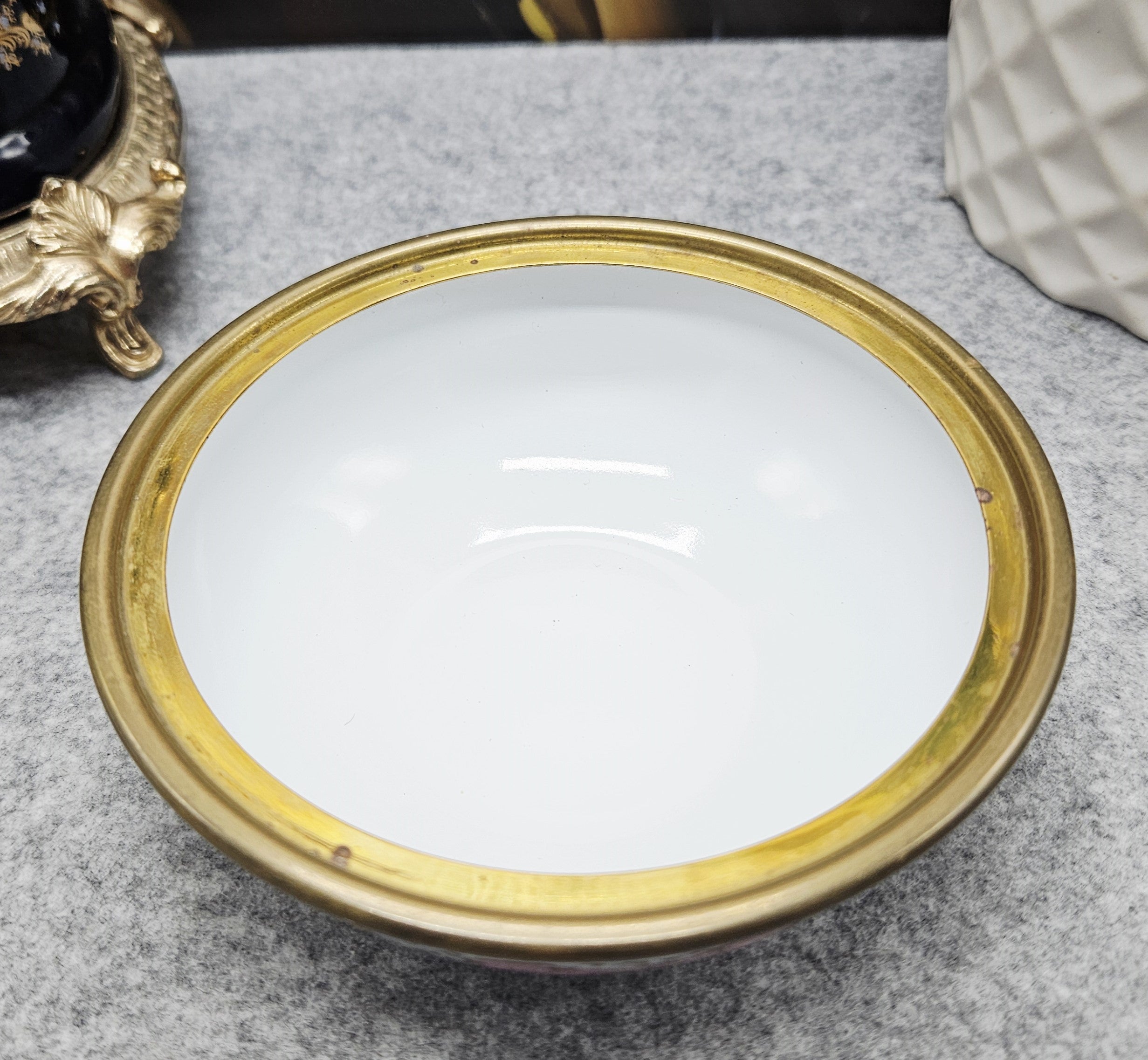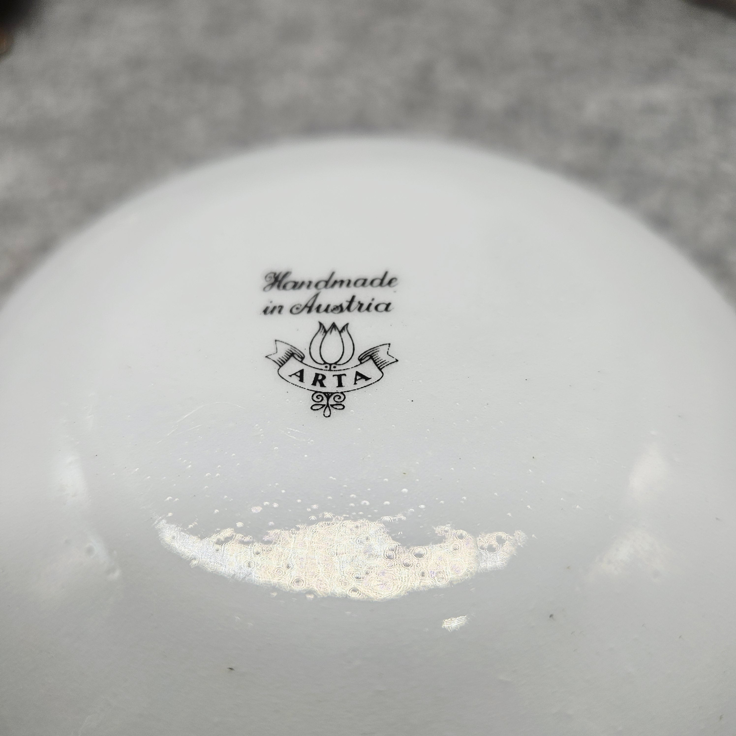 Kadangi tai antikvarinis gaminys, jis turi natūralių laiko ir naudojimo žymių – vietomis gali būti švelniai pablukęs dekoras, sueižėjusi glazūra, kas tik dar labiau pabrėžia jo autentiškumą ir istorinį žavesį.
