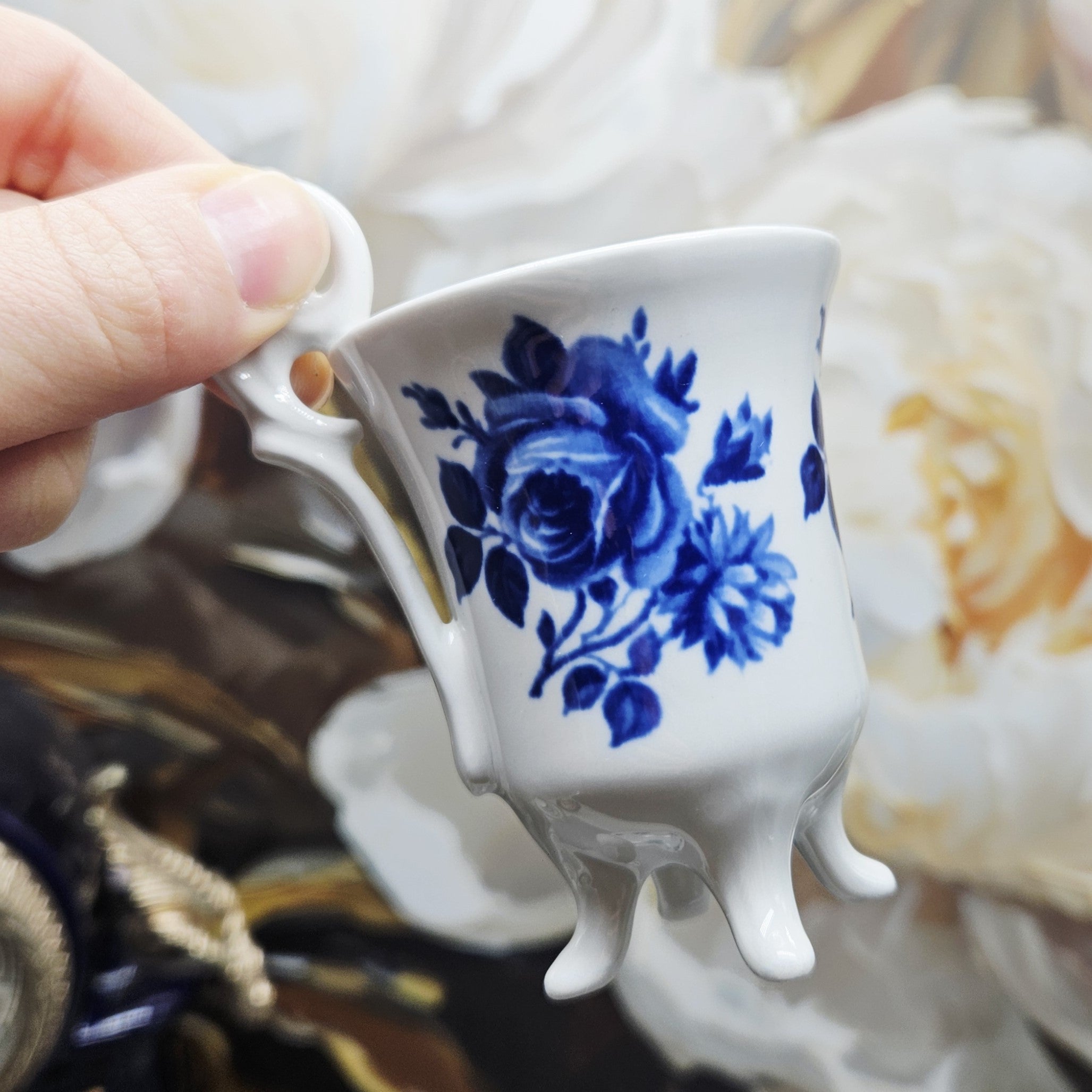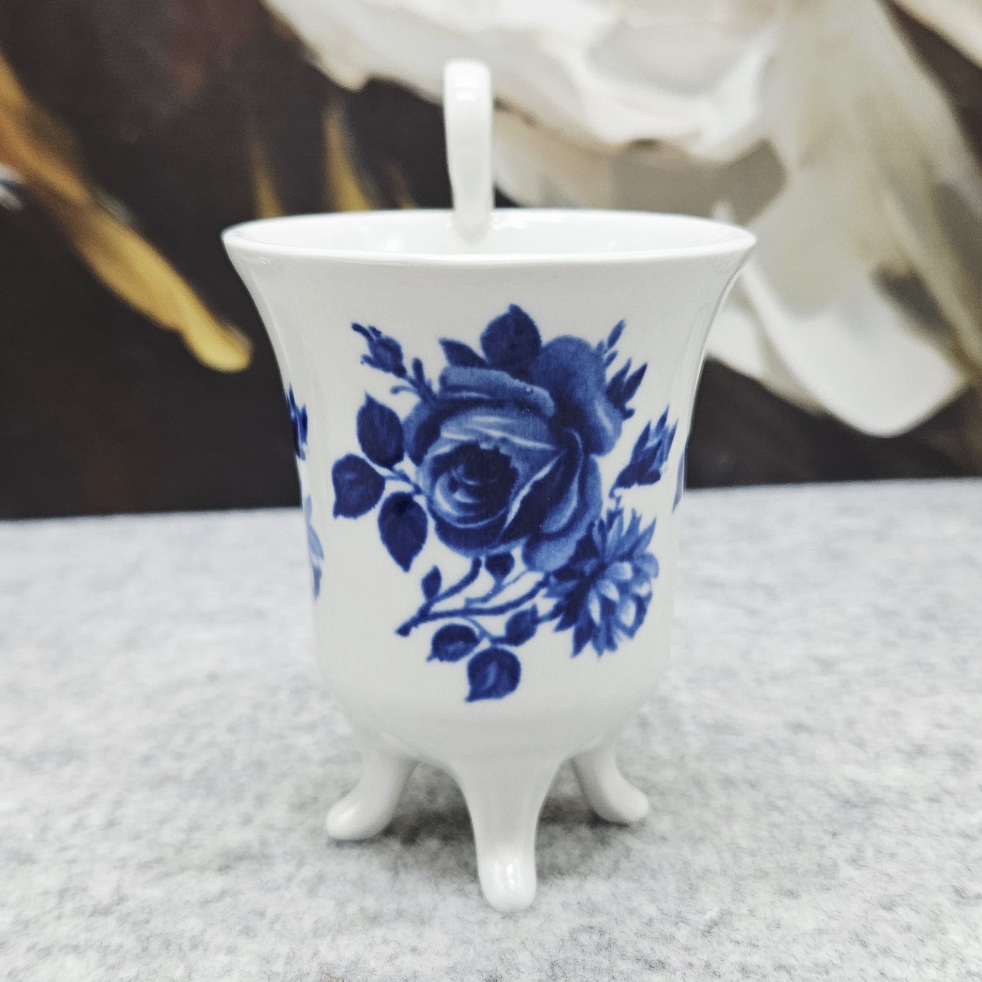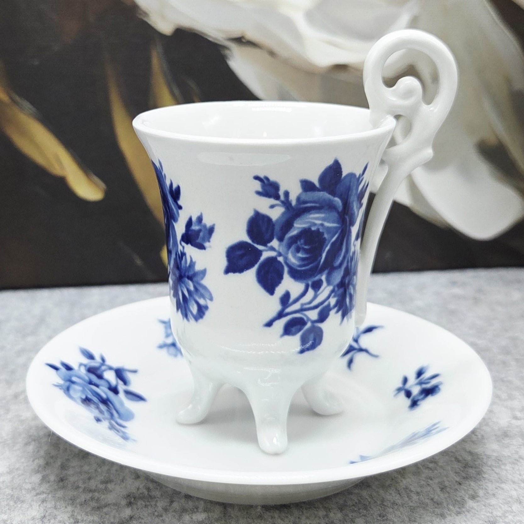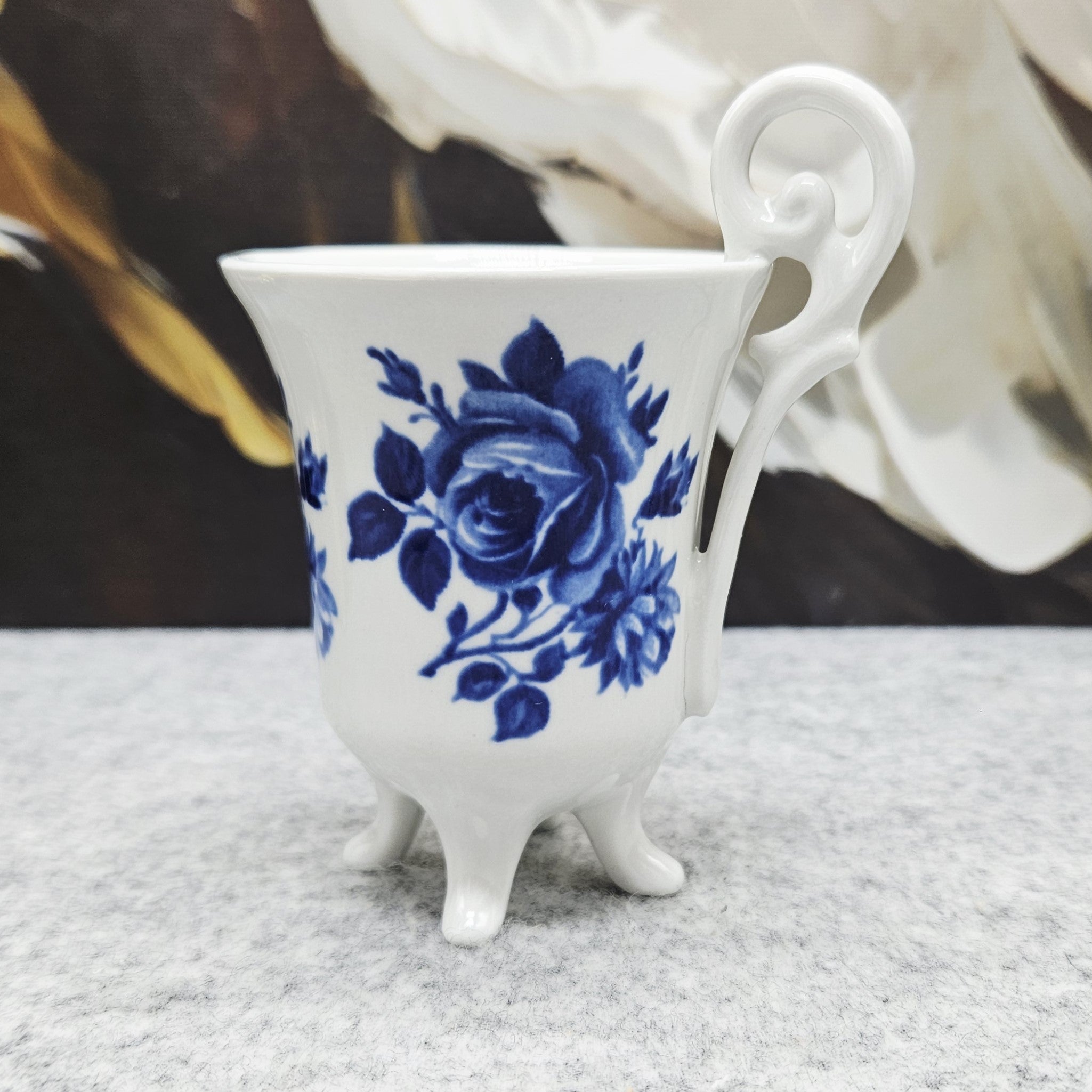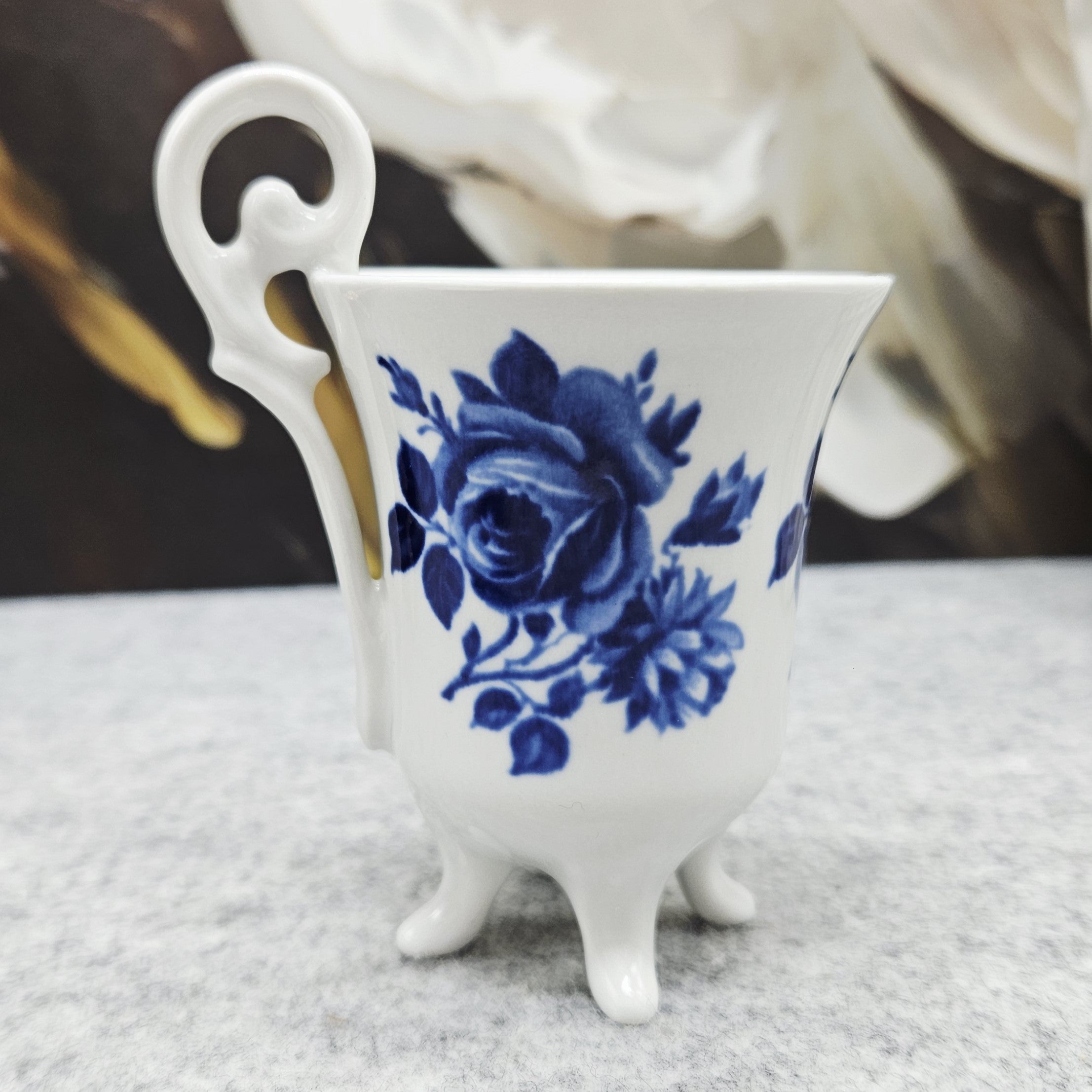 Elegantiškas Plankenfels porceliano puodelis su lėkštute – subtilaus dizaino klasikinis kūrinys, dekoruotas rafinuotais mėlynais gėlių motyvais. Išskirtinė puodelio forma su dekoratyvine rankenėle ir elegantiškomis kojelėmis suteikia jam ypatingo žavesio bei išskirtinumo. Aukštos kokybės porcelianas pasižymi lengvumu, tvirtumu ir laikui nepavaldžia estetika, todėl puodelis puikiai tiks tiek kasdieniam kavos ar arbatos ritualui, tiek kolekcijai ar interjero puošybai. Tai stilingas pasirinkimas vertinantiems klasikinį grožį, porceliano tradicijas ir eleganciją.