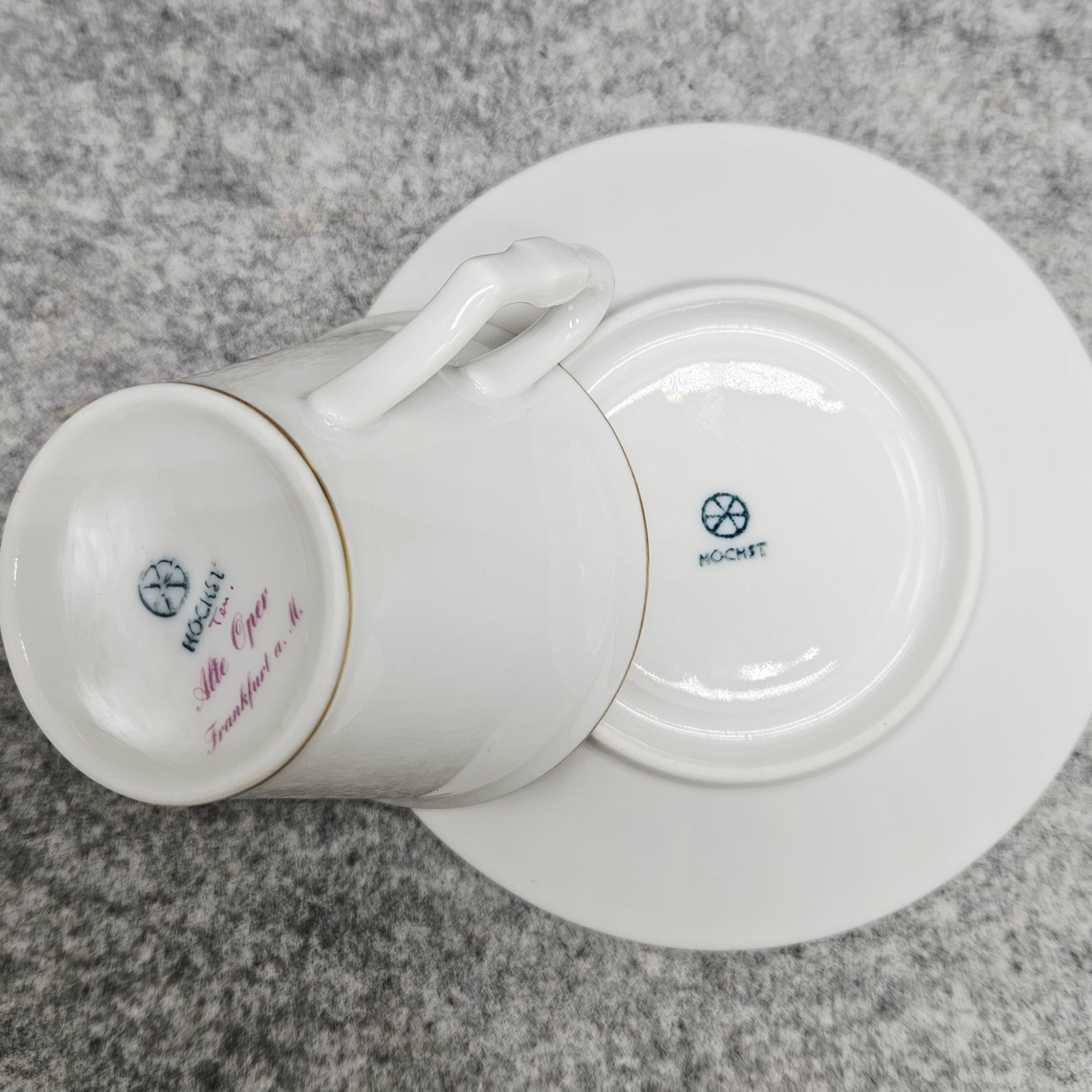 Höchst porceliano puodelis su lėkštute „Frankfurto operos rūmai“ (~100ml.)