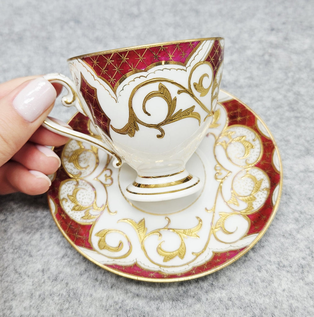 Išskirtinio grožio Boseck & Co Austria porcelianinis puodelis – subtilios klasikos ir senojo Vienos meistriškumo pavyzdys. Šis rankų darbo kūrinys išsiskiria lengvu, plonu porcelianu, spalvotais, meistriškai tapytais ornamentais bei auksiniais akcentais, būdingais aukštos klasės austrų porcelianui. Kiekviena detalė atspindi XIX a. pabaigos – XX a. pradžios dekoravimo tradicijas, kai estetika ir precizika buvo aukščiausio lygio.