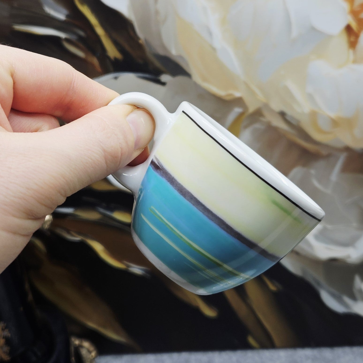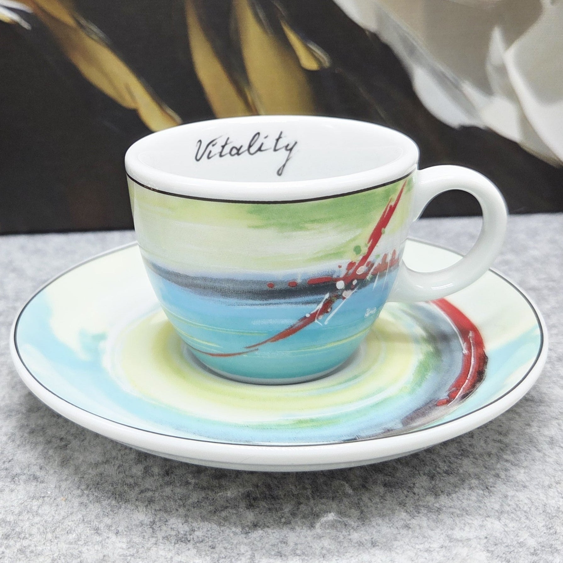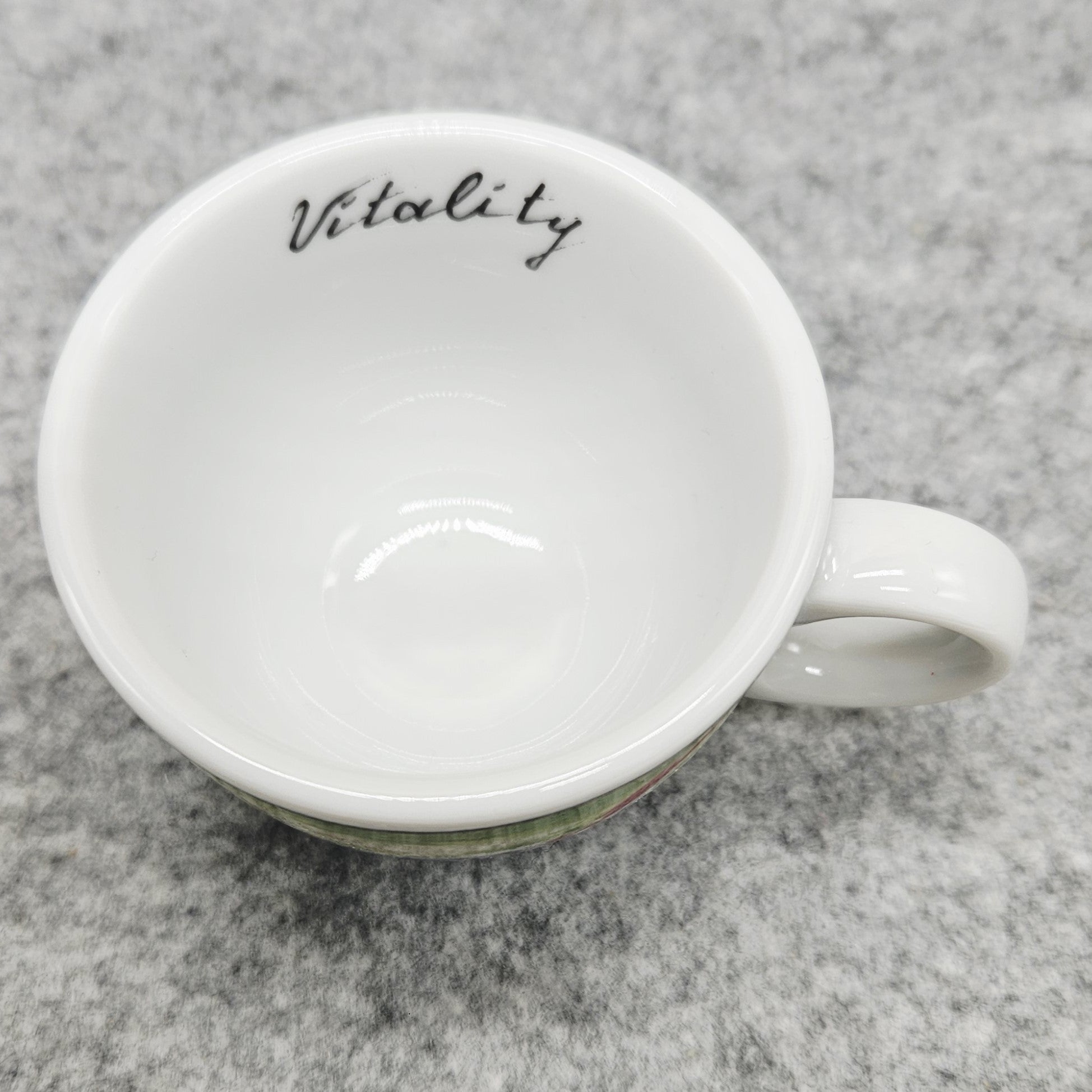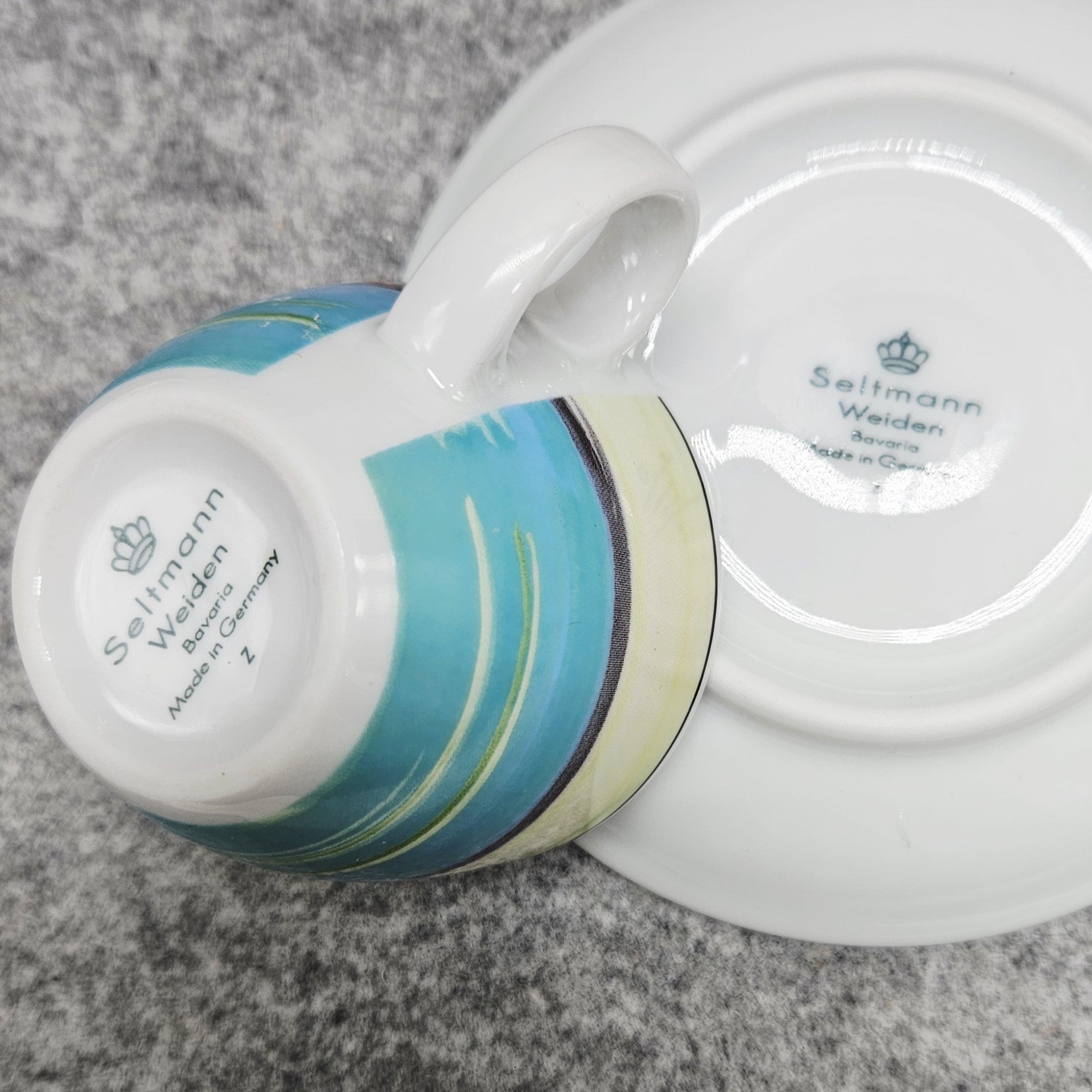 Stilingas ir modernus Seltmann Weiden „Vitality“ kolekcijos porceliano puodelis su lėkštute, išsiskiriantis spalvingu, gyvybingu dekoru ir šiuolaikišku dizainu. Dinamiškos žalios, mėlynos bei raudonos spalvų linijos suteikia energijos ir lengvumo įspūdį, todėl šis rinkinys puikiai tiks kasdieniam naudojimui ar interjero akcentui.