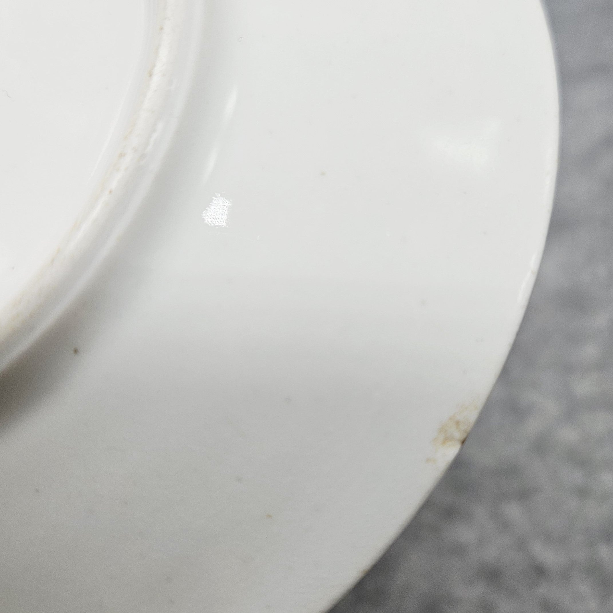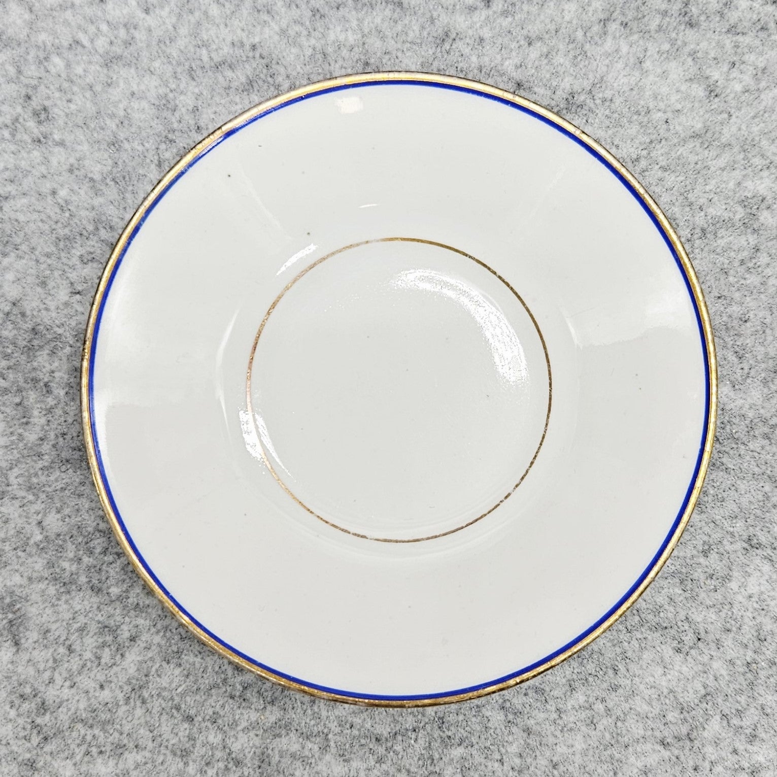 Kadangi tai yra antikvaras (beveik 100 m. amžiaus), turi natūralių naudojimo žymių, pablukusios/ pabraižytos auksuotos detalės, rankenėlė, lėkštutės apatinėje pusėje yra nuskilimas (vadovautis nuotraukomis).