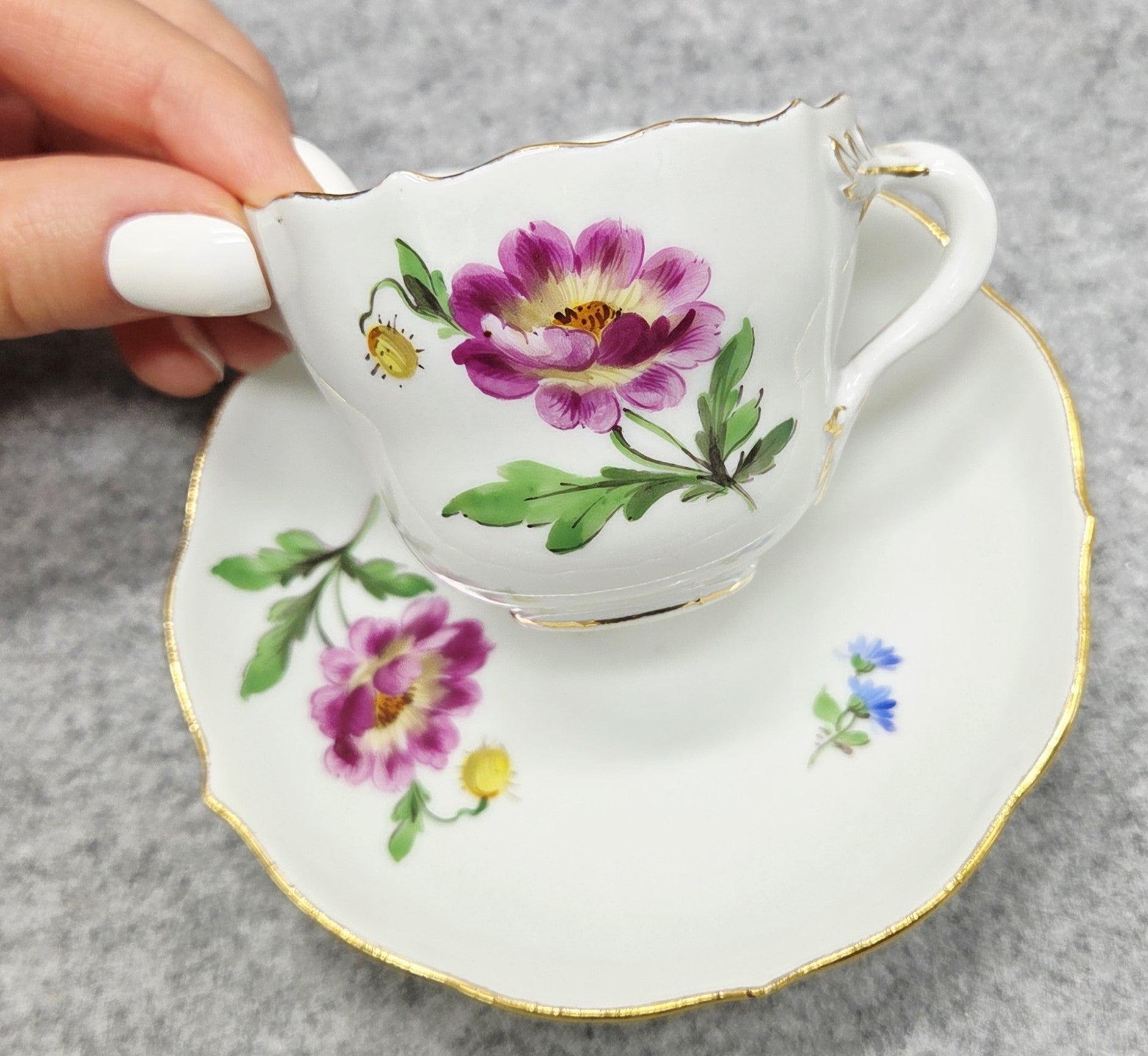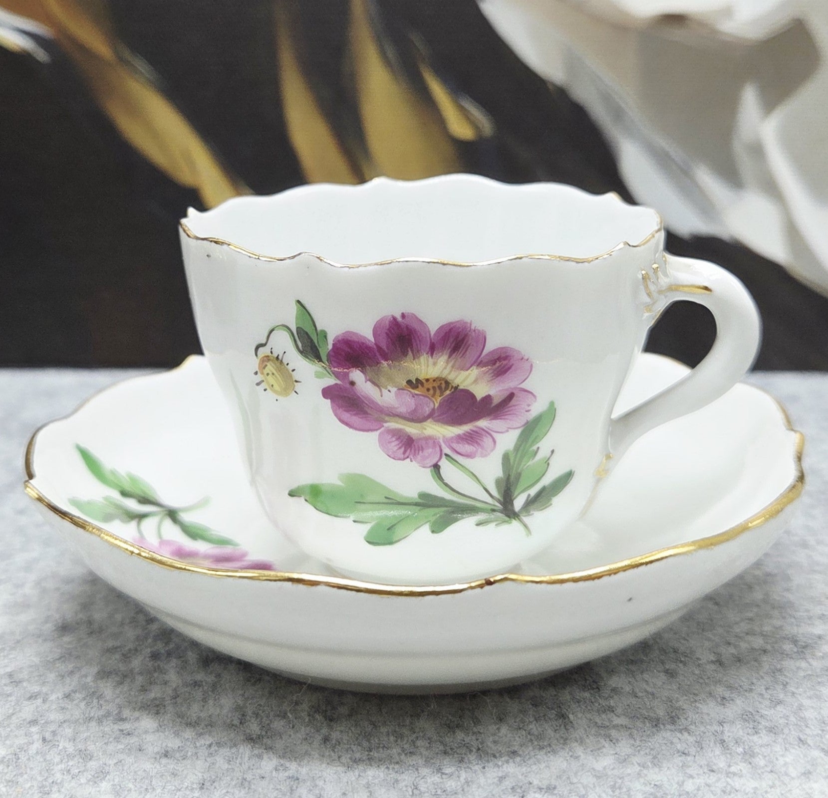 Kolekcinis „Meissen“ porceliano kavos puodelis su lėkštute (espresso, mokka) (80ml.)