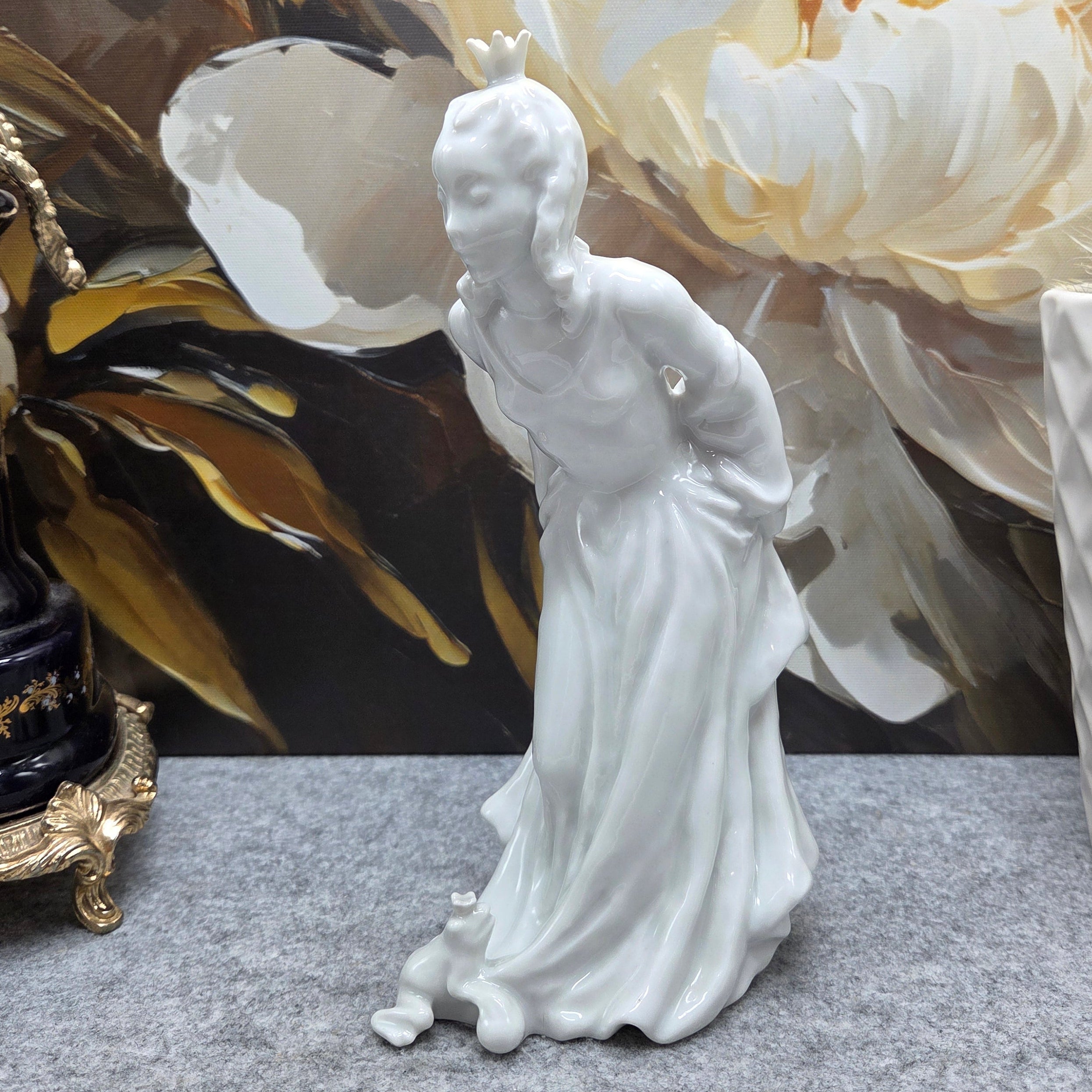 Elegantiška „Rosenthal Classic Rose Collection“ porceliano statulėlė, įkūnijanti žavią pasakos akimirką – princesę, pasilenkusią prie varliuko, tarsi laukiančią stebuklo. Ši kompozicija alsuoja romantika, švelnumu ir simboline prasme – tai istorija apie viltį, transformaciją ir tikėjimą stebuklais.