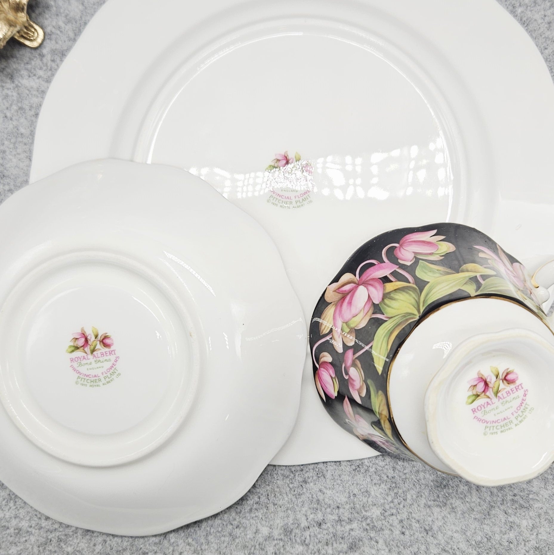 Šis elegantiškas „ROYAL ALBERT“ porceliano puodelis su lėkštutėmis yra iš serijos „Provincijos gėlės“ ir yra skirtas itin žaviam, dekoratyviniam augalui – Pitcher plant, tai mažus ąsotėlius primenantis augalas.
