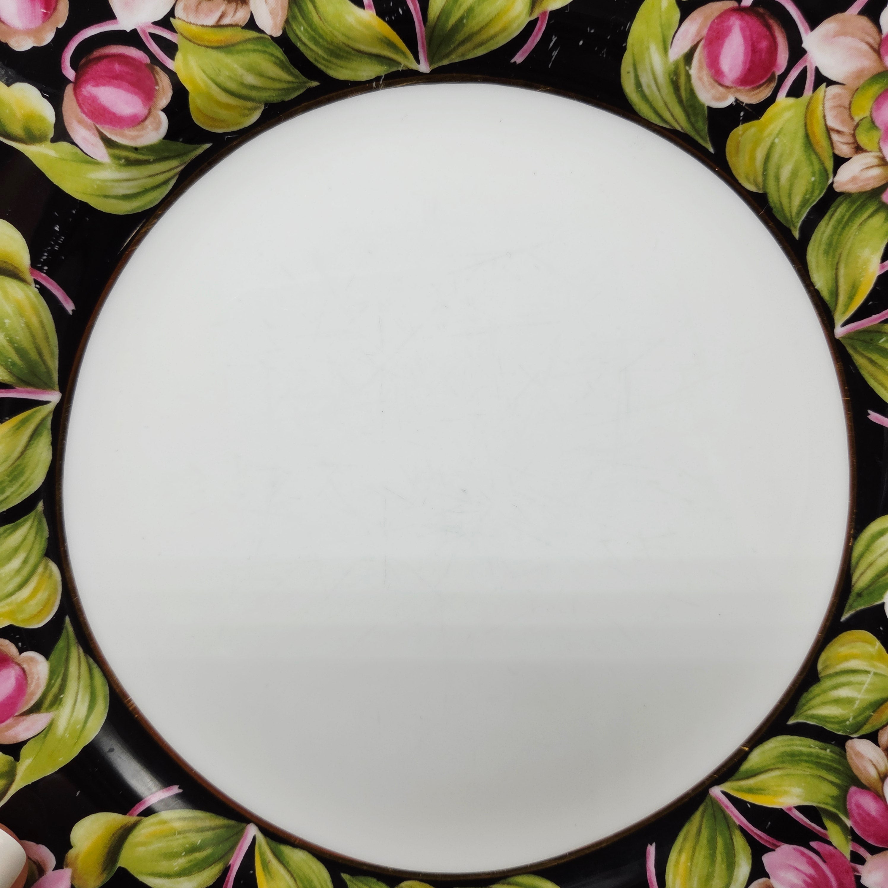 Kadangi tai yra antikvaras (daugiau nei 50+ m amžiaus), turi naturalių naudojimo žymių,  nežymiai pablukęs dekoras. Pabraižyta desertinė lėkštutė (vadovautis nuotraukomis).