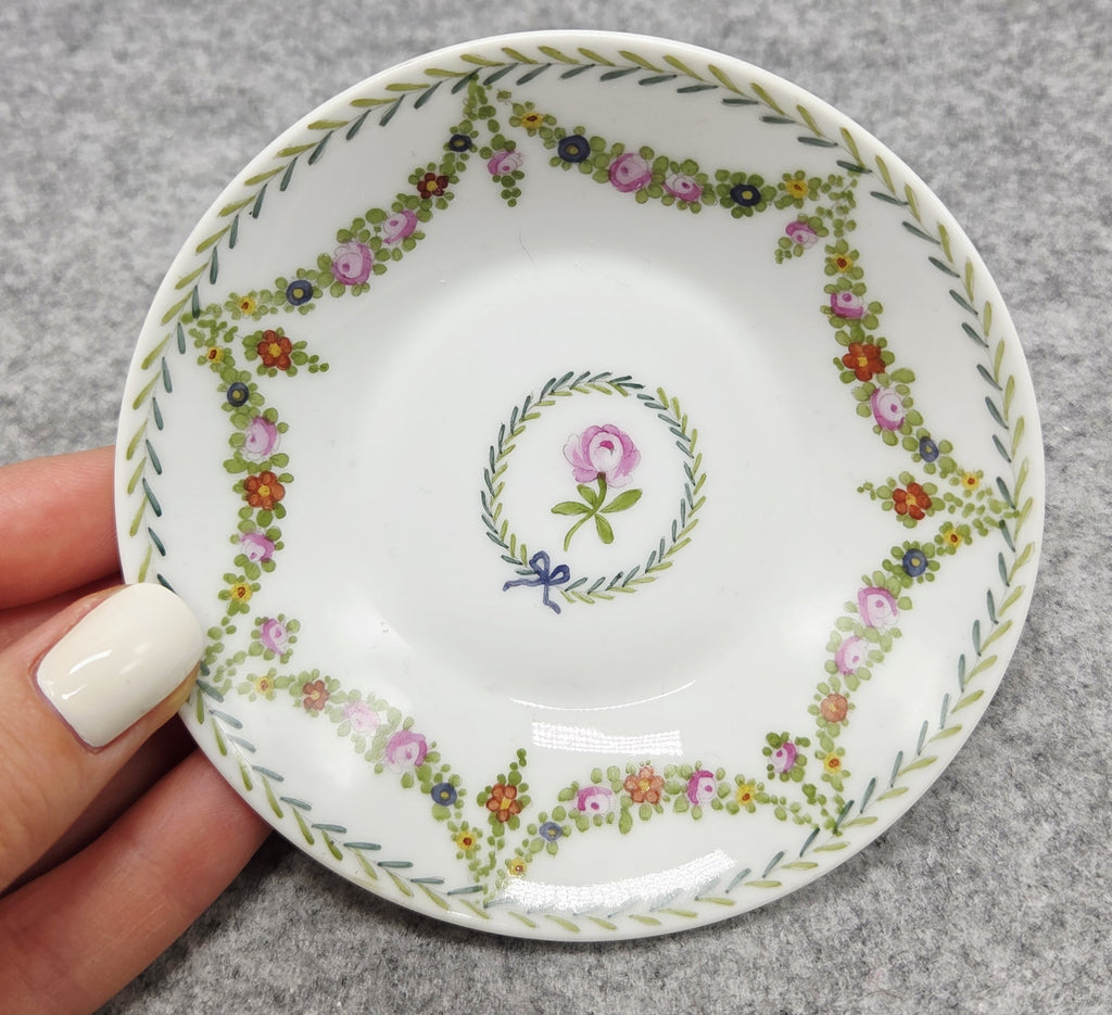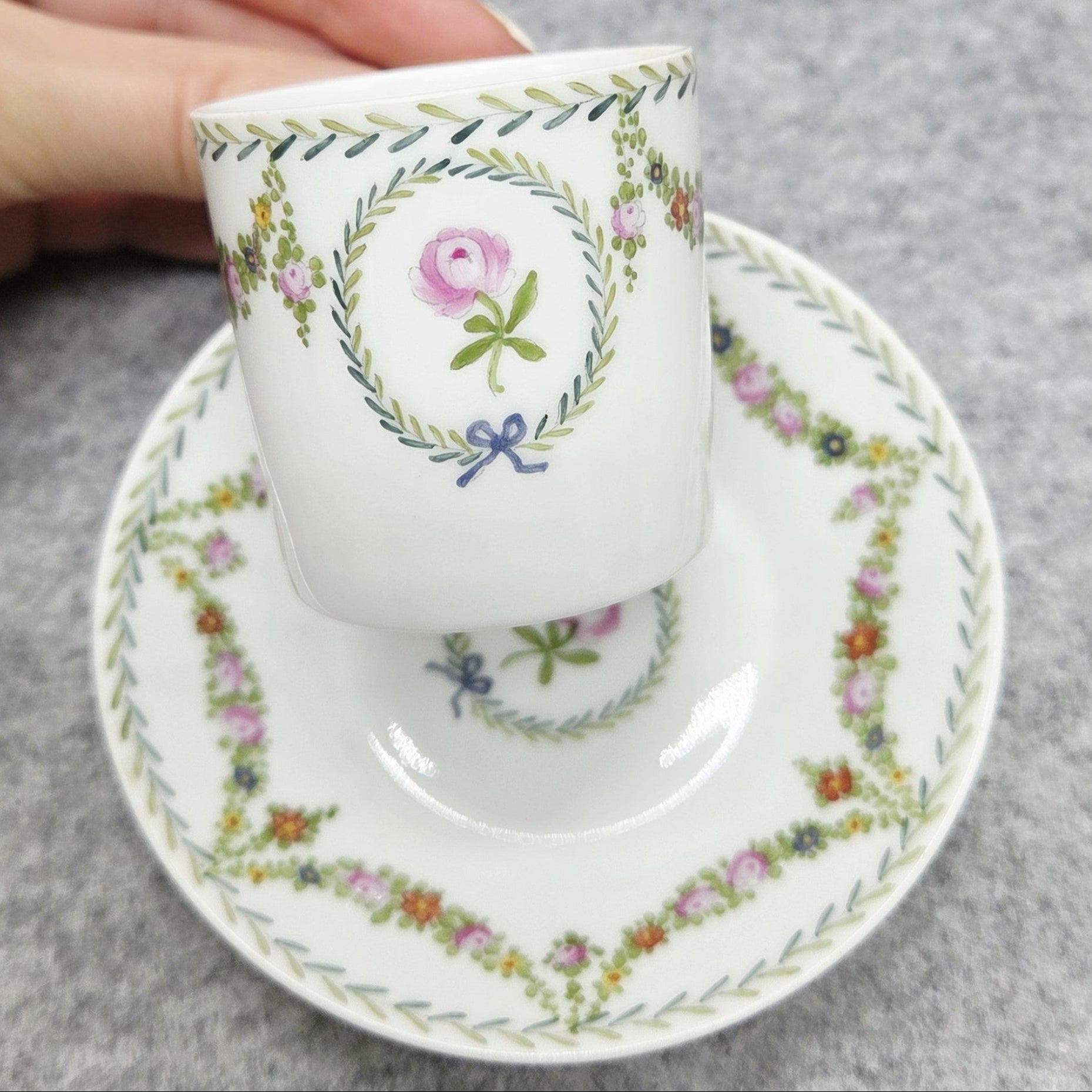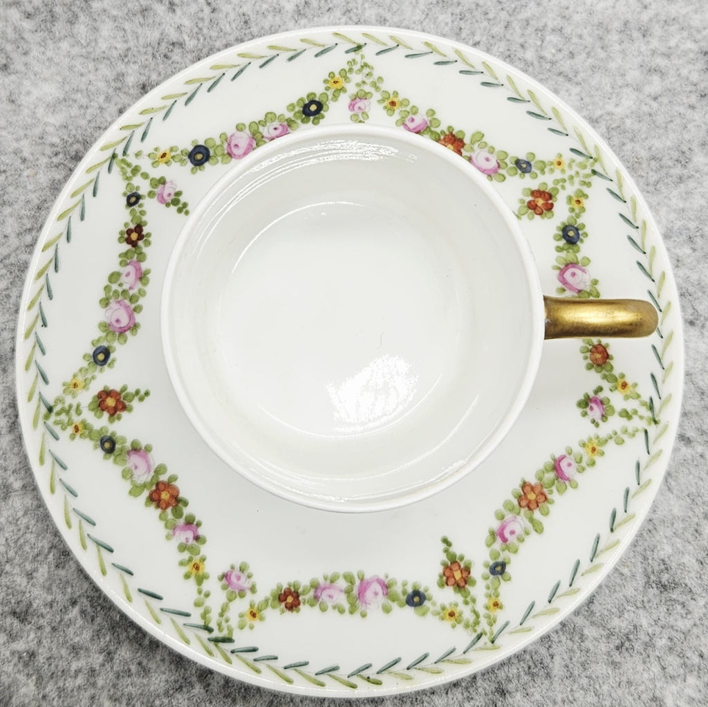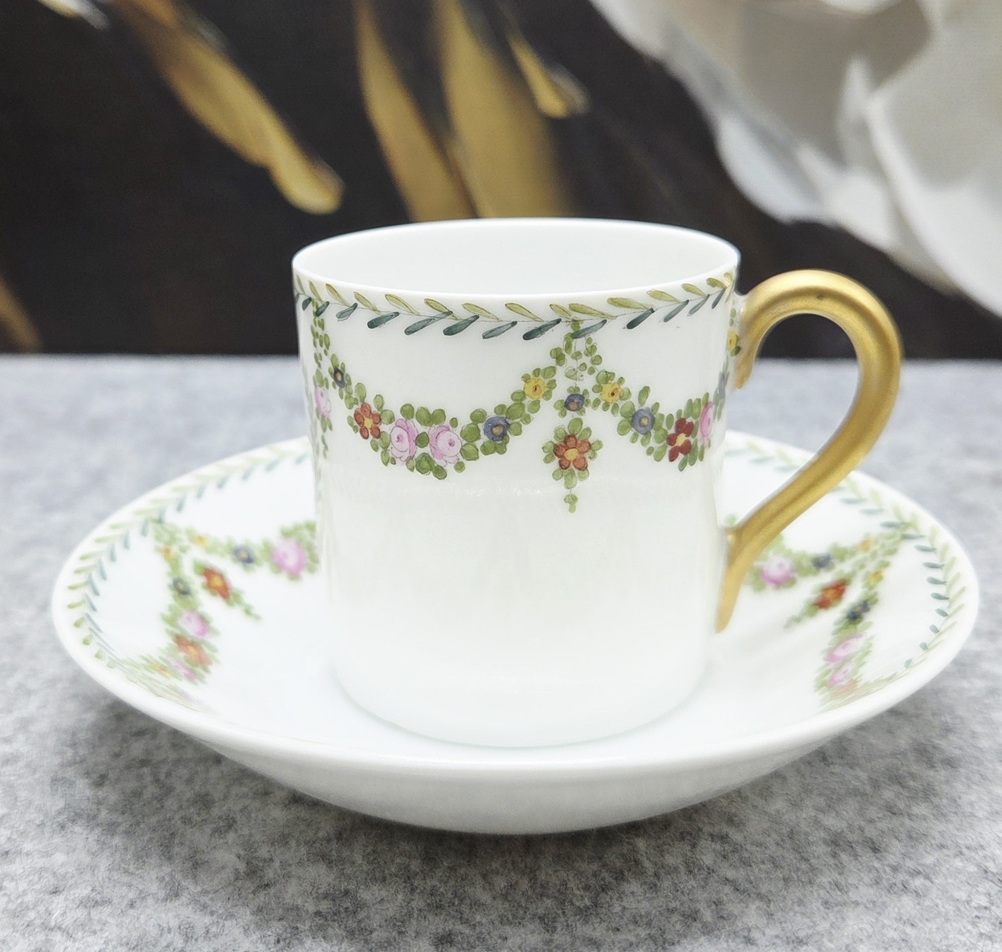 Nuostabus, „Nymphenburg“ plono porceliano kavos puodelis su lėkštute. Tapytas rankomis, kruopščiai išryškinta kiekvienos gėlės ar lapelio detalė, o išskirtinumo ir prabangos dirbiniui suteikia auksuota rankenėlė. Tai tikras meistriško rankų darbo ir itin gilių porceliano tradicijų pavyzdys.