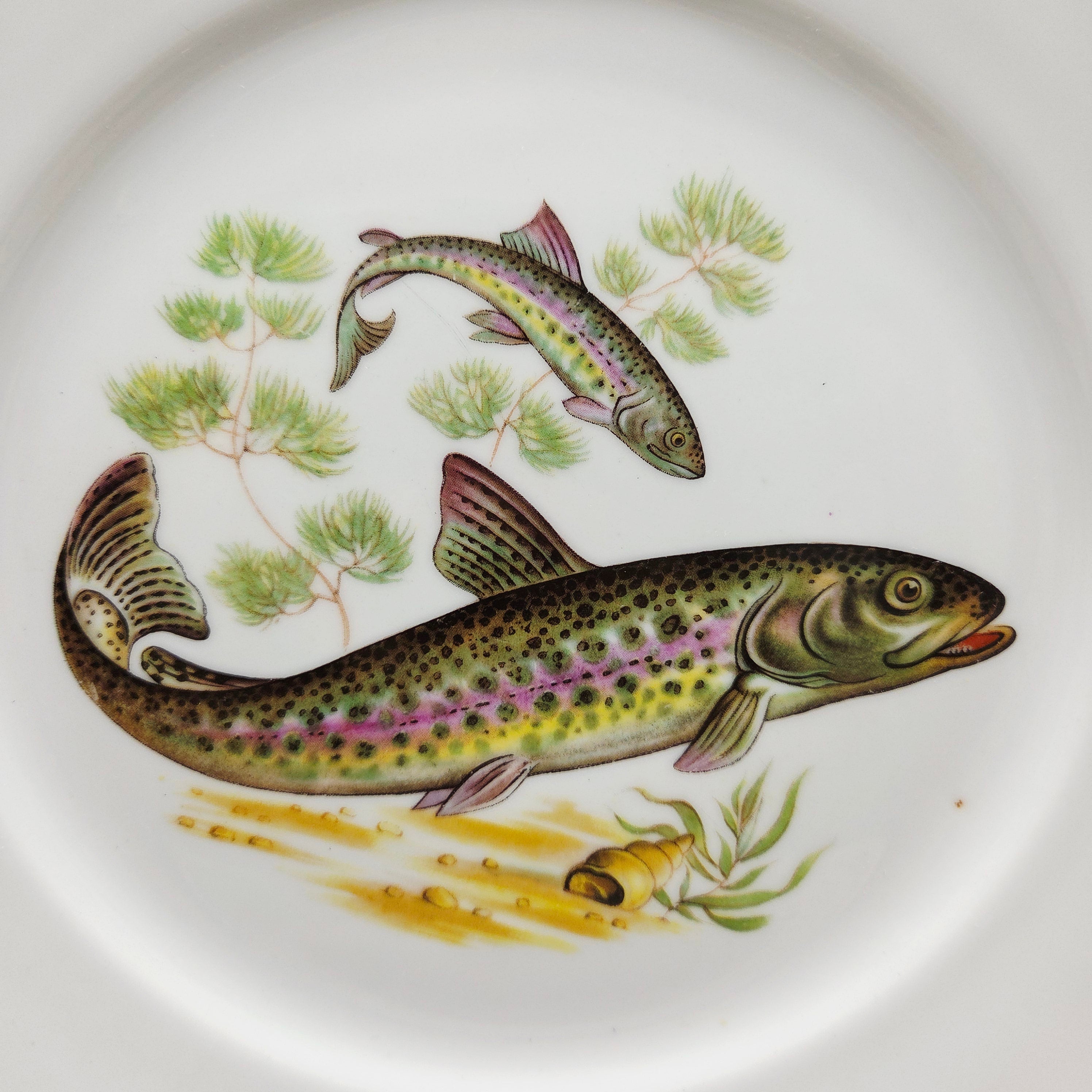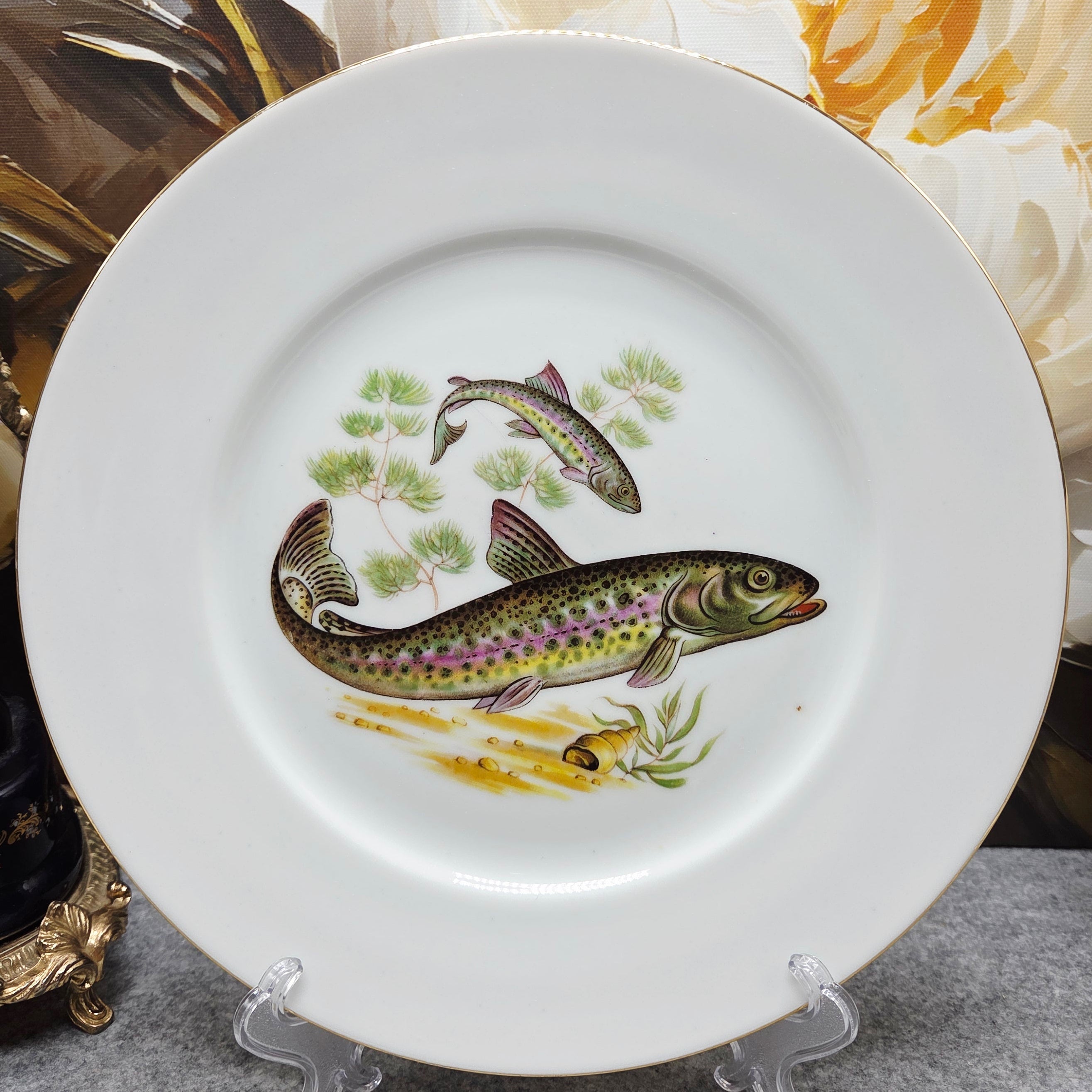 Nuostabi „Winterling“ porceliano lėkštė – subtilaus vokiško porceliano meistriškumo pavyzdys. Lėkštę puošia natūralistiškas upėtakio motyvas su vandens augalais, sukuriantis ramios gamtos ir povandeninio pasaulio sceną. Gyvos spalvos, kruopščiai perteiktos žuvies detalės ir subtili auksu dekoruota briauna suteikia lėkštei elegancijos bei klasikinio žavesio.