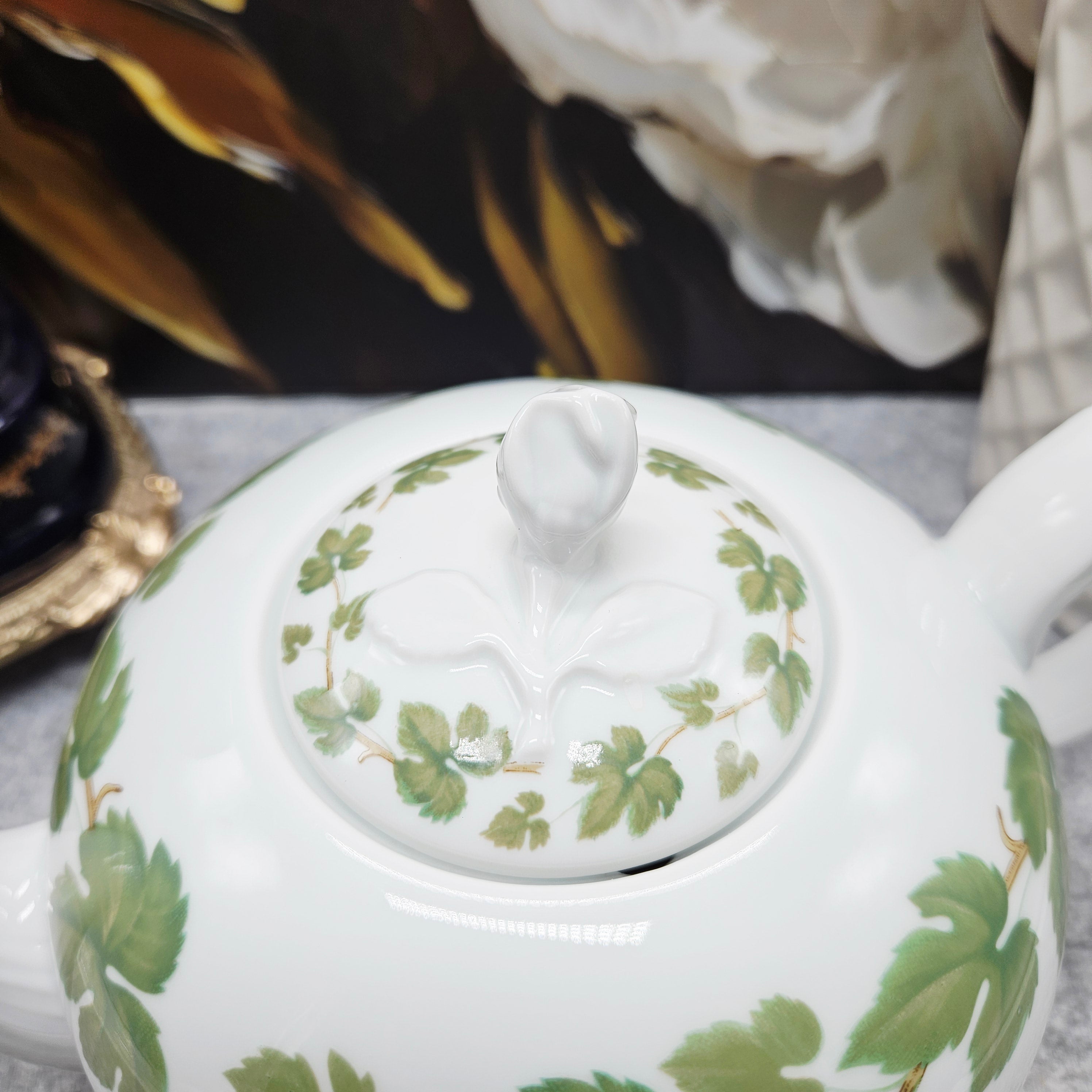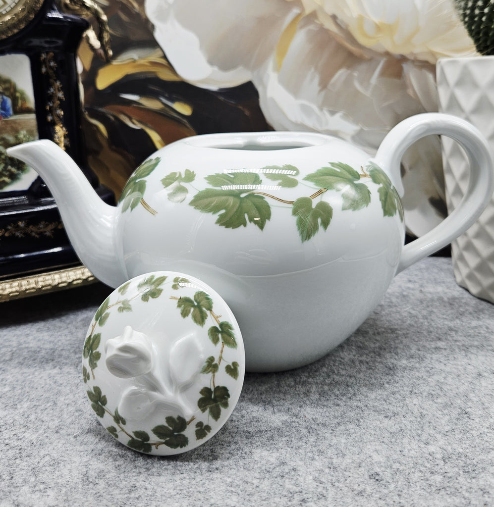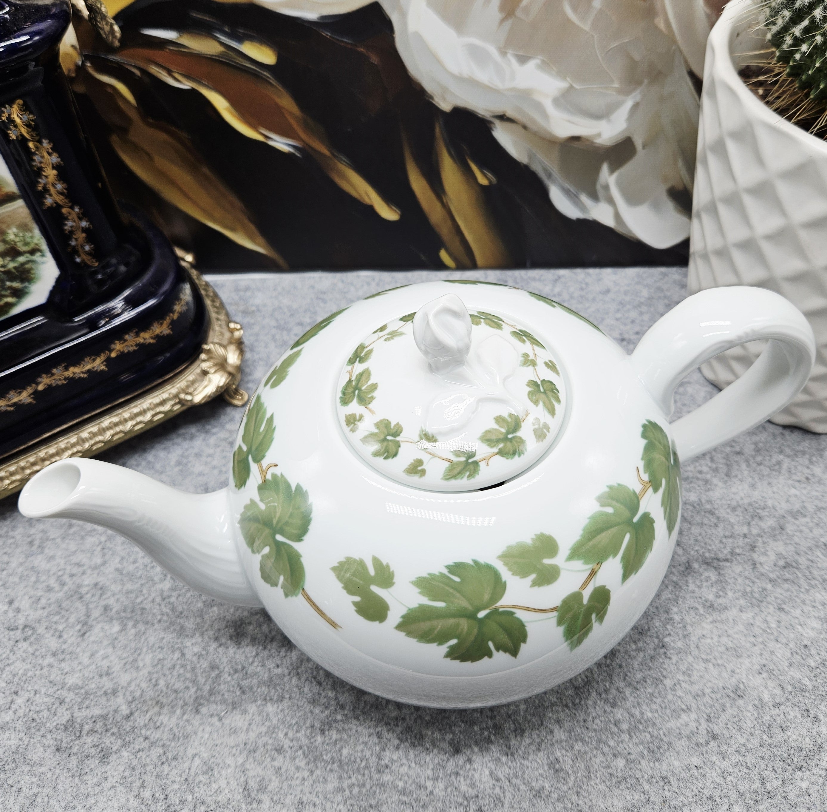 Tai elegantiškas porcelianinis arbatinukas, pagamintas garsios Vokietijos manufaktūros Hutschenreuther. Apvali forma suteikia jam elegancijos ir minkštumo, o patogi, plačiai lenkta rankenėlė užtikrina malonų naudojimą. Dangtelį vainikuoja dekoratyvus rankenėlės akcentas, derantis su viso arbatinuko estetika. Puikus pasirinkimas jaukiems arbatos ritualams ar kolekcijai papildyti.