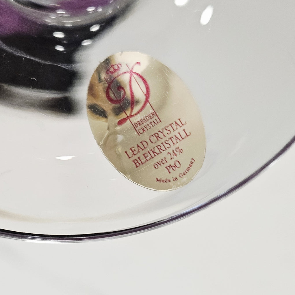 Aukšta, rankomis raižyta "Dresden Crystal" krištolinė taurė vynui.