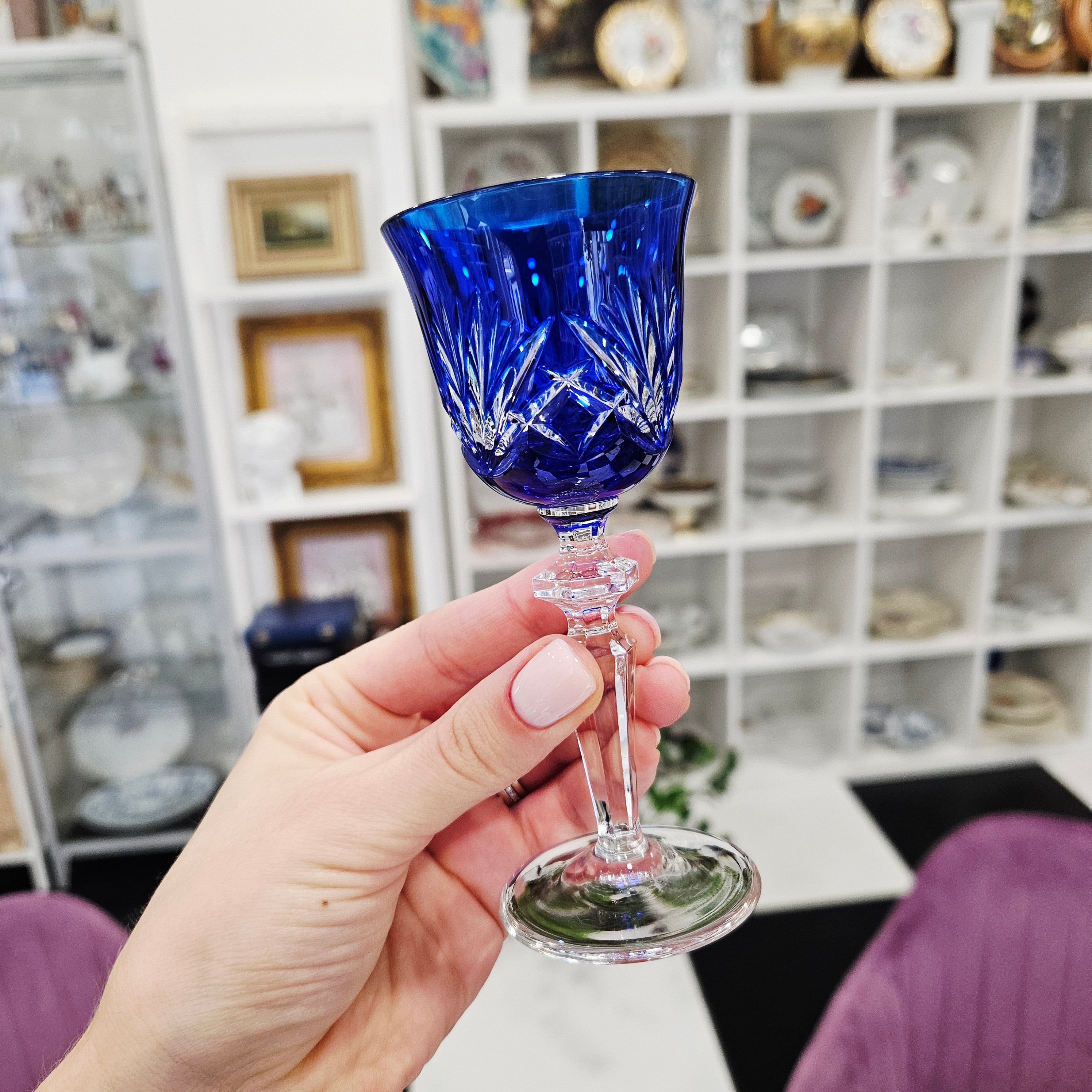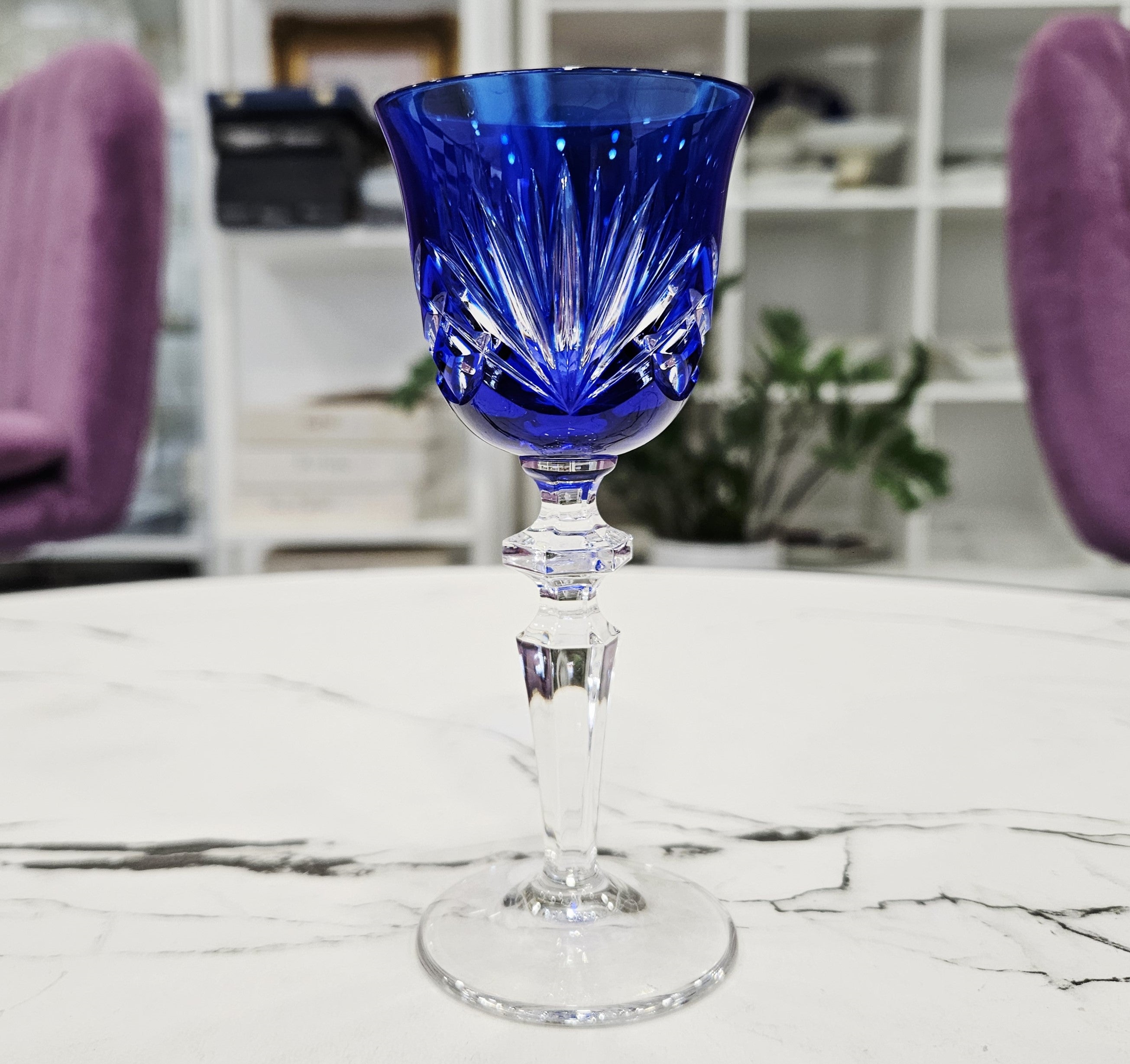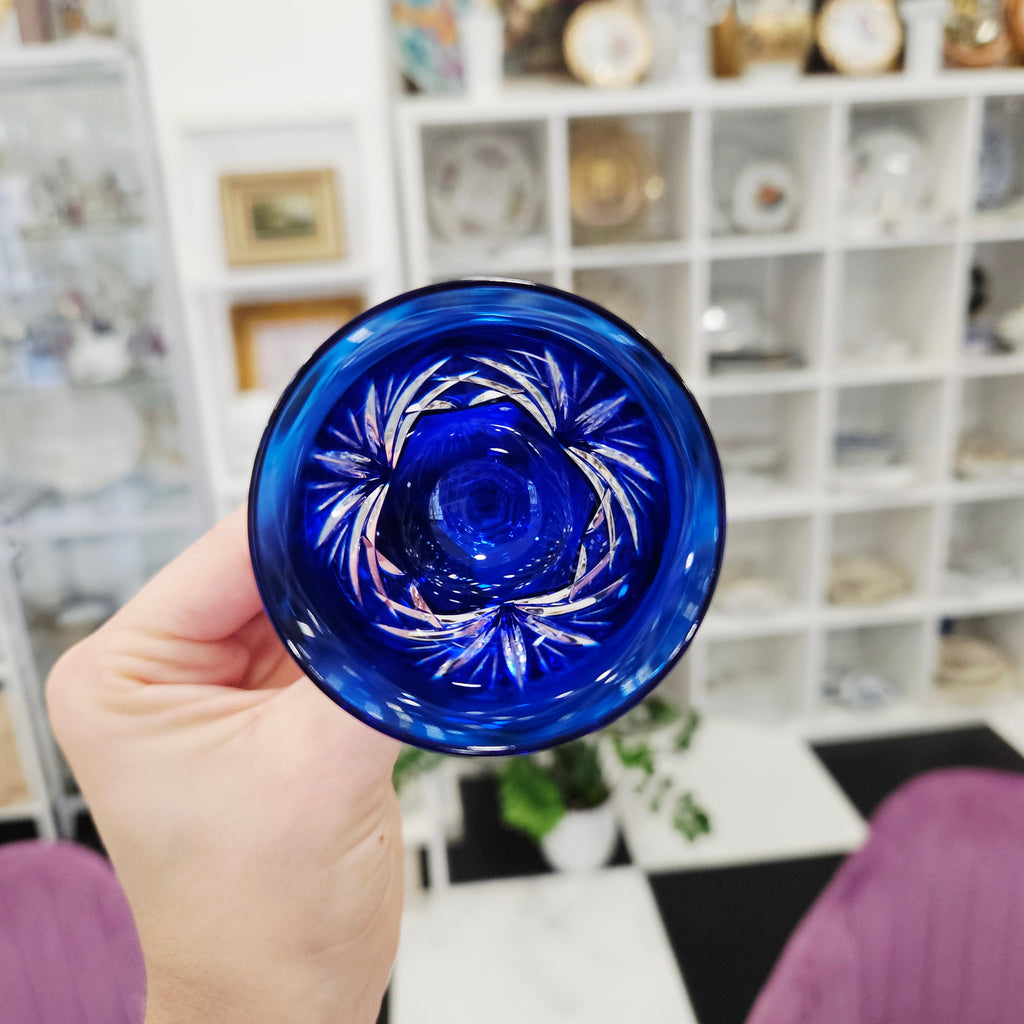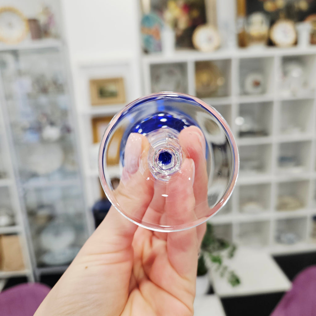 1vnt. Tulpės formos, mėlynos spalvos, aukščiausios kokybės "Gorham Cherrywood" krištolinė taurelė (50ml.)