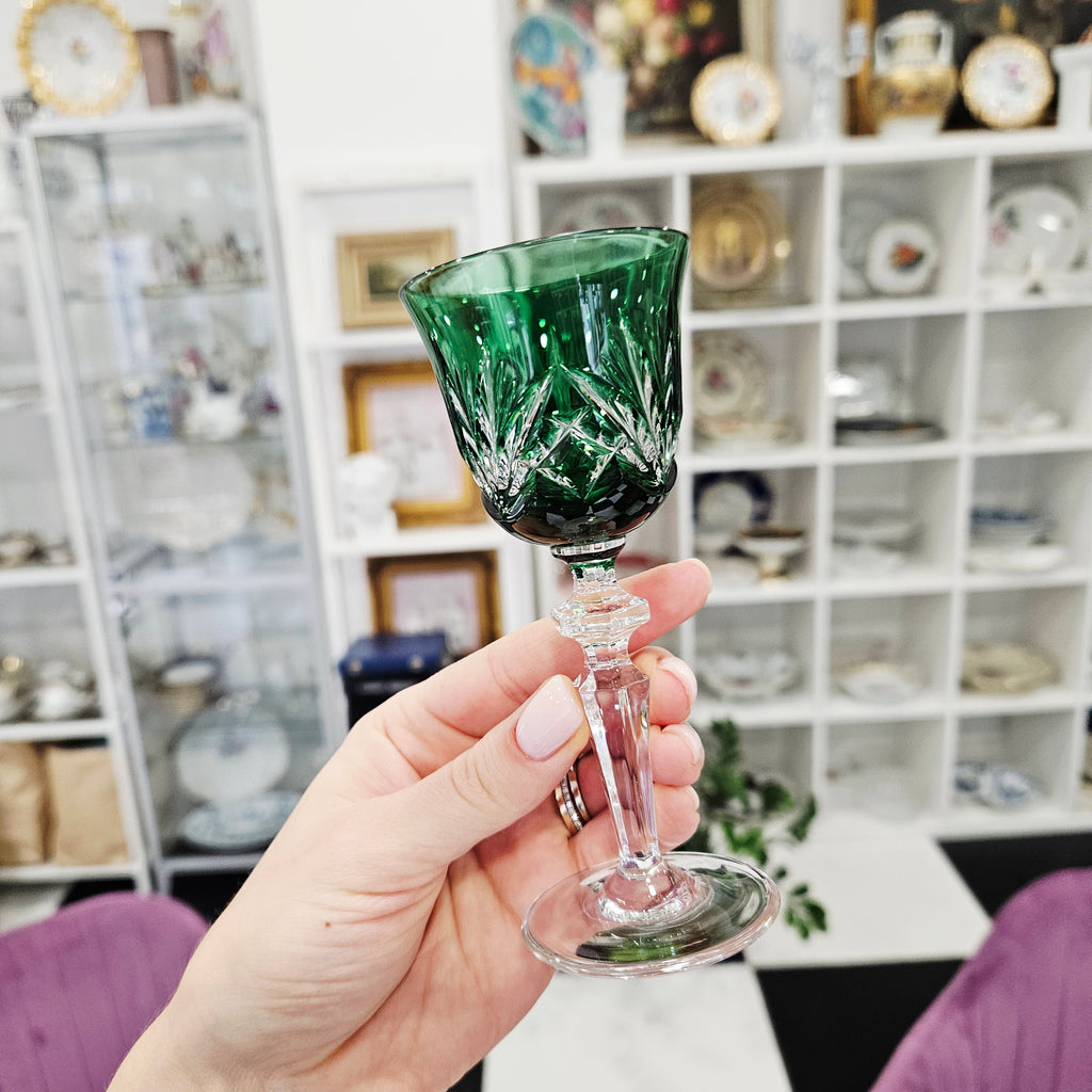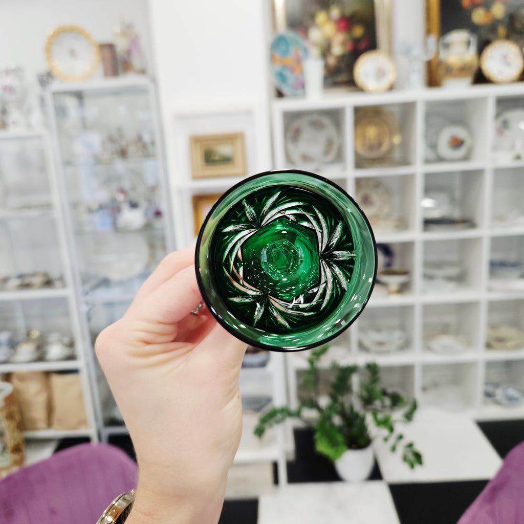 1vnt. Tulpės formos, smaragdo spalvos, aukščiausios kokybės "Gorham Cherrywood" krištolinė taurelė (50ml.)