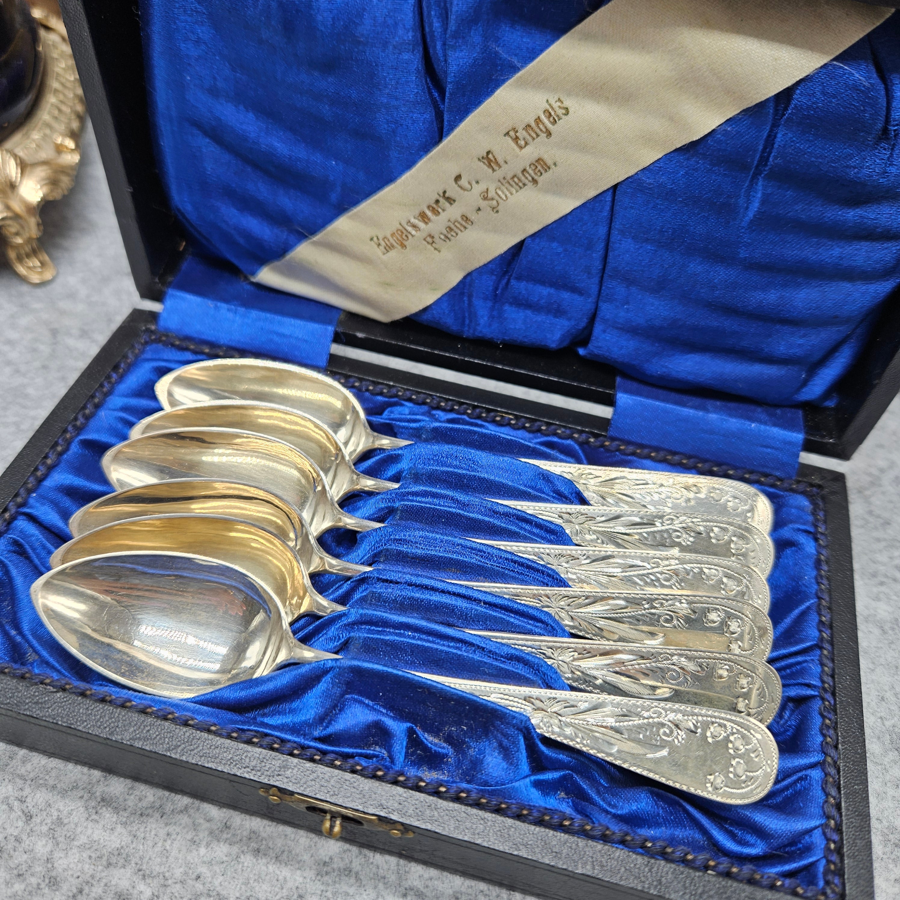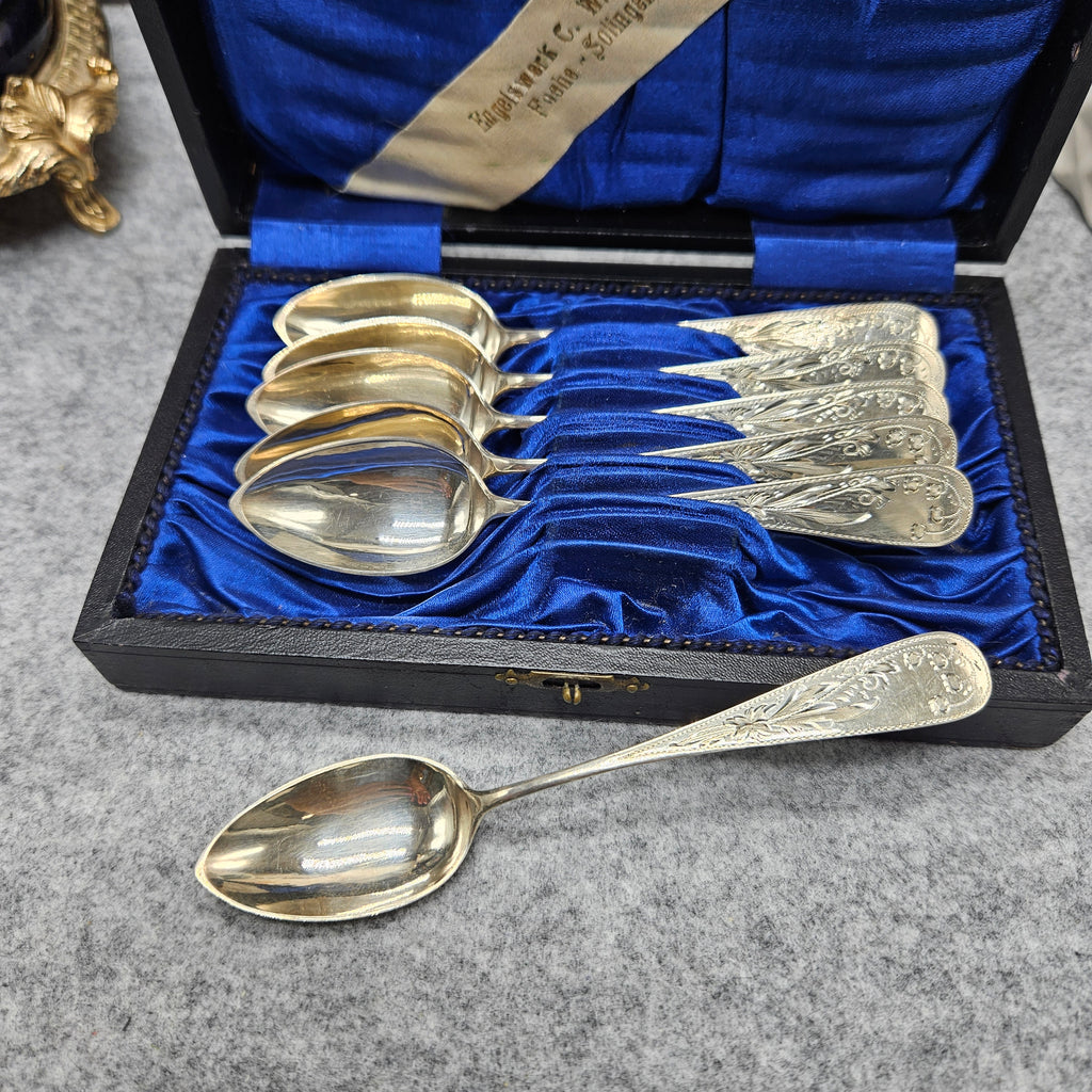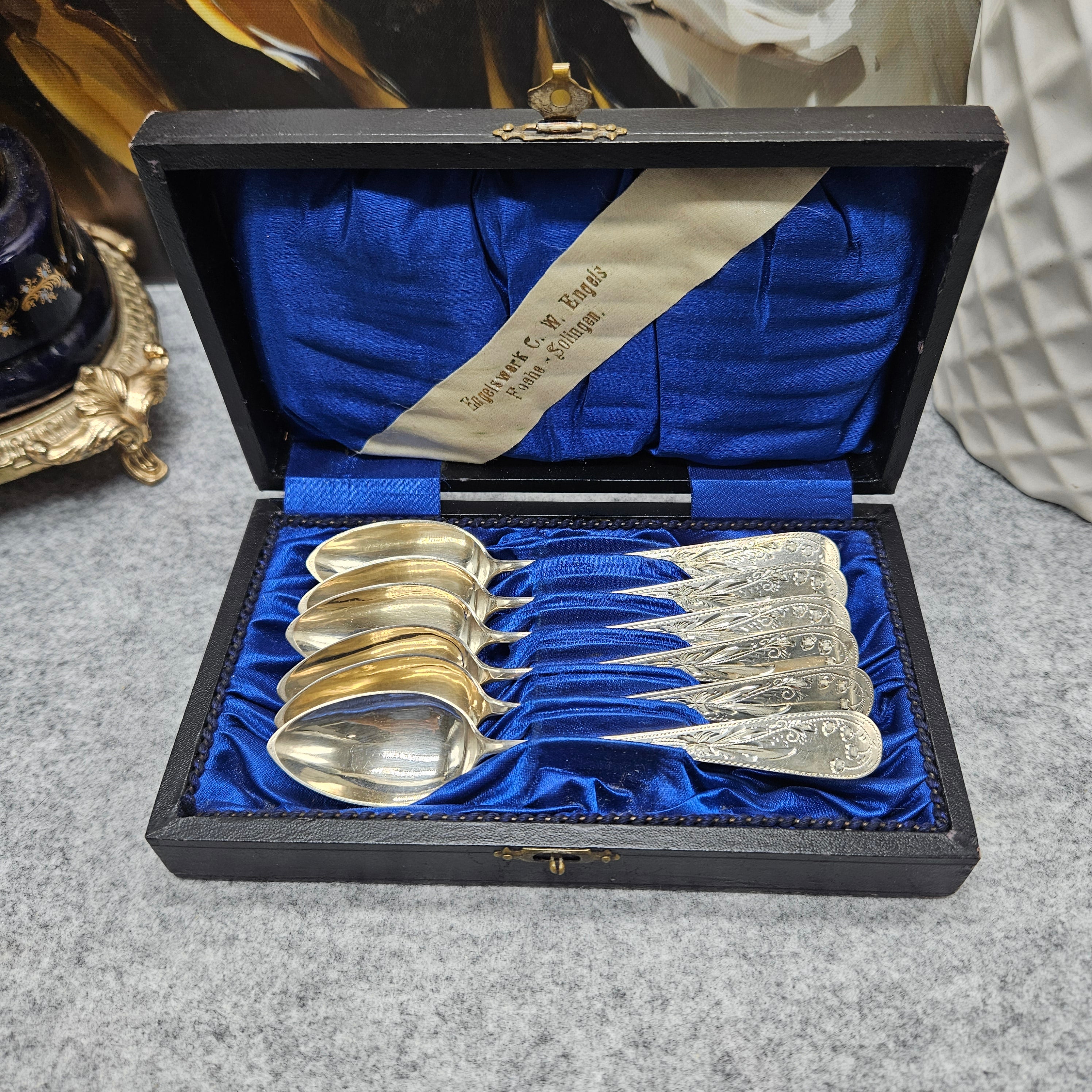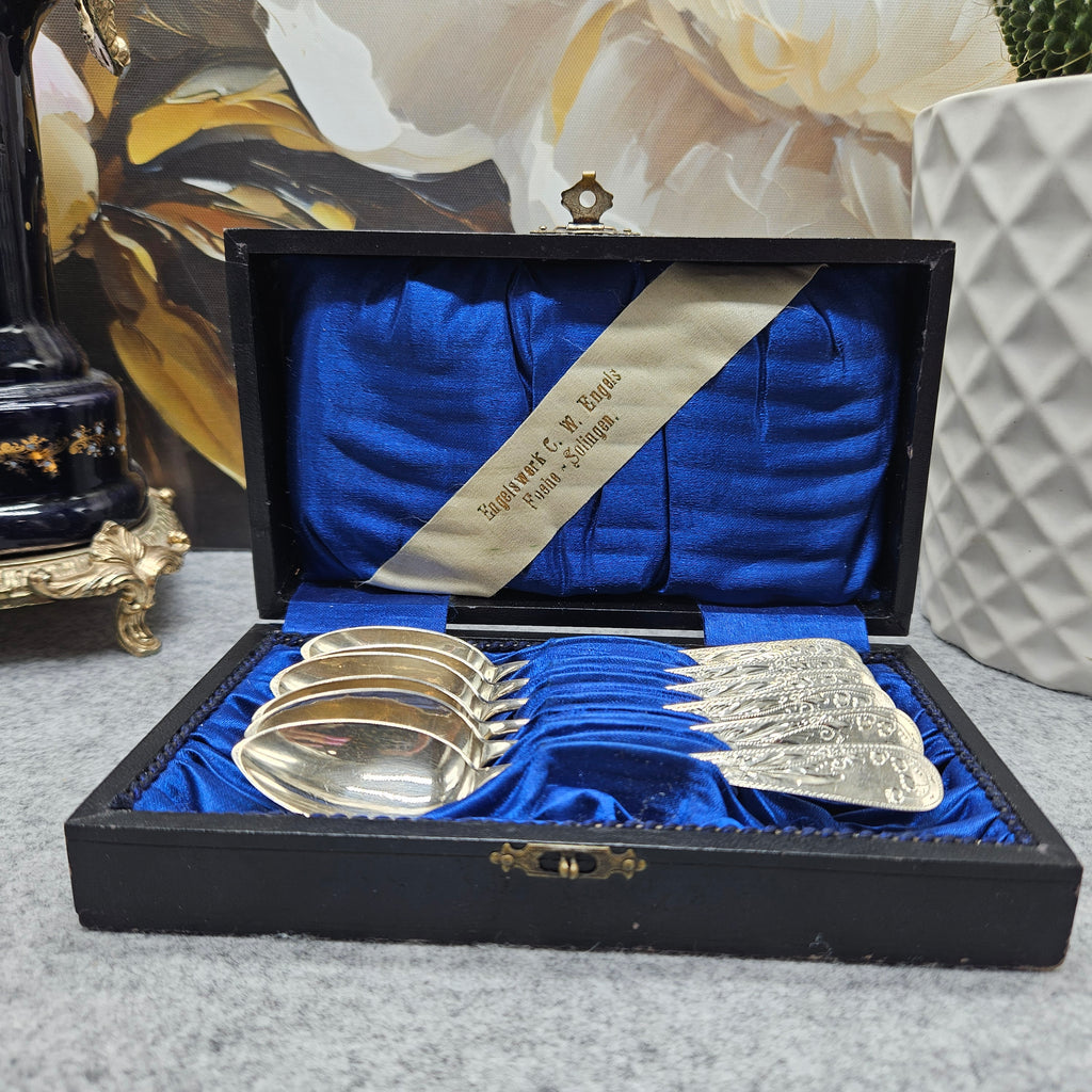 Išskirtinis, antikvarinis 6 sidabrinių šaukštelių rinkinys originalioje prabangioje dėžutėje.