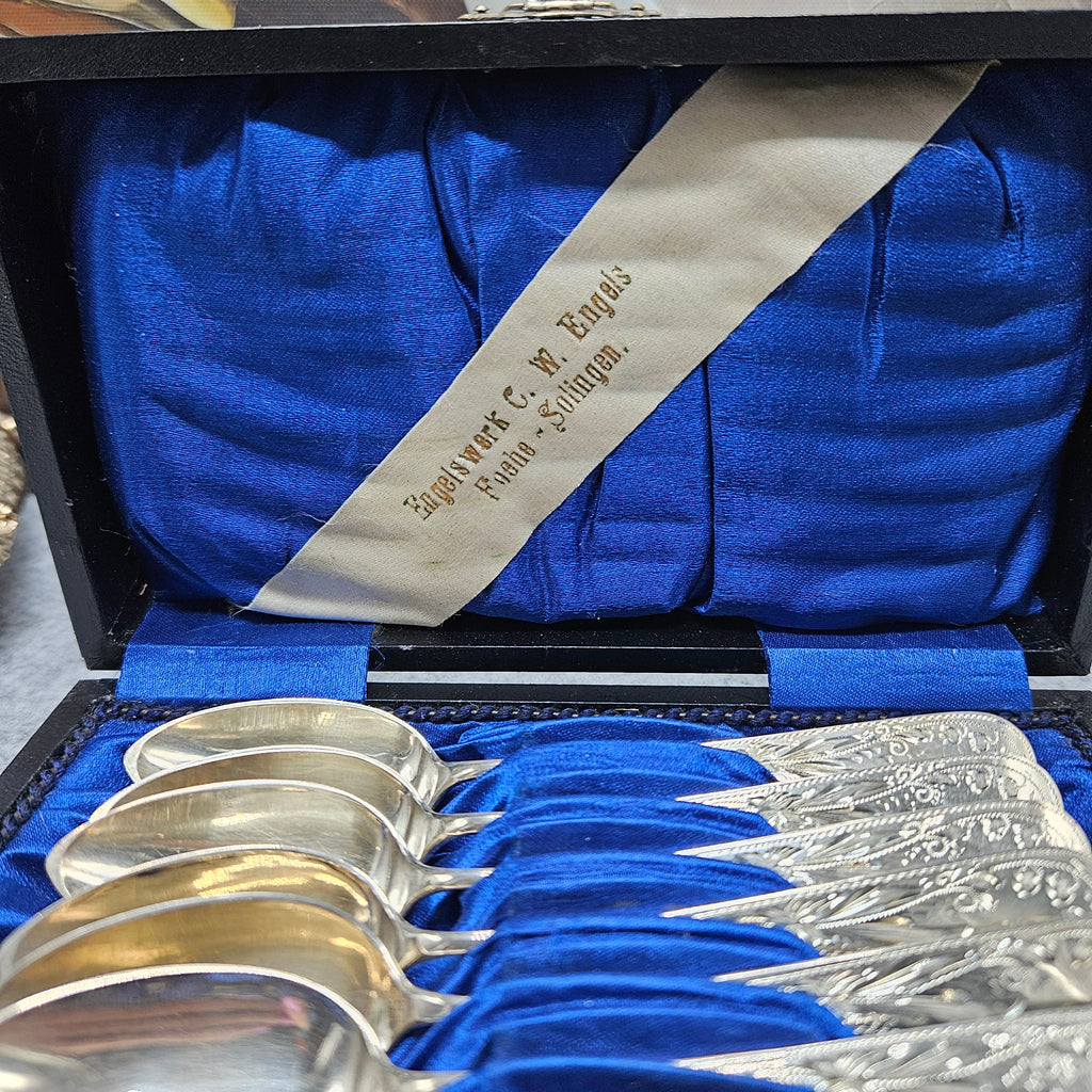 „C. W. Engels / M. Lohmann“ rinkiniai – tai klasikinis Vokietijos sidabro meistrystės pavyzdys iš Solingeno, garsėjantis kruopščiu graviravimu, 800 prabos grynumu ir elegantišku Art Nouveau stiliaus dizainu.