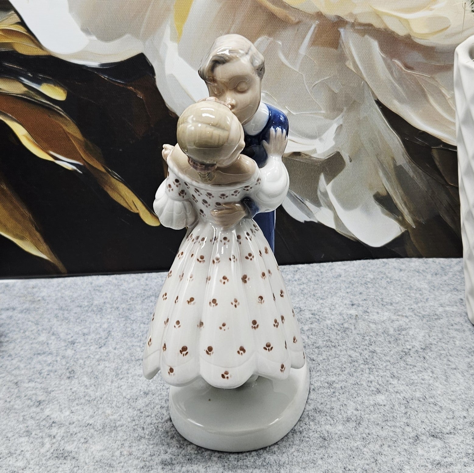 Nuostabi daniška porceliano figūrėlė, sukurta garsiosios „Bing & Grøndahl“ manufaktūros Kopenhagoje. Šis mielas dirbinys žavi švelnia spalvine gama: derinamos mėlynos, rusvo smėlio ir baltos spalvos, kurios suteikia figūrėlei gyvybiškumo ir subtilaus realizmo.