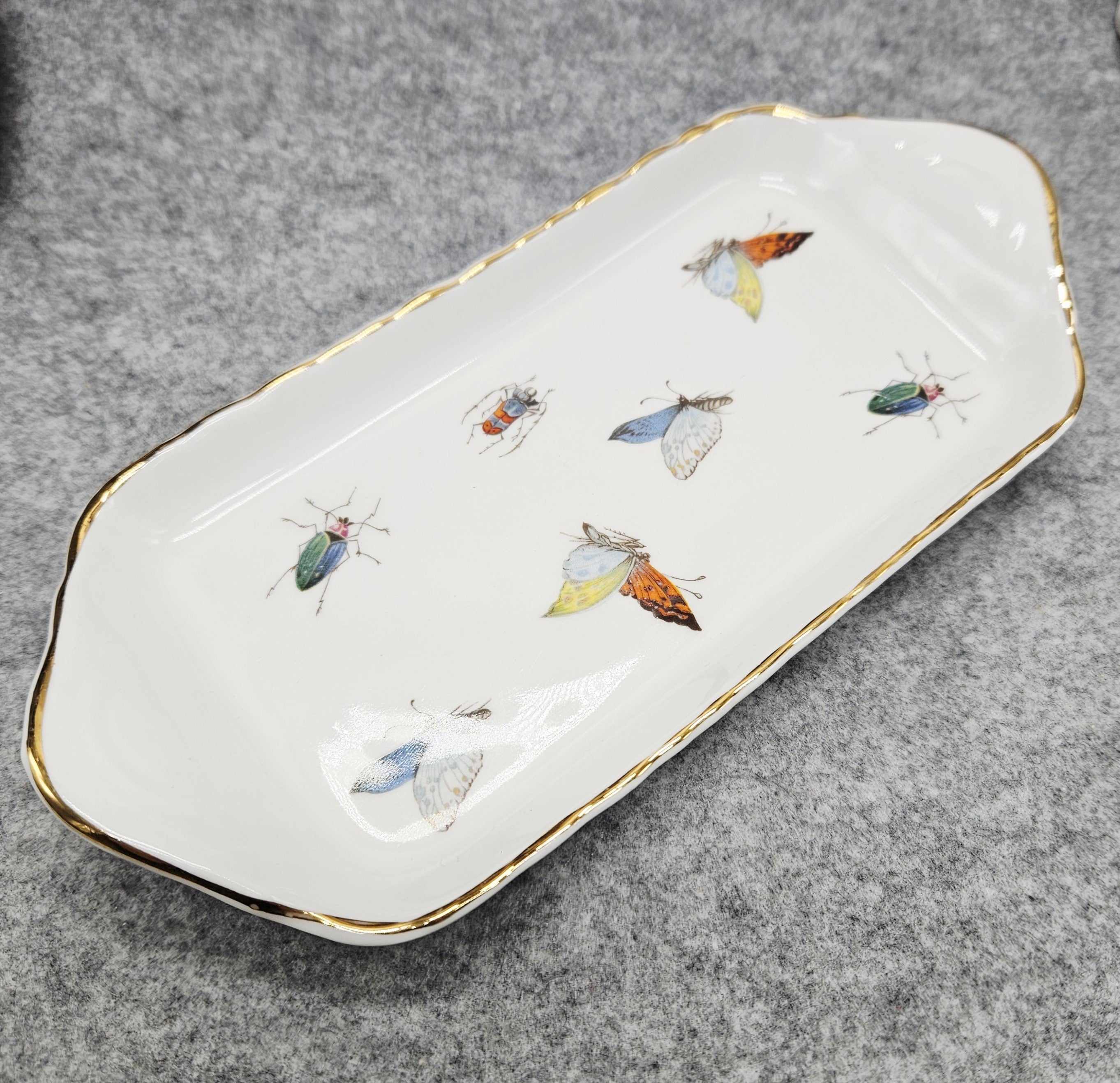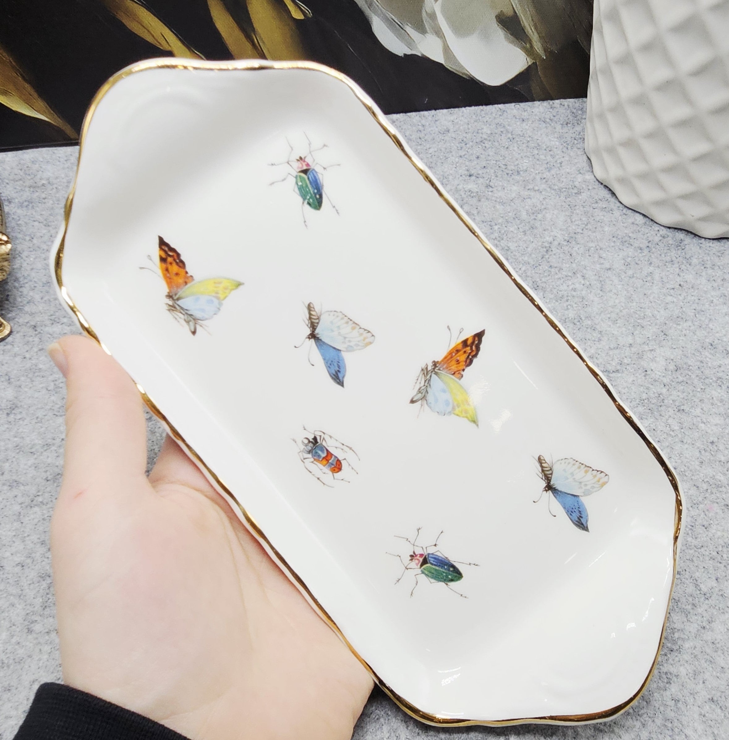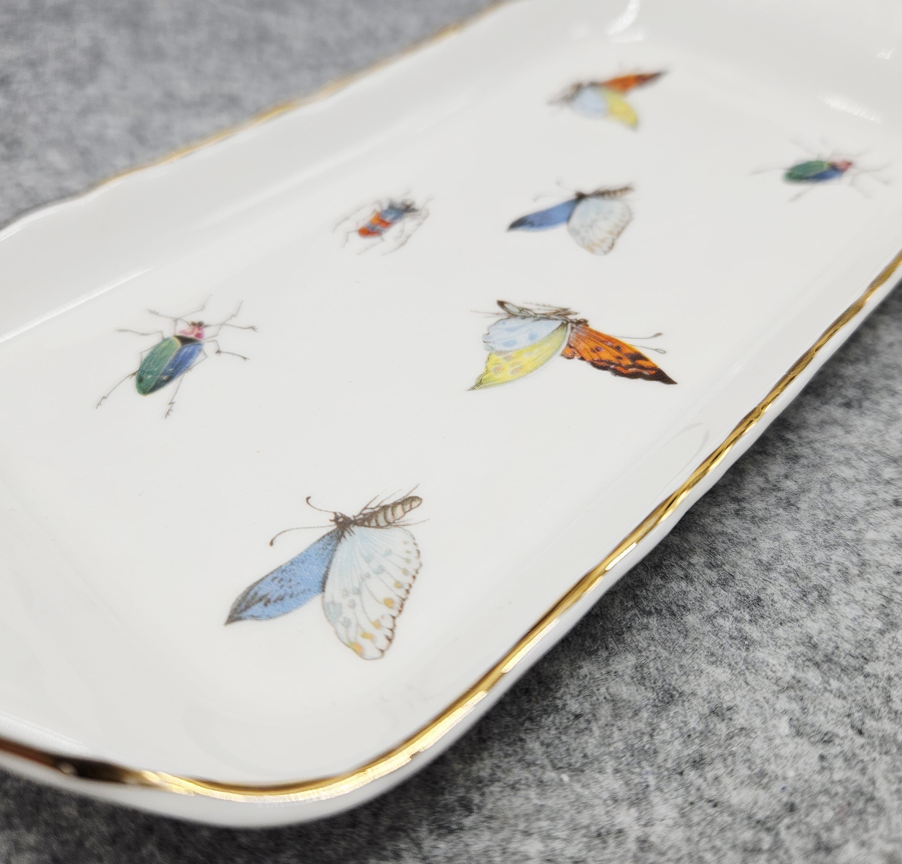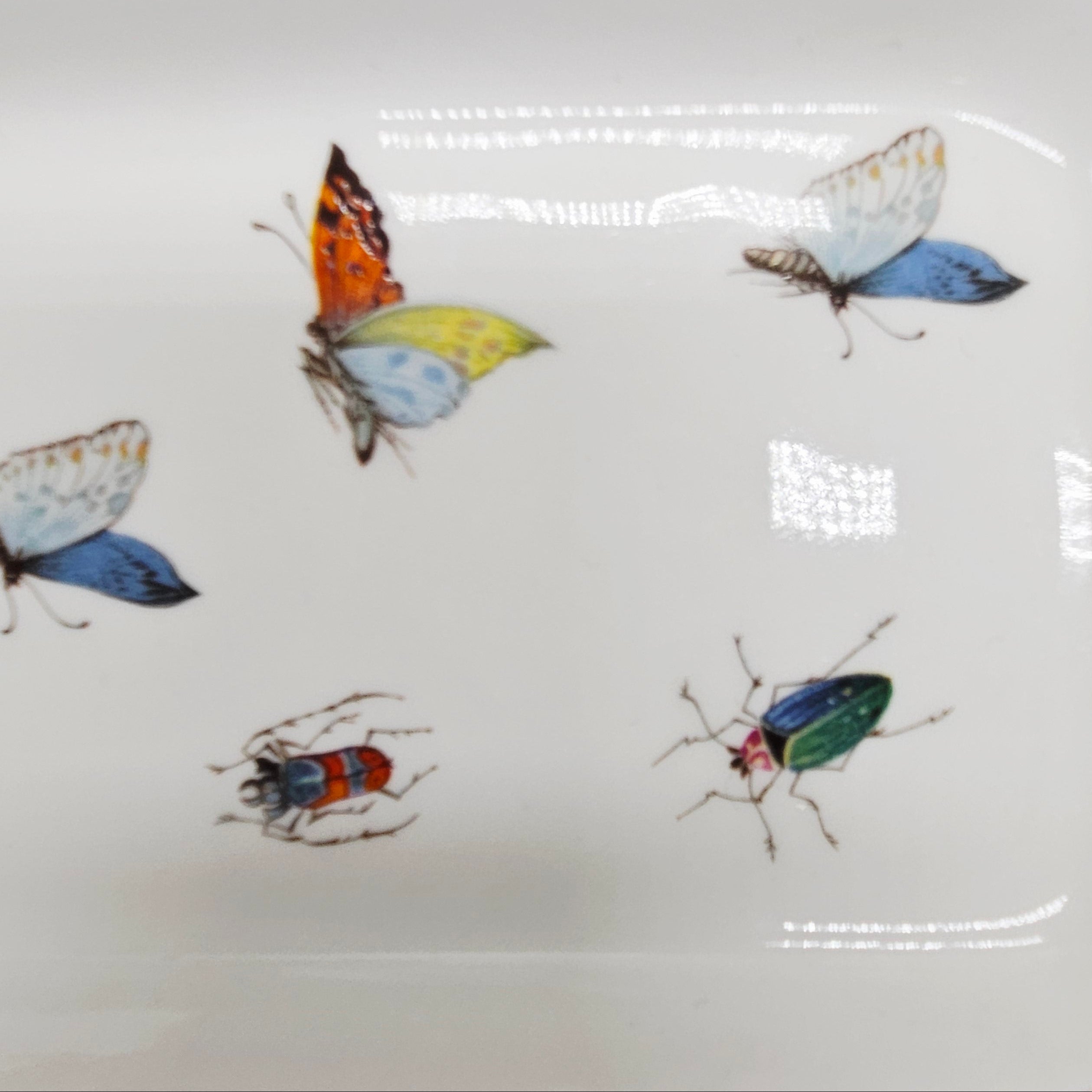 Žaismingas „Chinacraft London“ padėkliukas / serviravimo lėkštelė, dekoruotas drugeliais ir spalvingais vabalais (10x21cm)