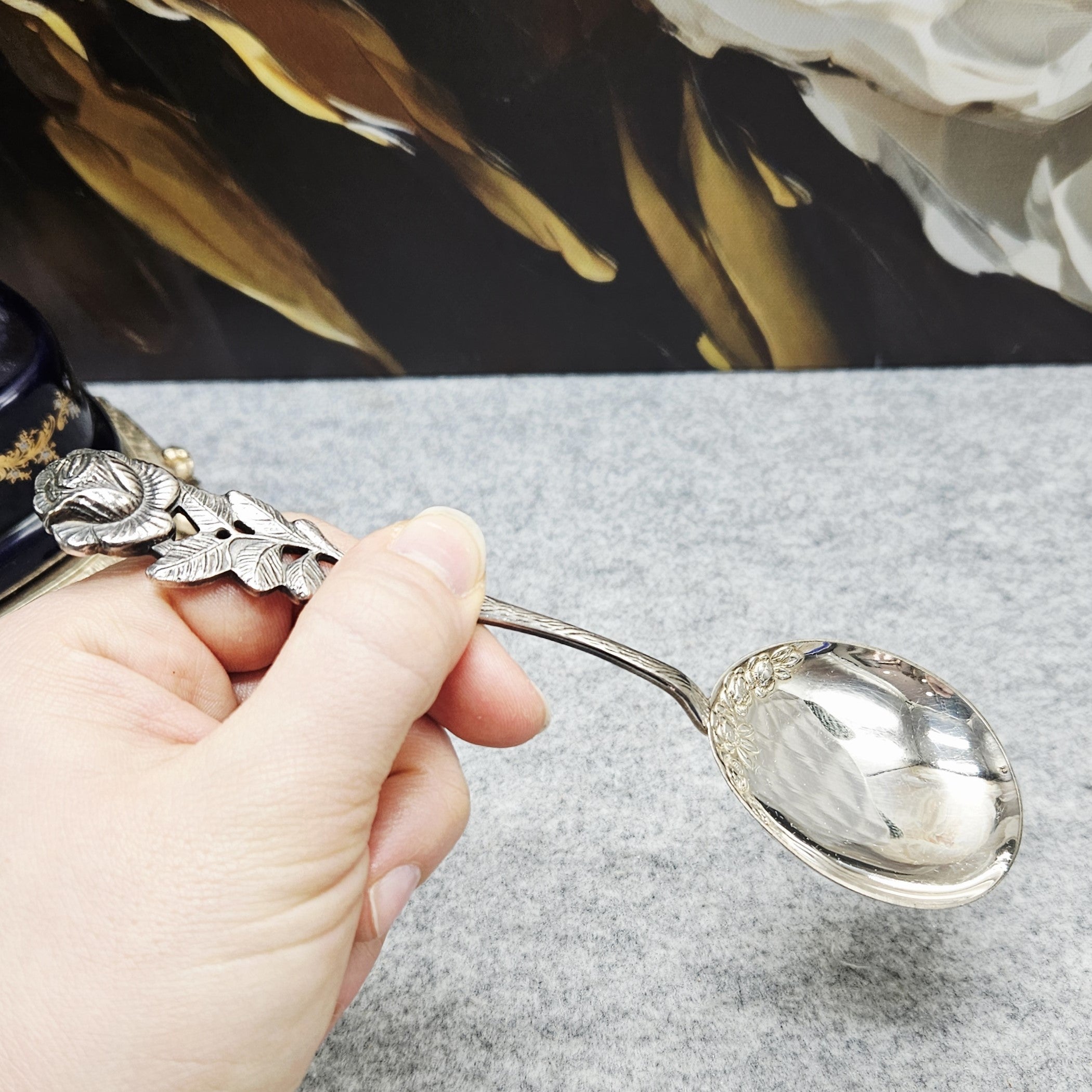 Elegantiškas serviravimo šaukštas su subtiliu rožės motyvu – rafinuotas stalo akcentas, dvelkiantis klasika ir romantika.