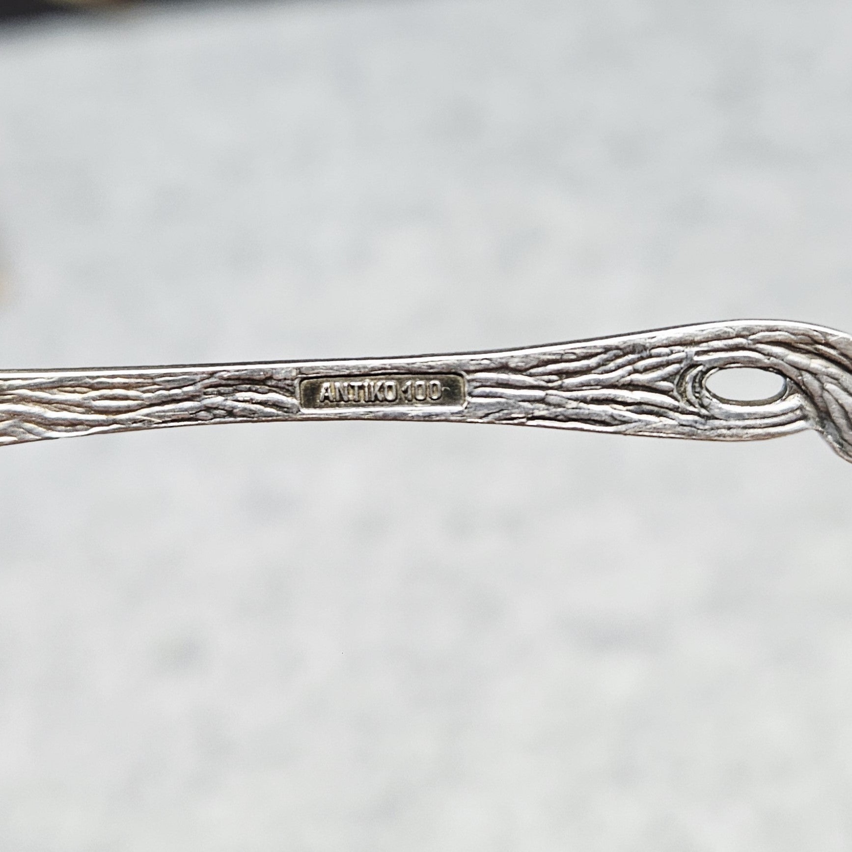 100er Feinsilberauflage žymėjimas reiškia kokybišką sidabro padengimą, suteikiantį mentelėi sodrų blizgesį ir solidumo pojūtį.