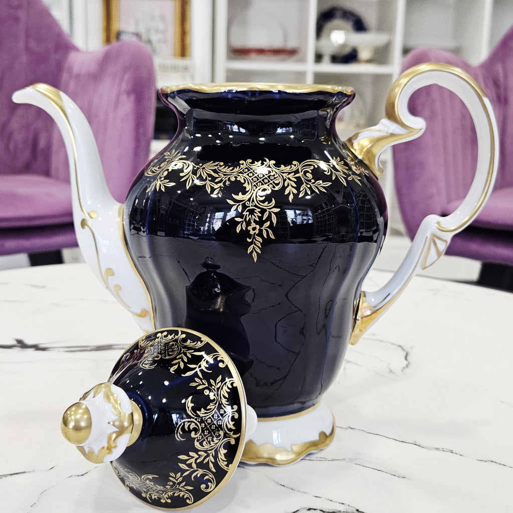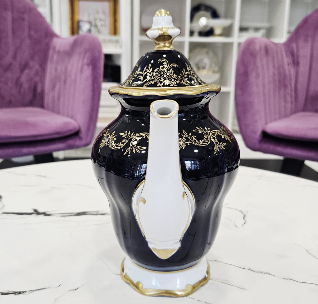 Mėlynos spalvos dekoracijos, pagamintos su tikruoju kobaltu, suteikia kavinukui ypatingą grožį ir rafinuotumą. Kiekviena detalė – nuo subtilių ornamentų iki kruopščiai atlikto dažymo – liudija aukštą gamybos lygį ir klasikinį stilių, kuris niekada neišeina iš mados.