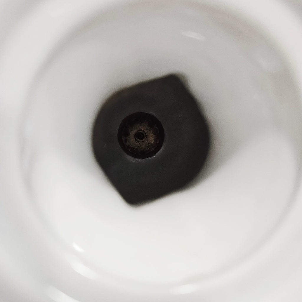 Siauras pjedestalas ir platėjantis korpusas vizualiai atrodo lengvas ir grakštus, tačiau techniškai tai nestabilu. Varžtas suteikdavo galimybę išlaikyti labai dekoratyvią formą, neprarandant funkcionalumo.