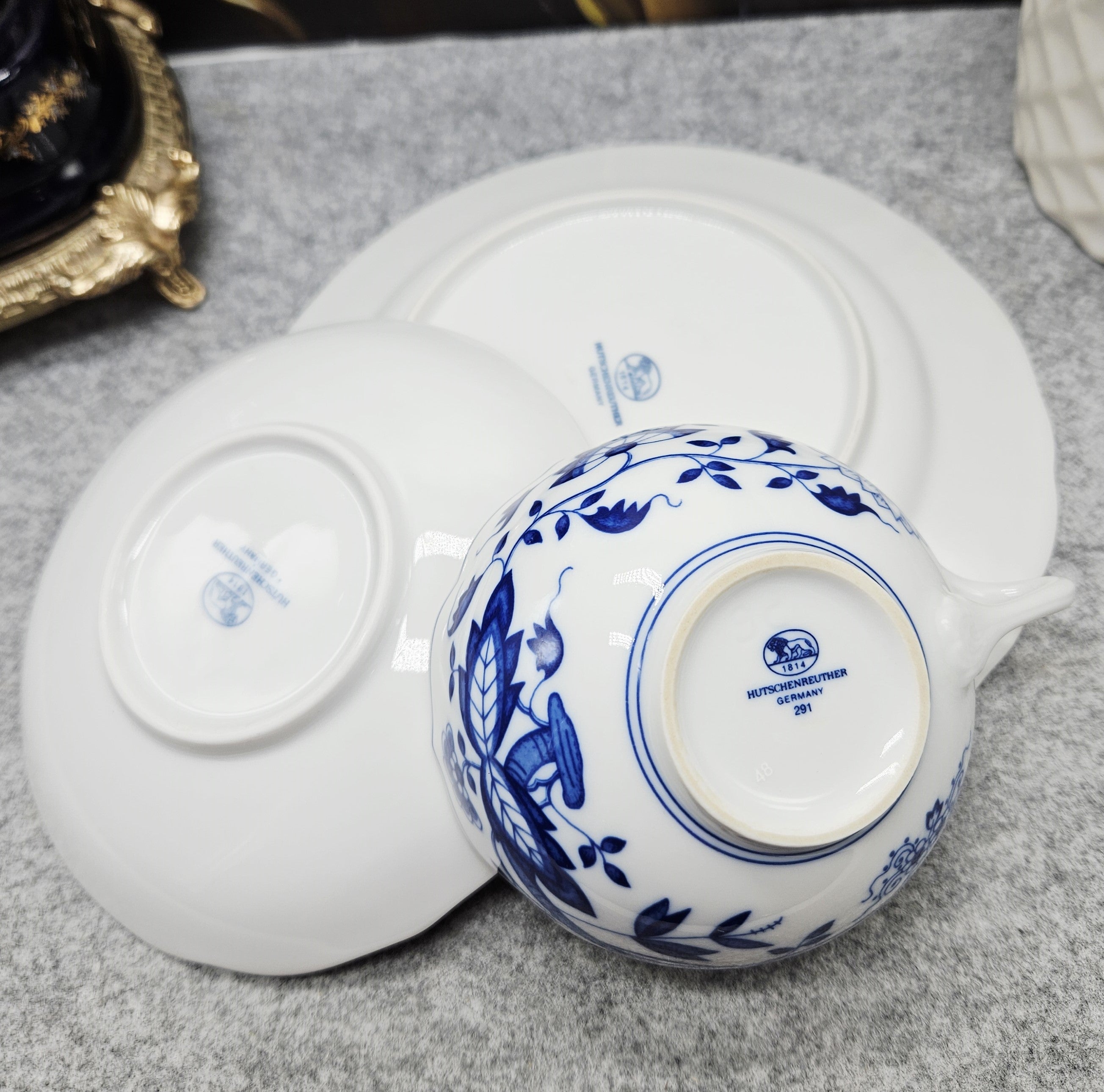 "Hutschenreuther " Zwiebelmuster (svogūnų rašto) kavos / arbatos puodelis su lėkštutėmis ~200ml.