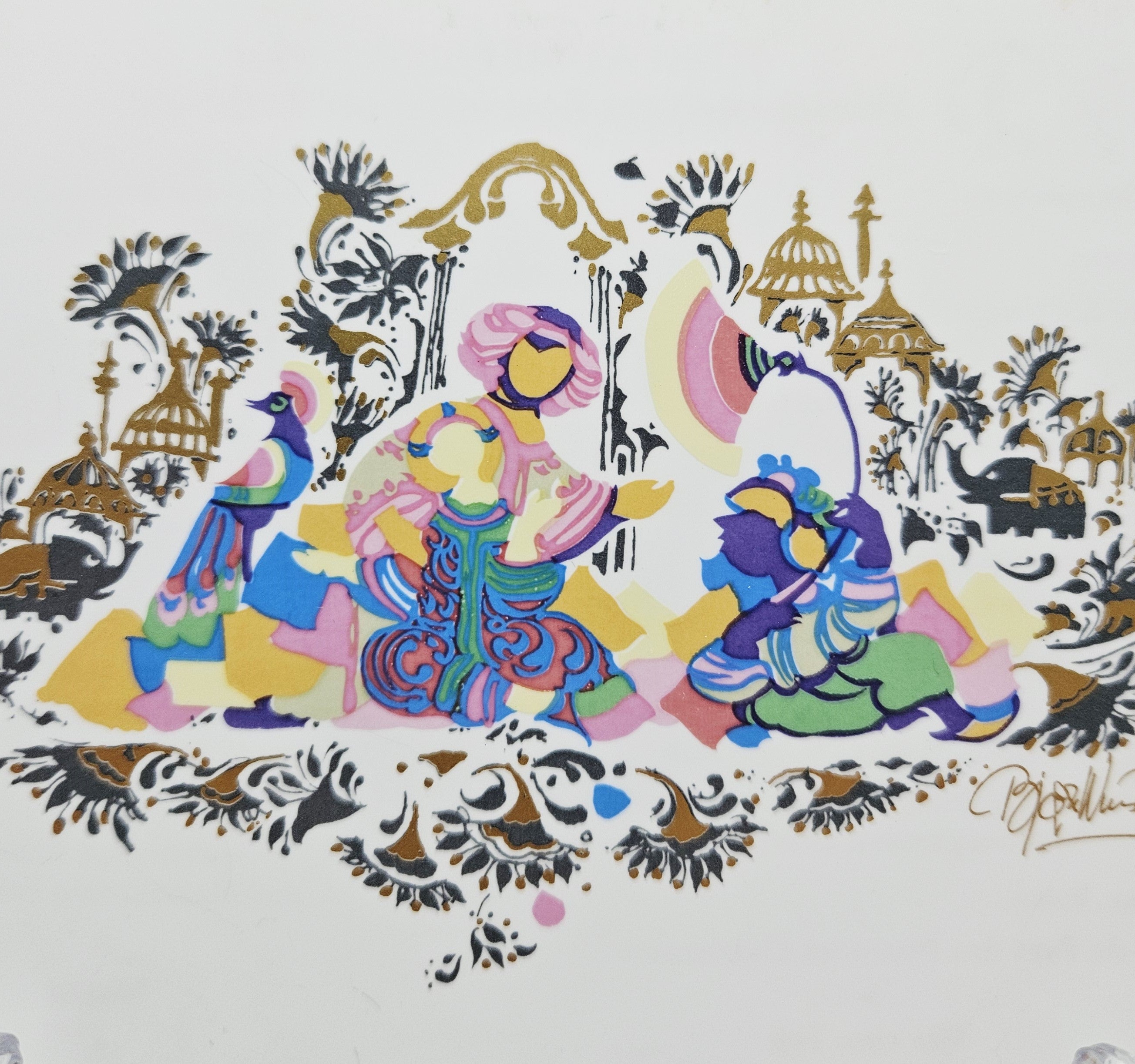 Šis nuostabus danų dailininko Bjerno Wiinblado porcelianinis atvirukas – tikras Rosenthal meistrystės ir meninės fantazijos derinys. Vokietijoje sukurtas kūrinys „Il Serraglio“ perteikia subtilią rytietišką sceną, papuoštą rafinuotais auksiniais akcentais, kurie švelniai žaižaruoja šviesoje ir suteikia kompozicijai prabangos pojūtį. Dešinėje pusėje esantis Wiinblado parašas pabrėžia autentiškumą ir menininko išskirtinį stilių.