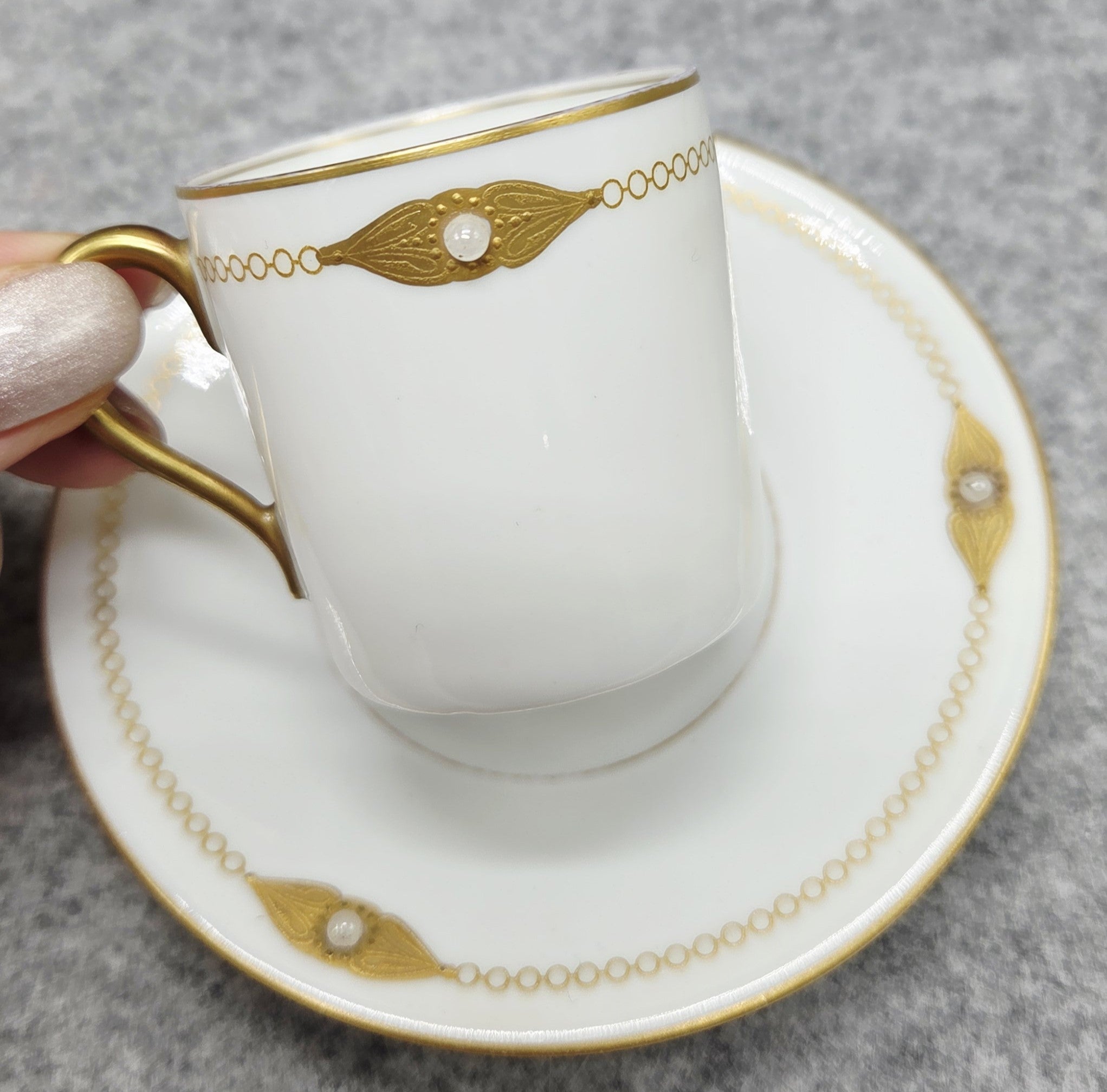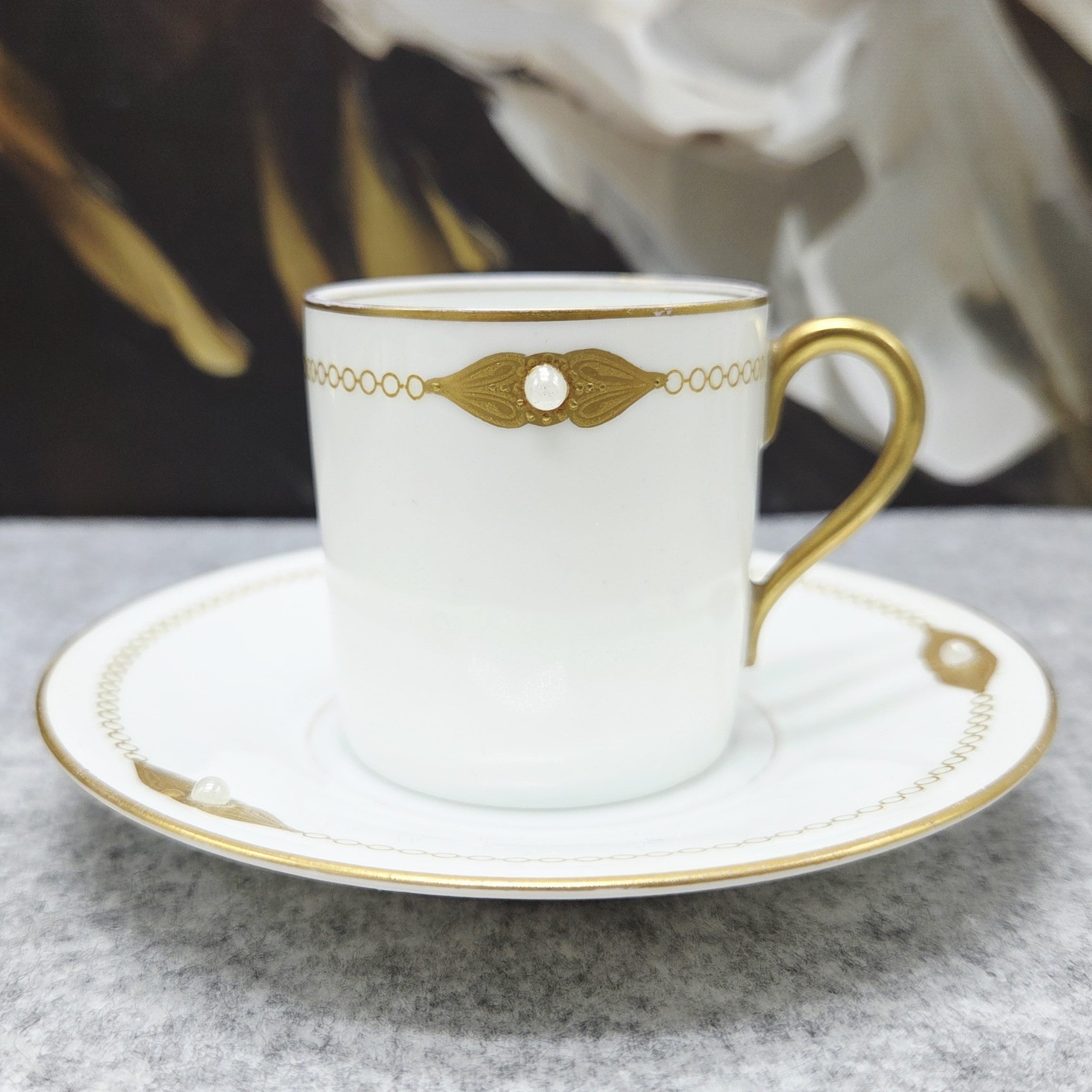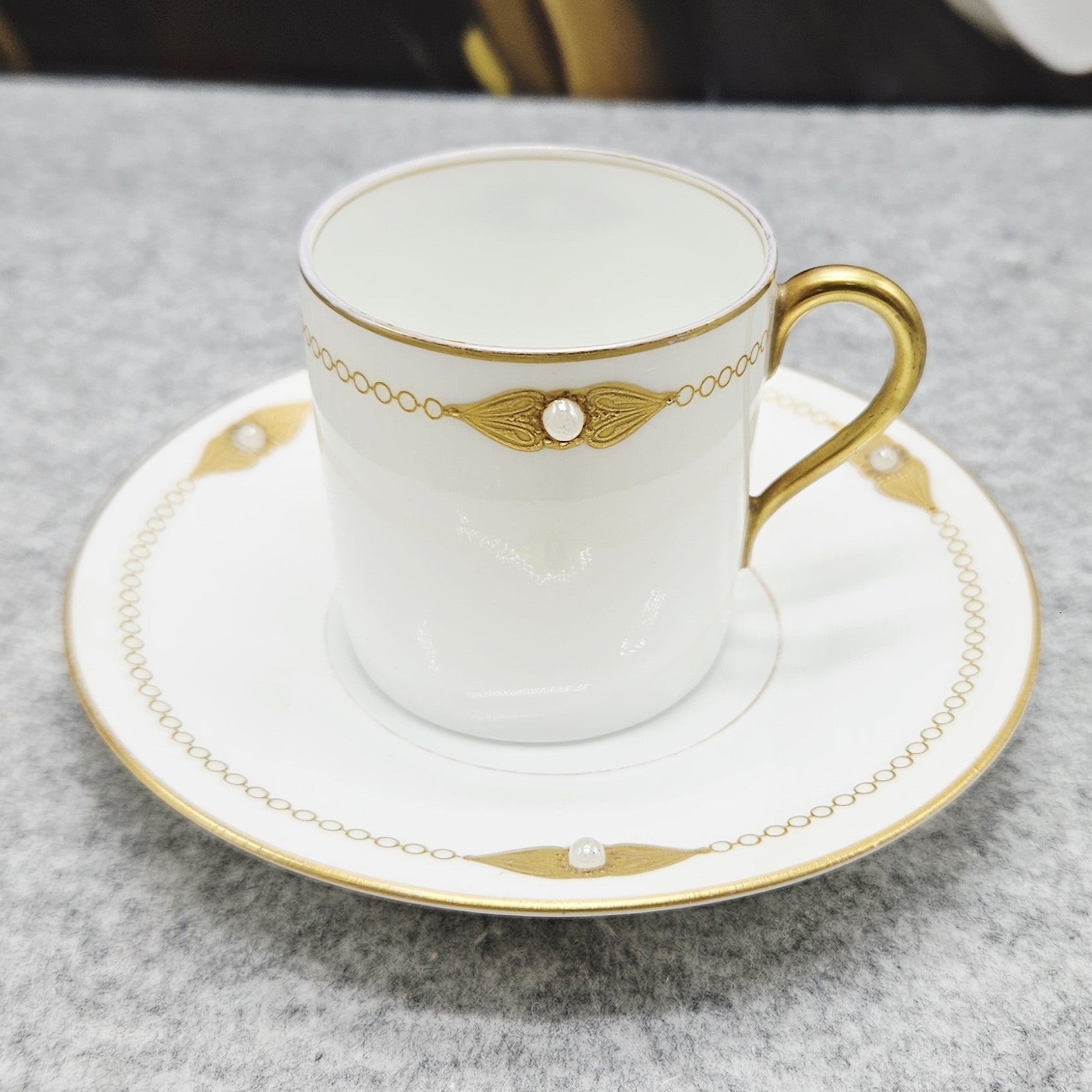 Šis rafinuotas rinkinys žavi savo išskirtiniu dekoru: trys tarsi perlų akutės ant lėkštutės ir dvi ant puodelio – tikrai prikaustys kiekvieno žvilgsnį. Baltas porcelianas ir aukso detalės – tikras karališkas derinys, suteikiantis kavos gėrimo ritualams ypatingą nuotaiką.