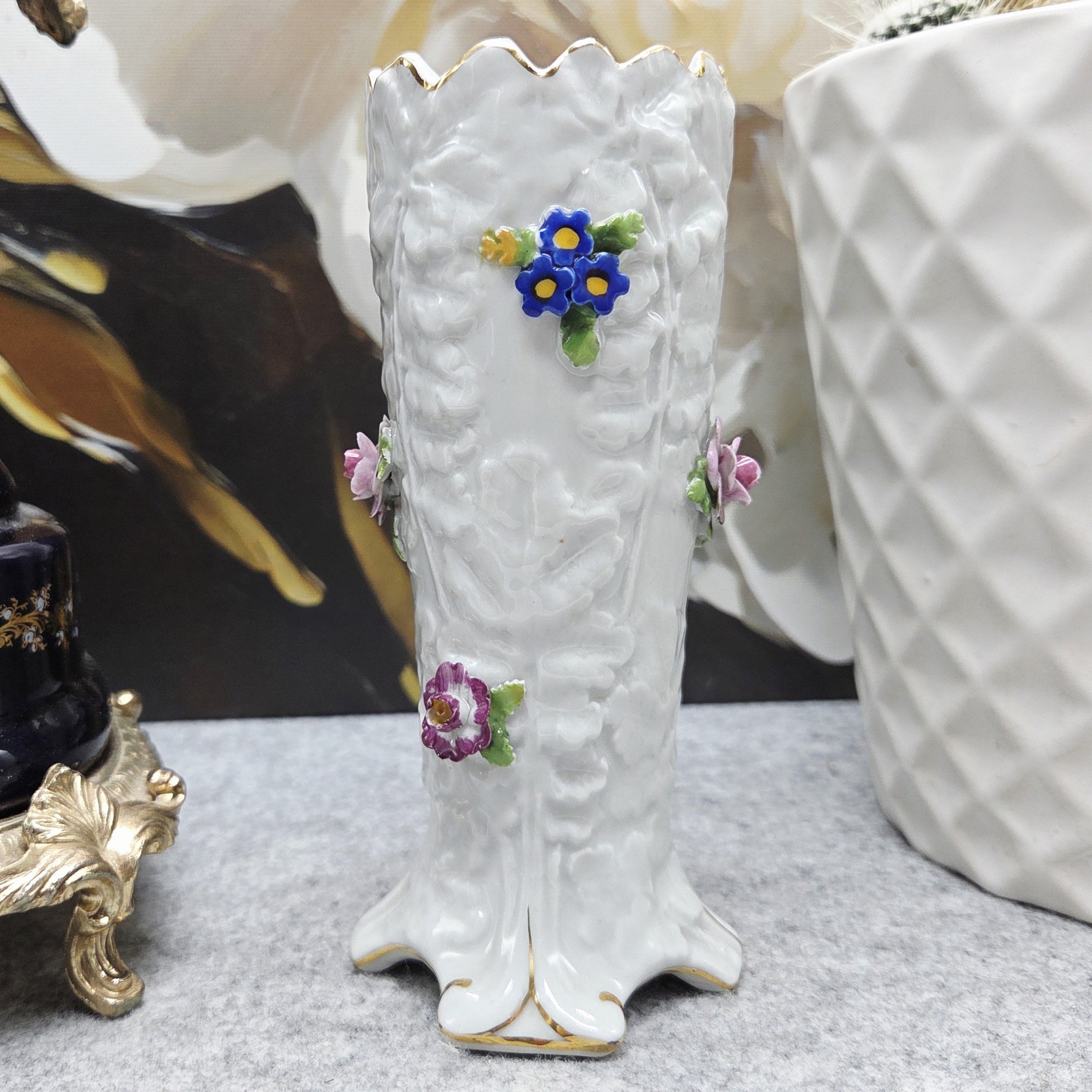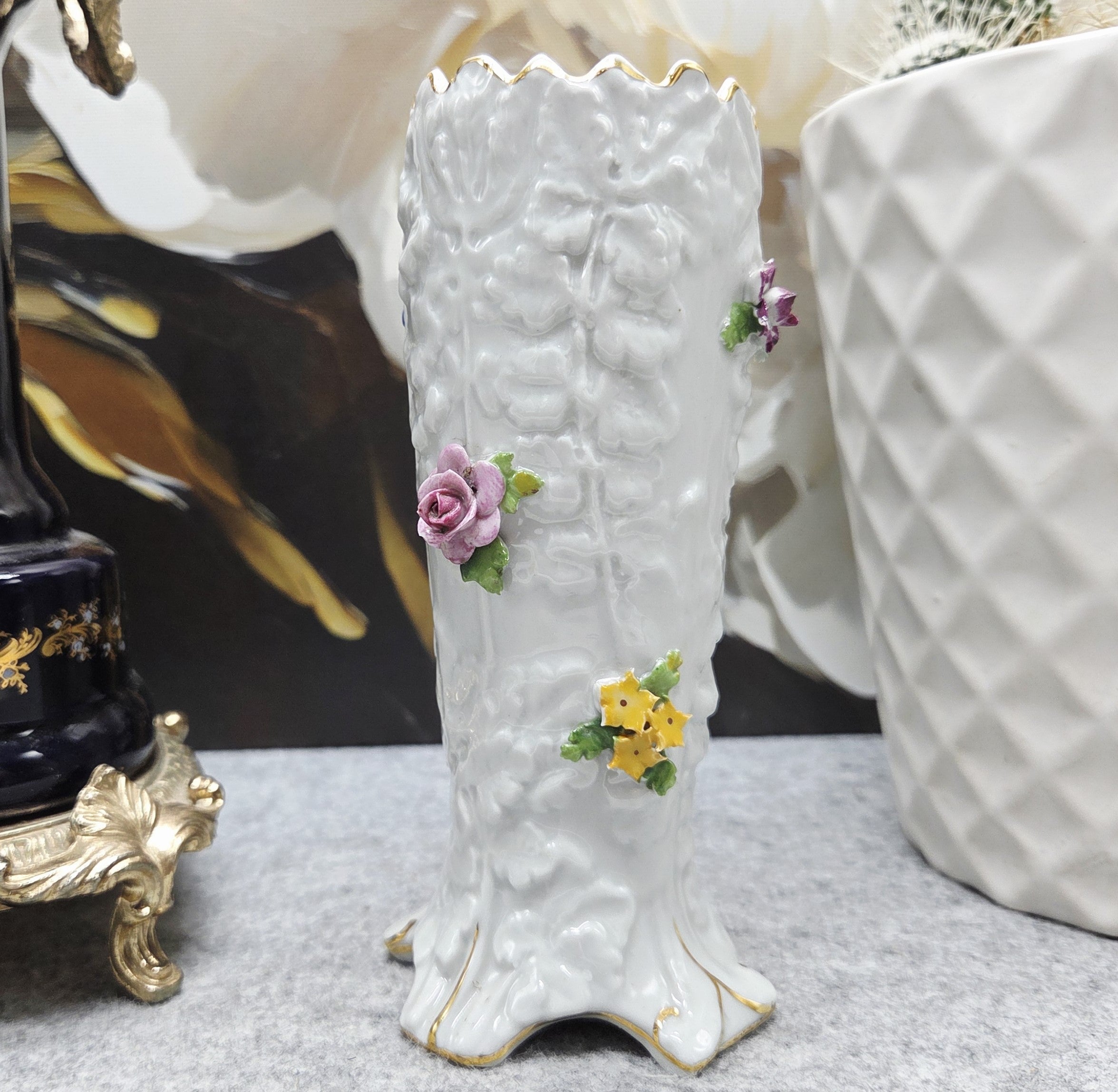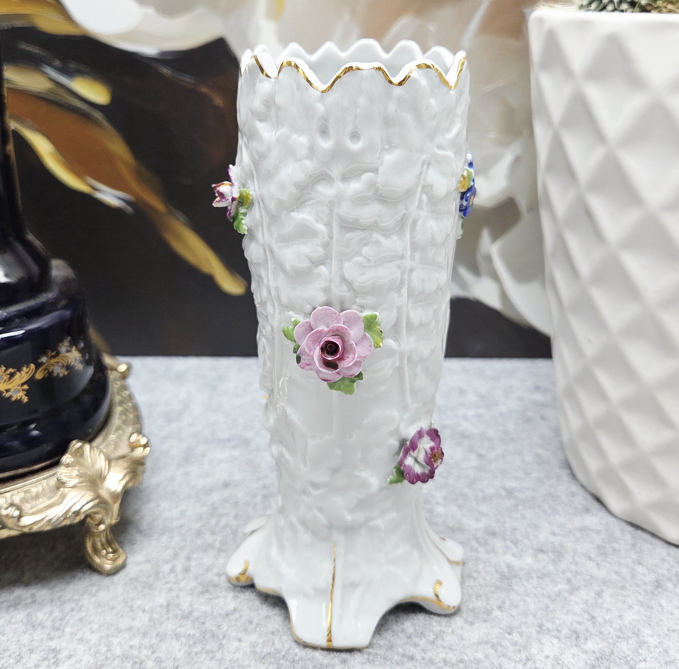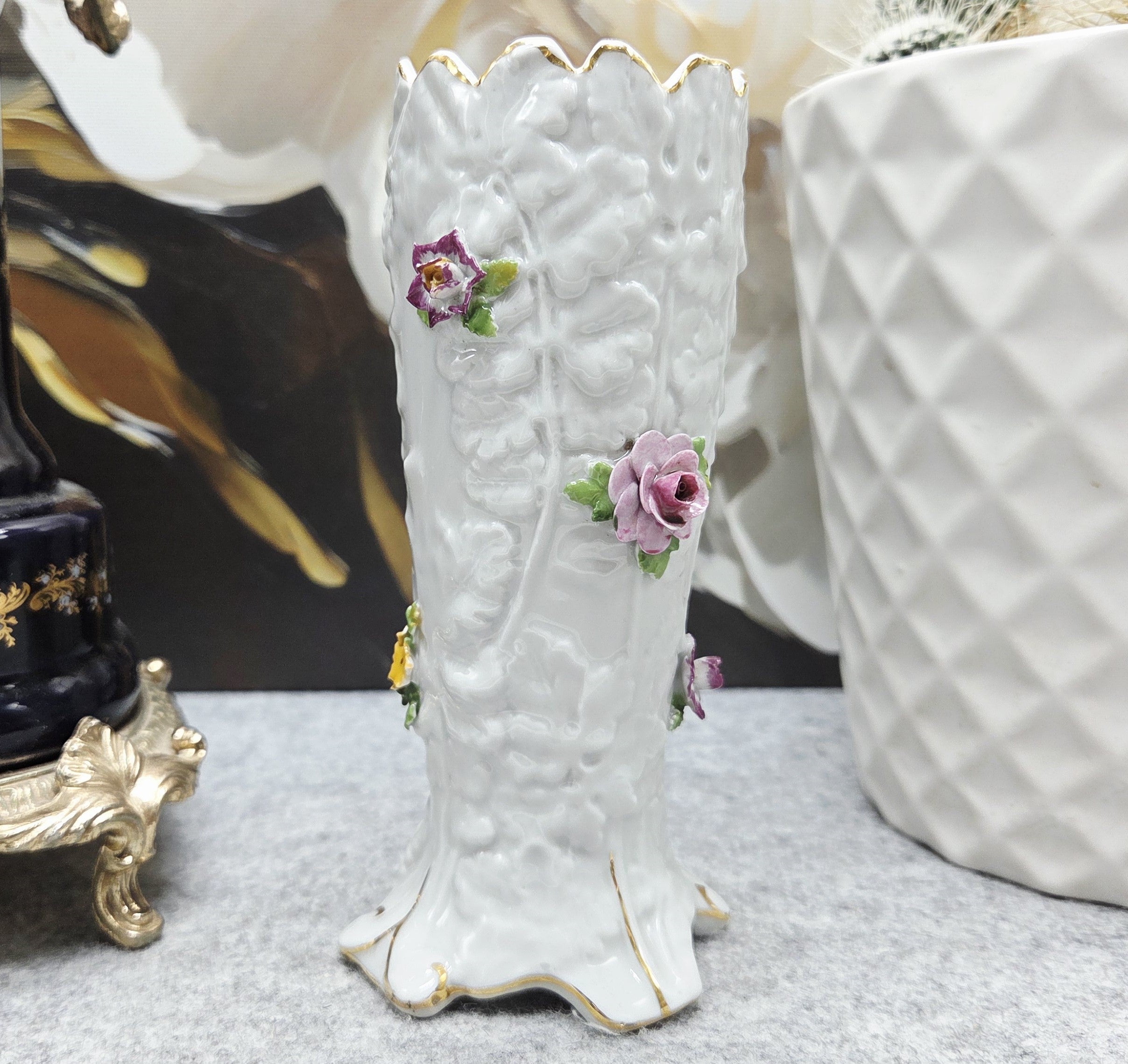 Vazelės būklė labai gera, tačiau ant porceliano gėlyčių gali būti labai nežymių, minimalių pažeidimų, būdingų tokio tipo rankų darbo dekorui.