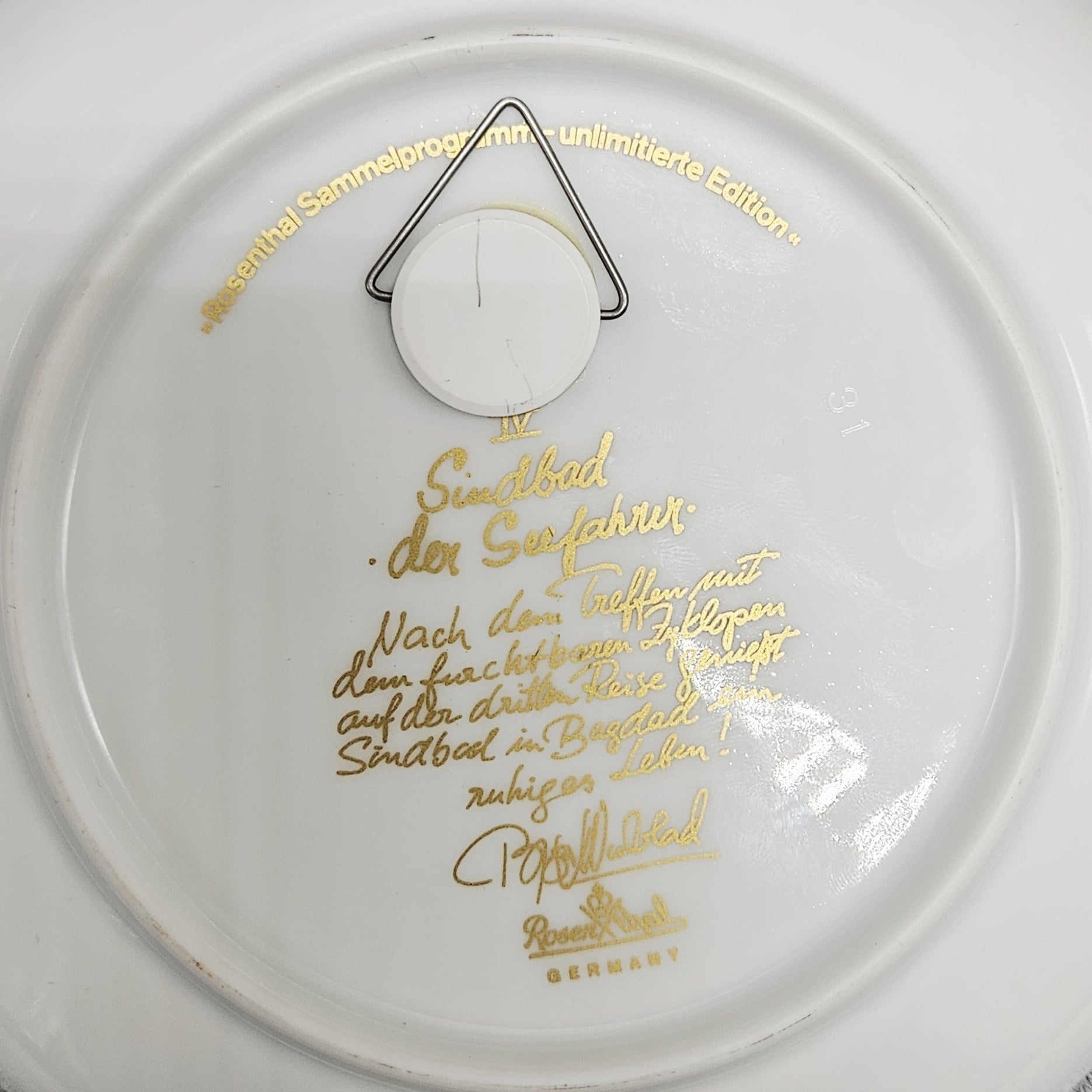 Ši išskirtinė „Rosenthal Studio-linie“ kolekcinė lėkštė – tikras meno ir pasakų pasaulio perlas. Ji vaizduoja ketvirtąją Sindbado jūreivio kelionę, kupiną nuotykių ir stebuklingų dovanų iš tolimų kraštų. Kitoje pusėje esantis auksinis užrašas skelbia, kad „Po trečiojoje kelionėje sutikto siaubingojo ciklopo, Sindbadas ramiai gyvena Bagdade“. Tai ne tik dekoratyvinis daiktas, bet ir istorijos fragmentas, kuris įprasmina senovės pasakojimų magiją. Lėkštė puikiai tinka rafinuotam interjerui ar išskirtinei kolekcijai papildyti.