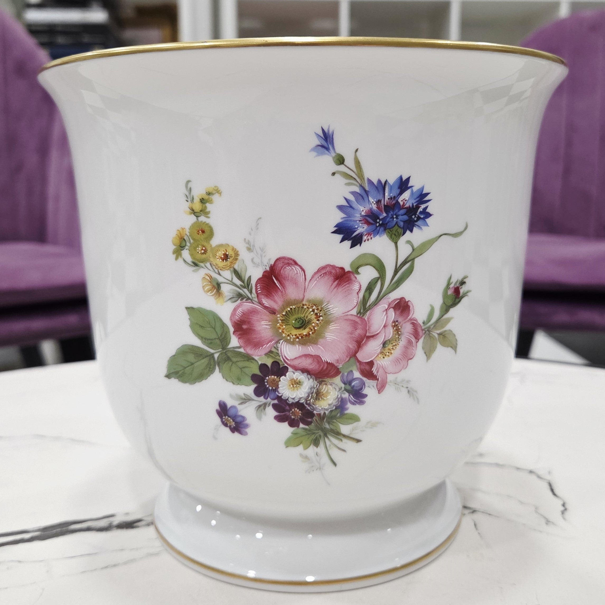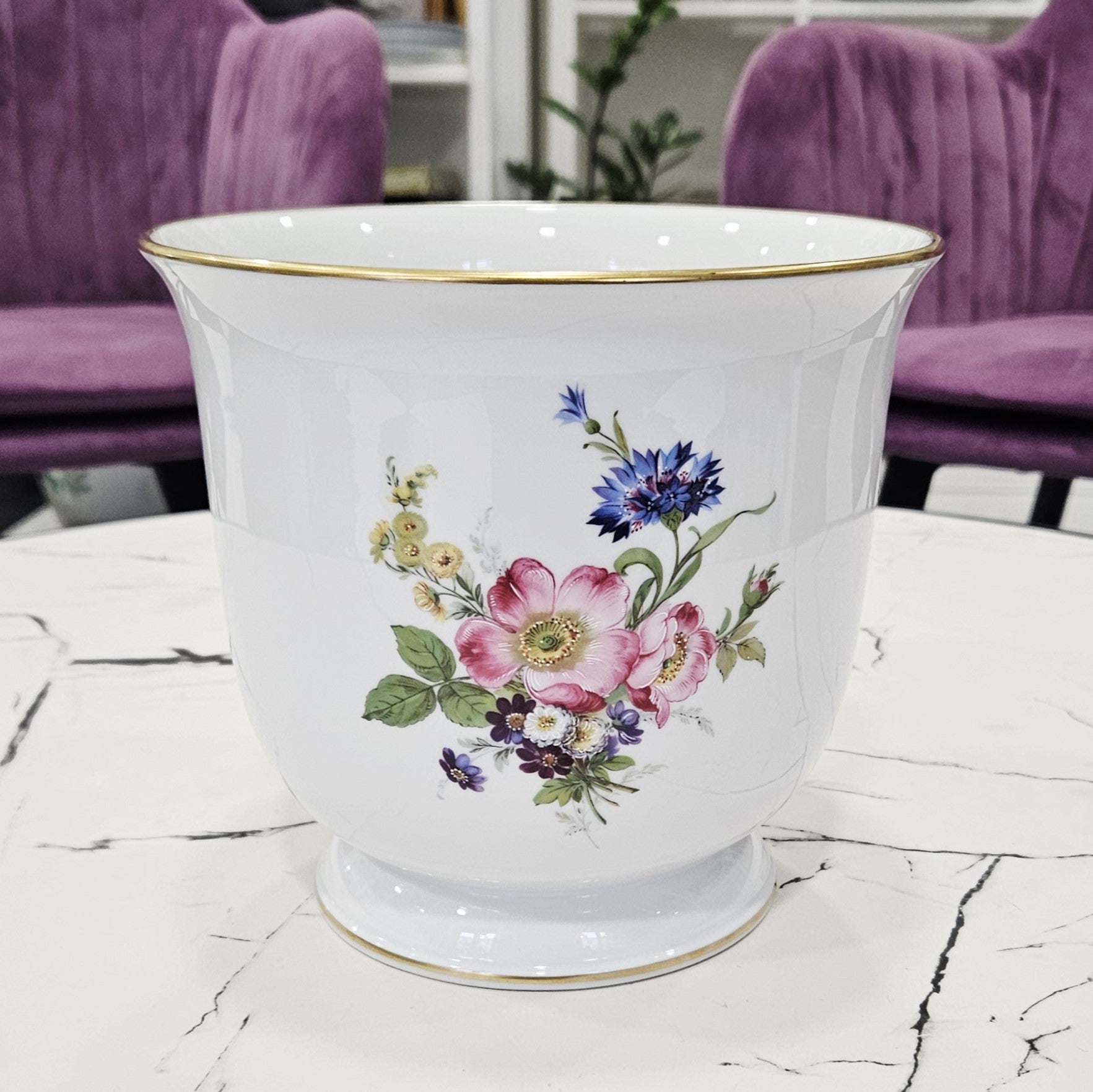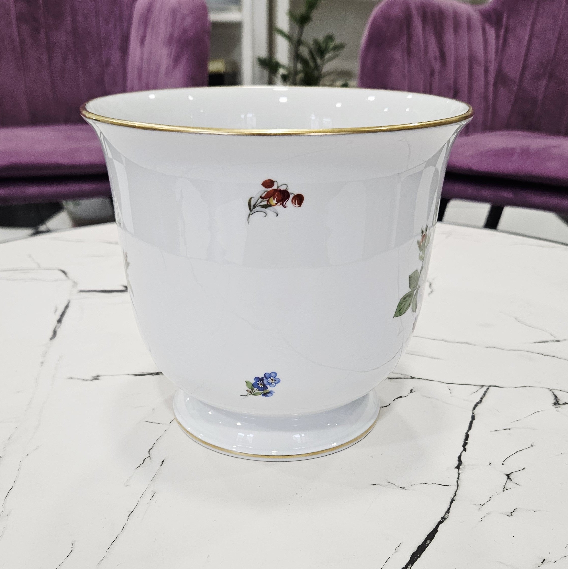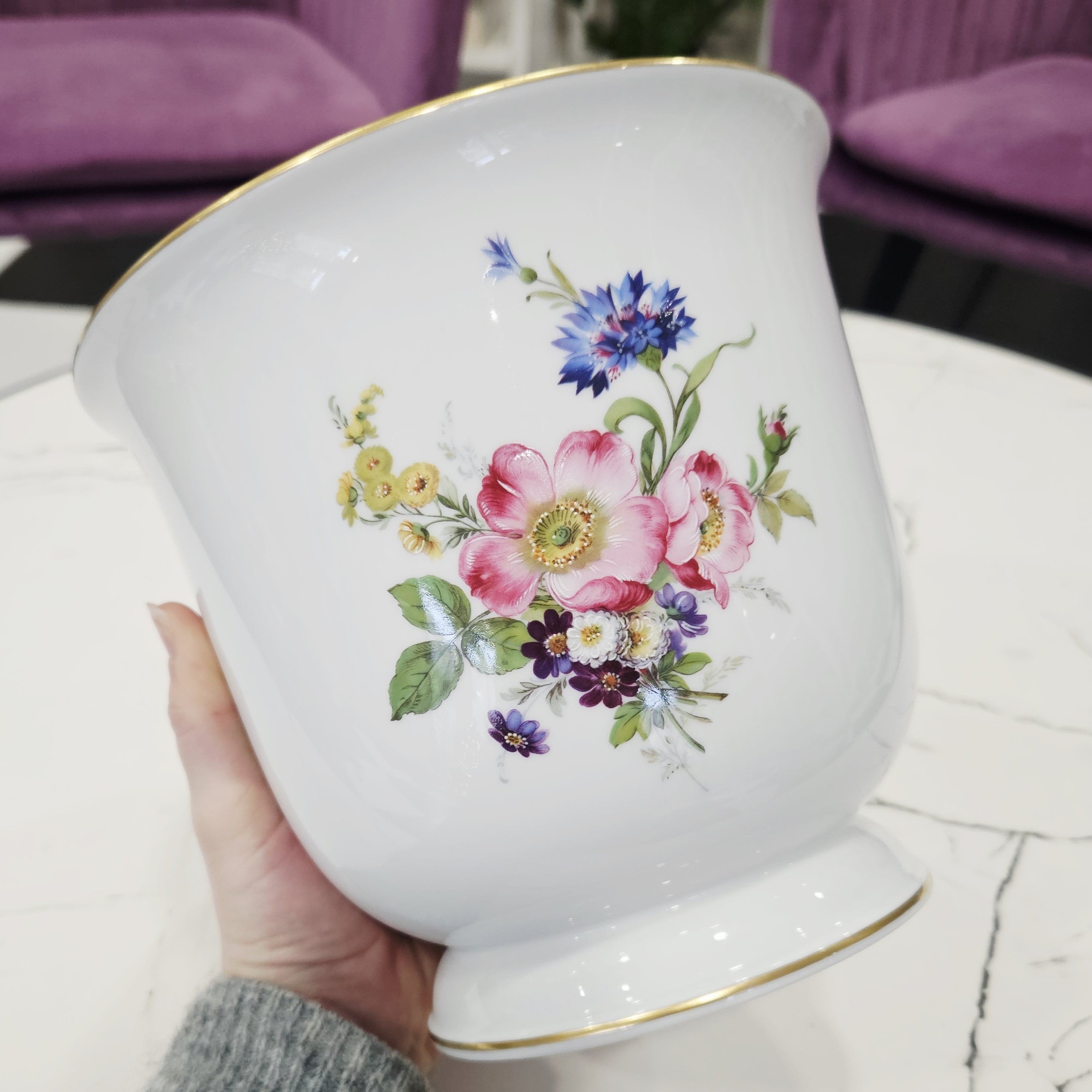 Išskirtinis, didelis „AK Kaiser“ porceliano vazonas iš serijos „Gloria“, dekoruotas sodo gėlių kompozicijomis ir aukso linijomis.