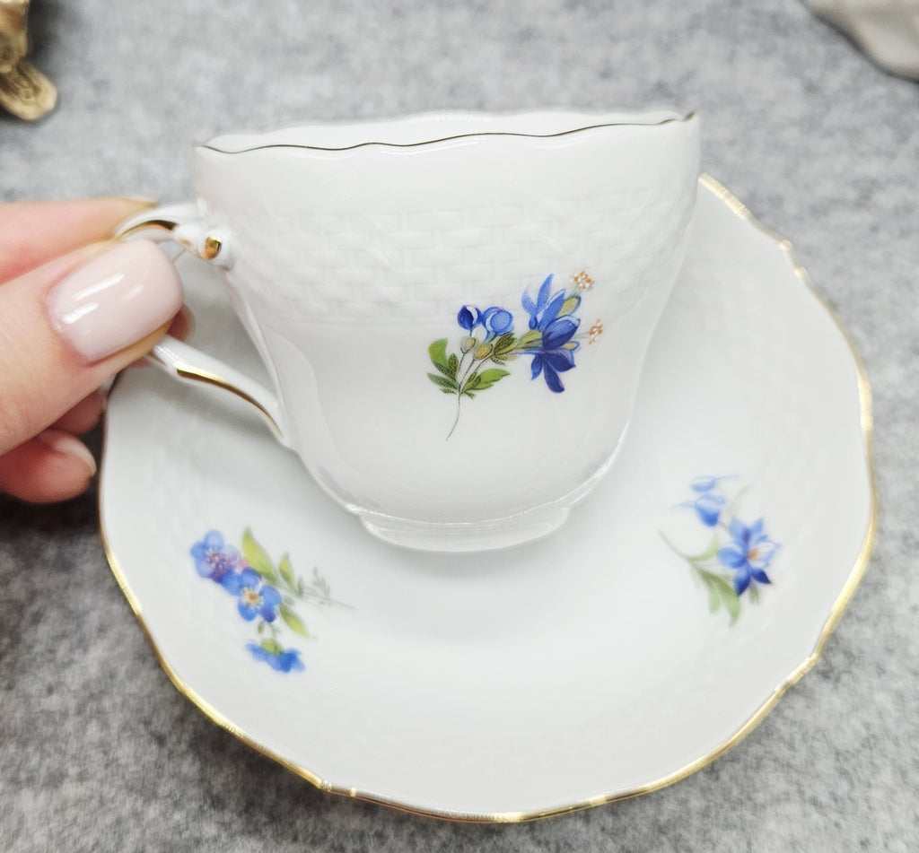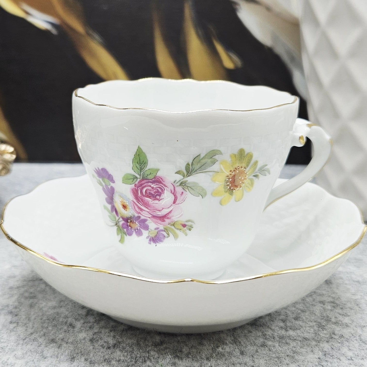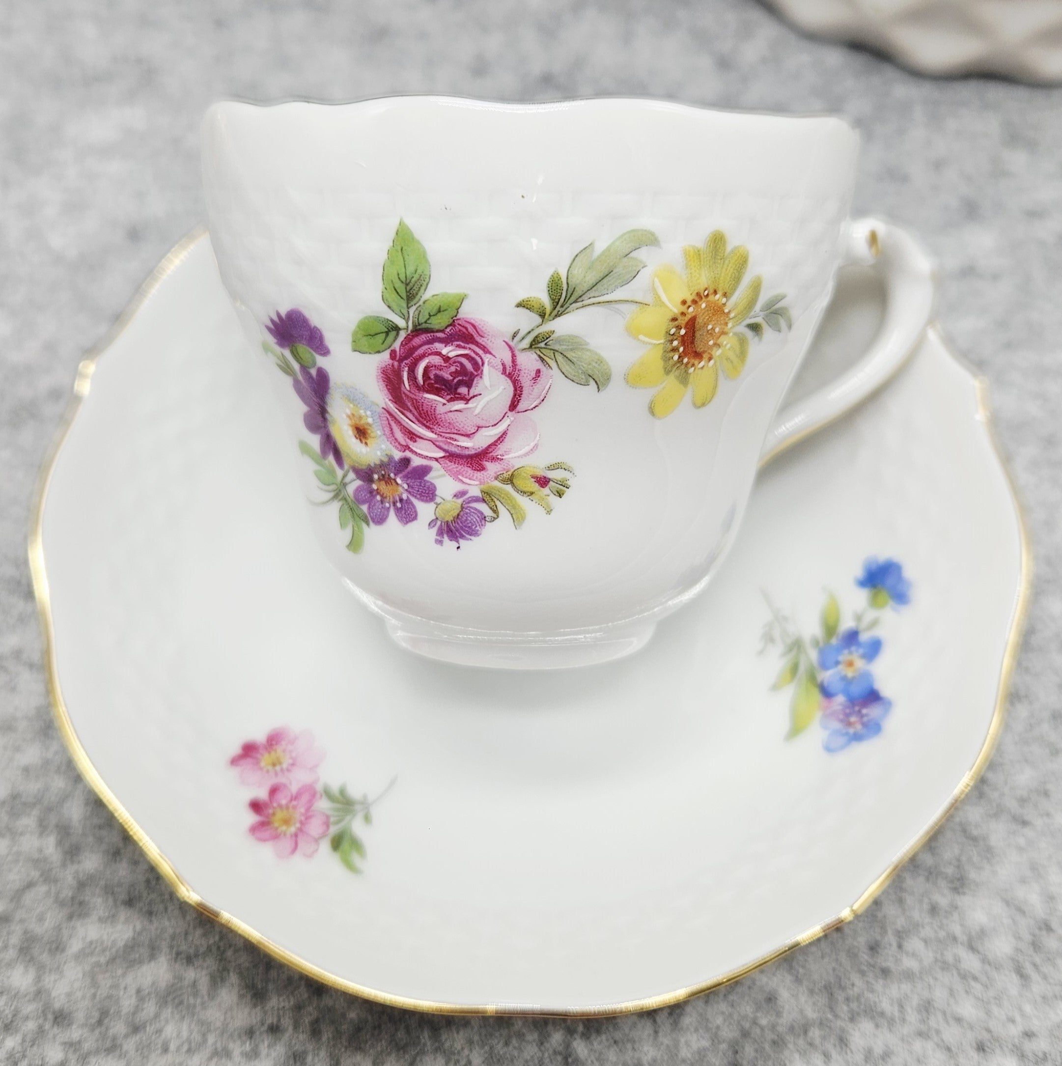 Nuostabus "Ak Kaiser W Germany" porceliano espressso kavos puodelis, dekoruotas gėlių kompozicija (90ml.)