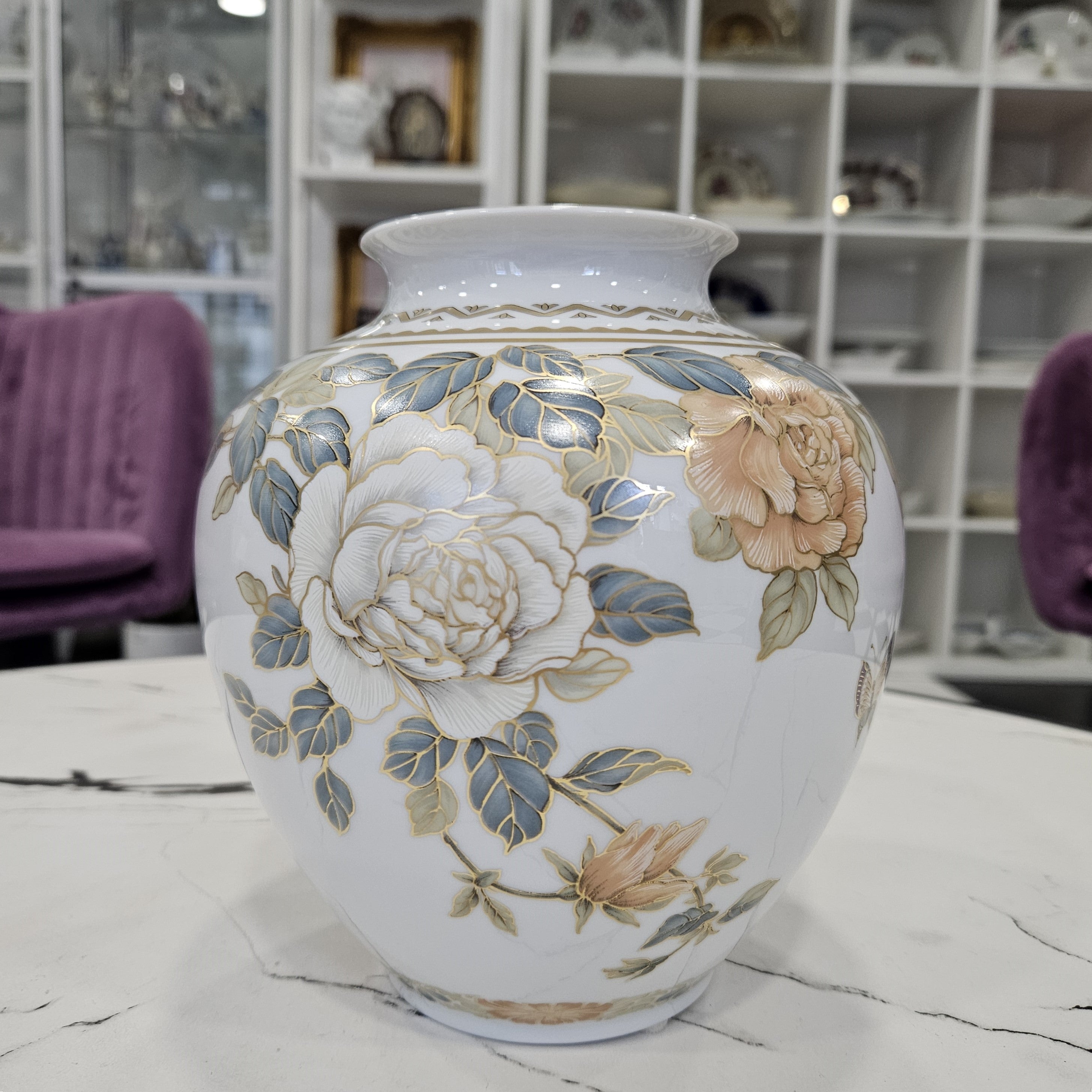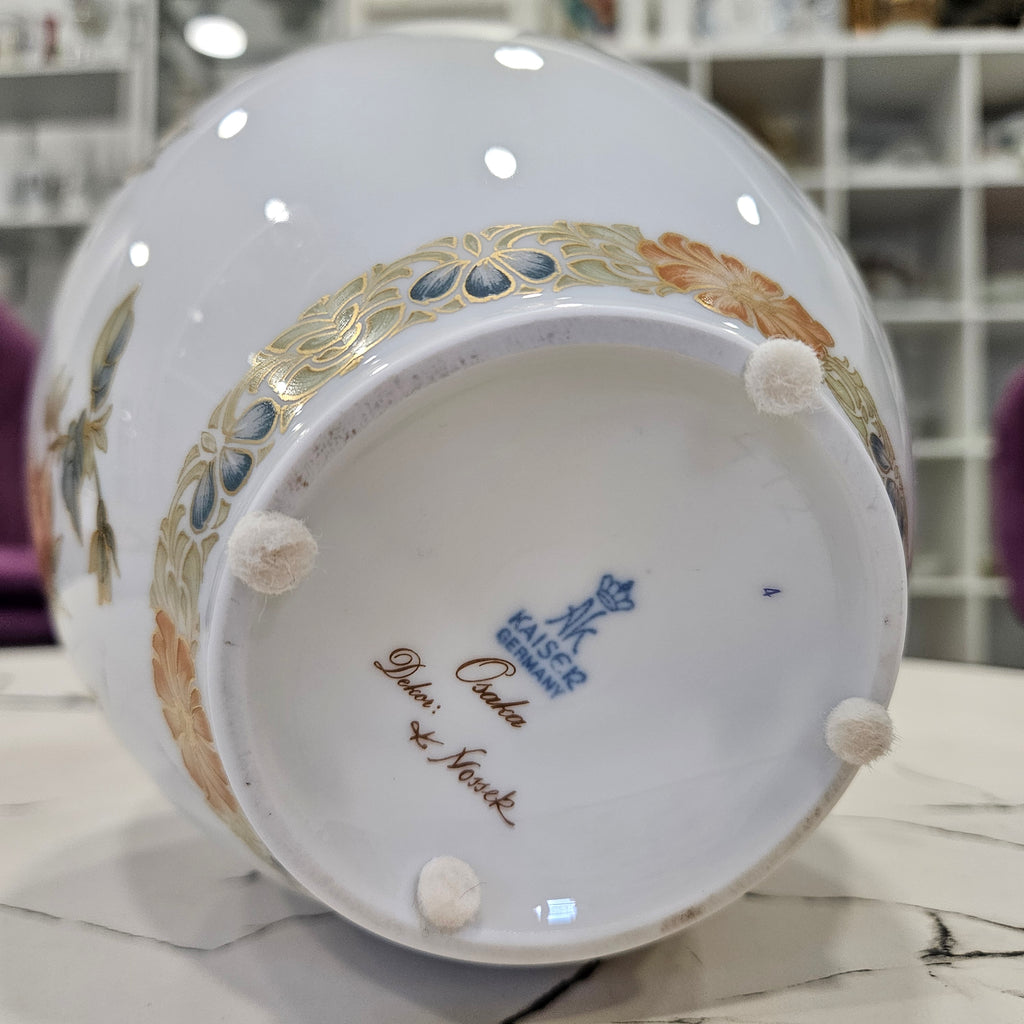 Išskirtinio grožio porcelianinė vaza „Osaka“, sukurta garsaus dizainerio Kurt Nossek Vokietijos porceliano manufaktūroje Kaiser. Vaza išsiskiria aukso ornamentais, subtiliomis gėlių kompozicijomis švelnių persikinių ir baltų tonų derinyje bei prabangiu glazūros blizgesiu.