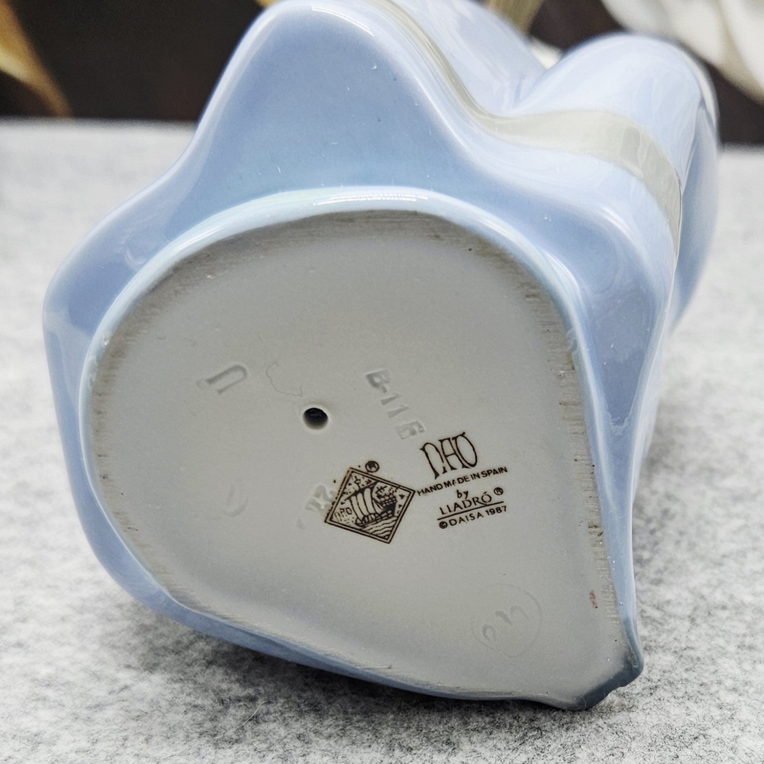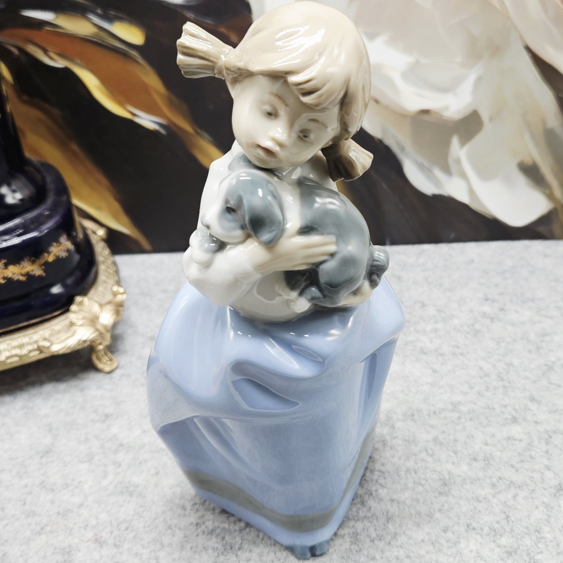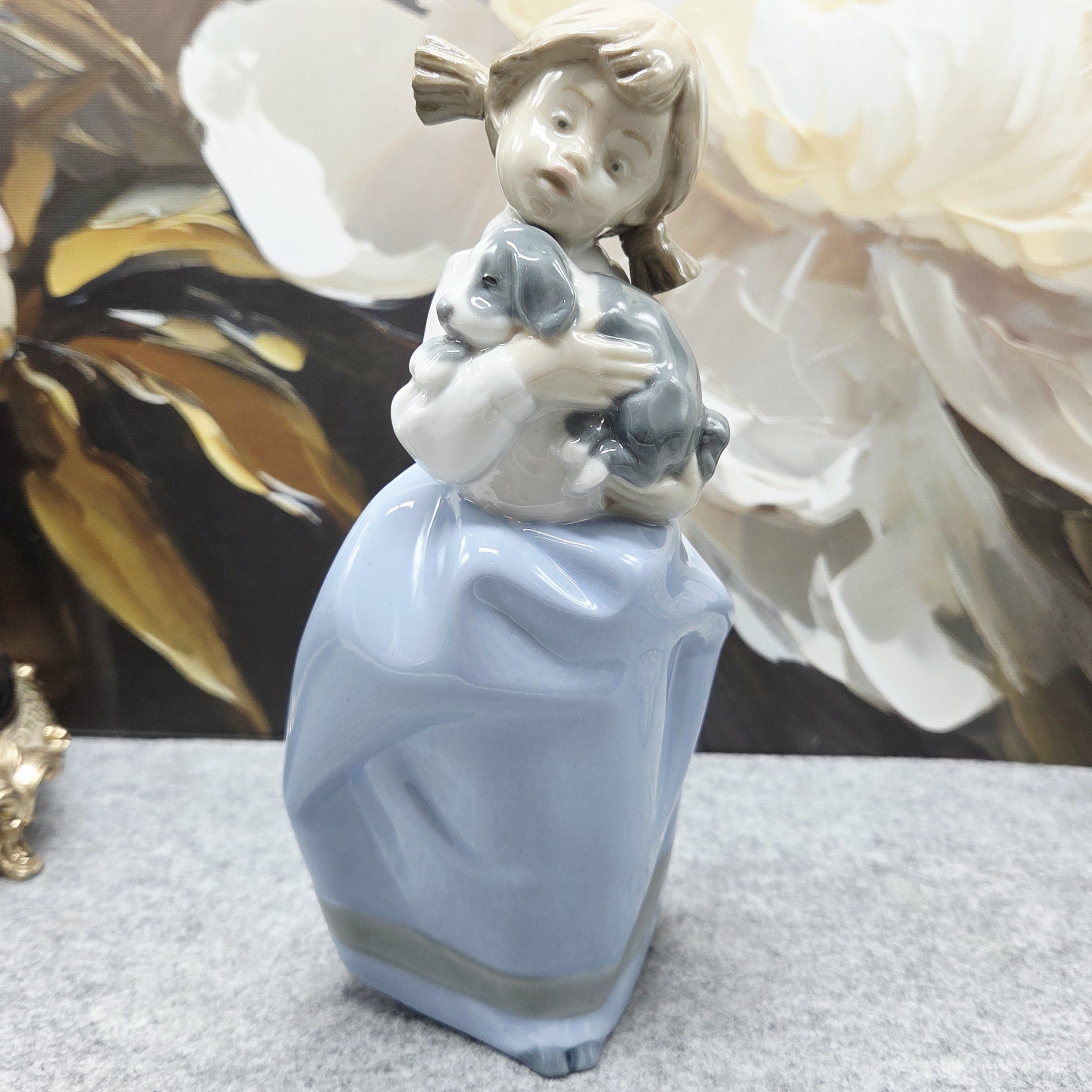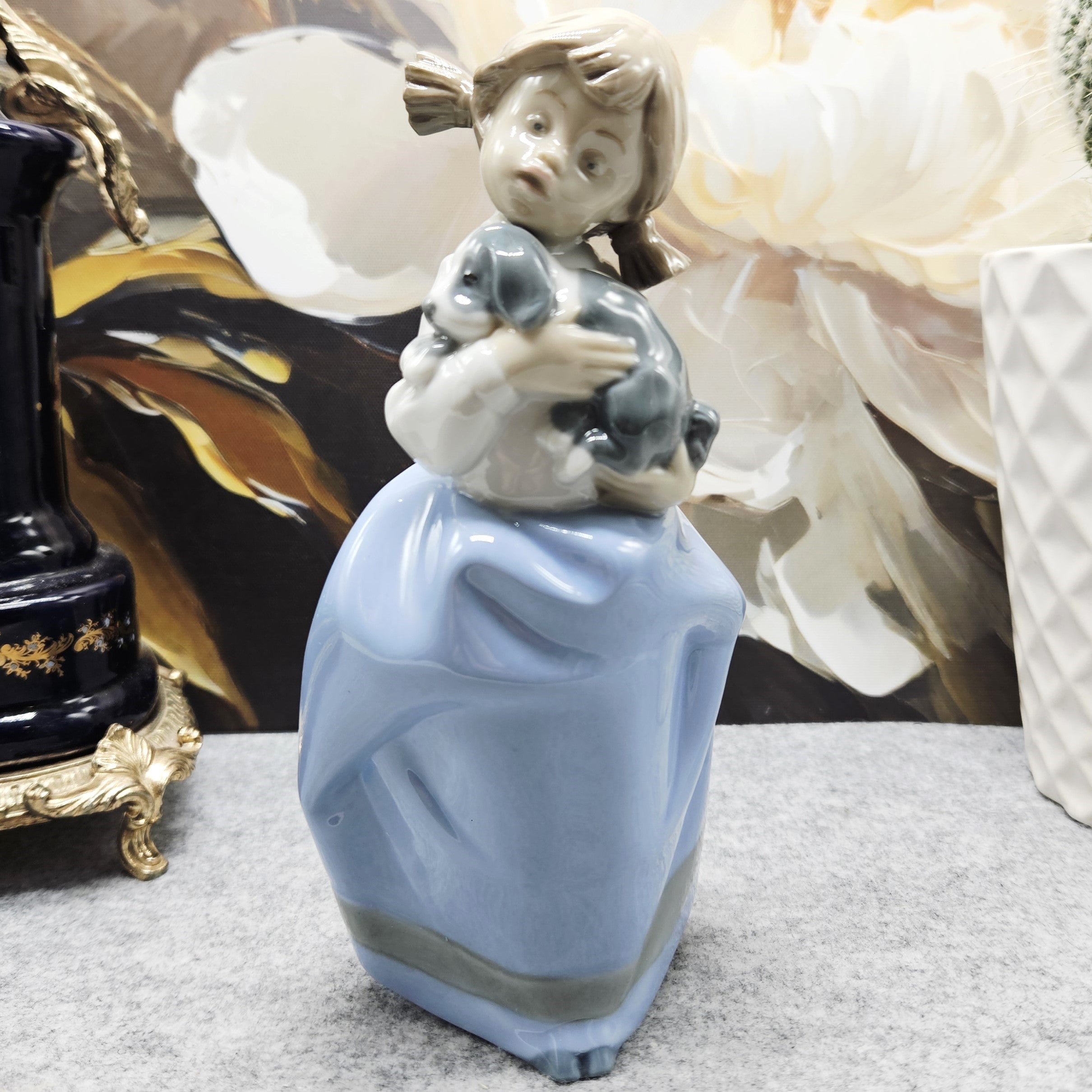 Lladro statulėlė „Mergaitė su šuniuku“ atspindi kompanijos meistriškumą ir dėmesį detalėms. Dirbinys vaizduoja mergaitę melsvu, plazdančiu sijonu, nešančią rankose šuniuką. Statulėlė išsiskiria švelniais spalvų tonais ir rafinuotomis formomis, būdingomis Lladro stiliui. Šis kūrinys pabrėžia eleganciją ir ramybę, būdingas daugumai Lladro darbų.