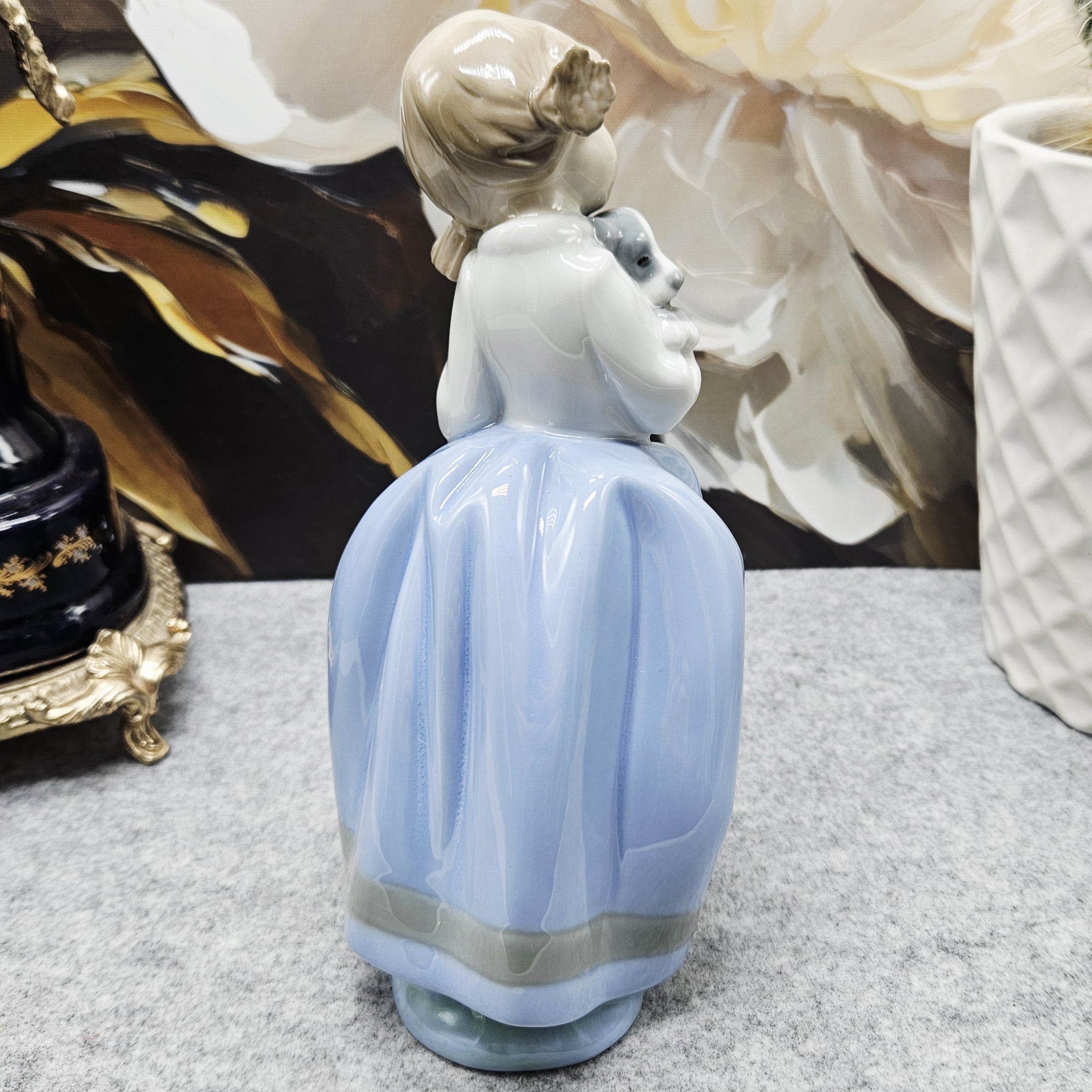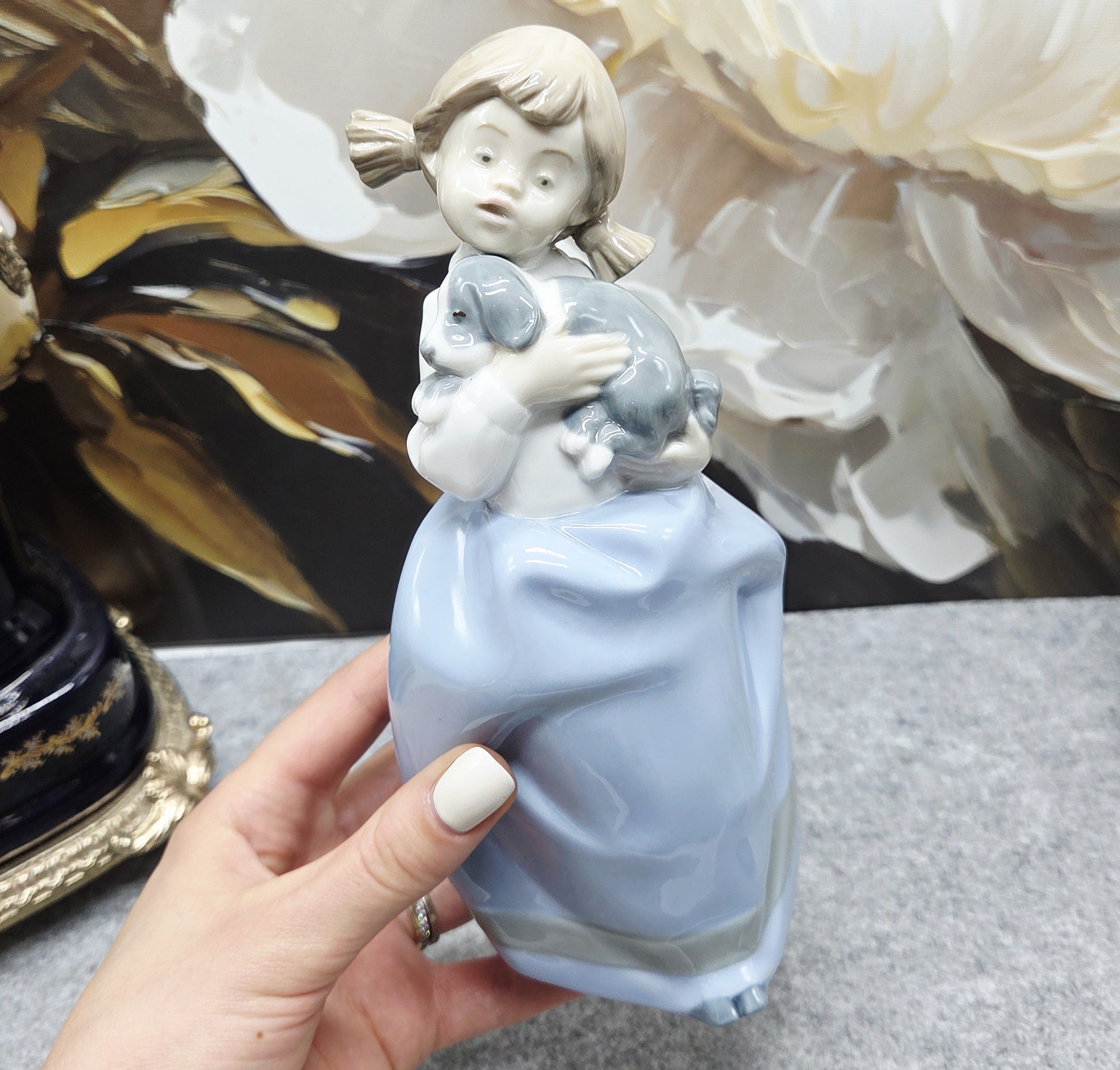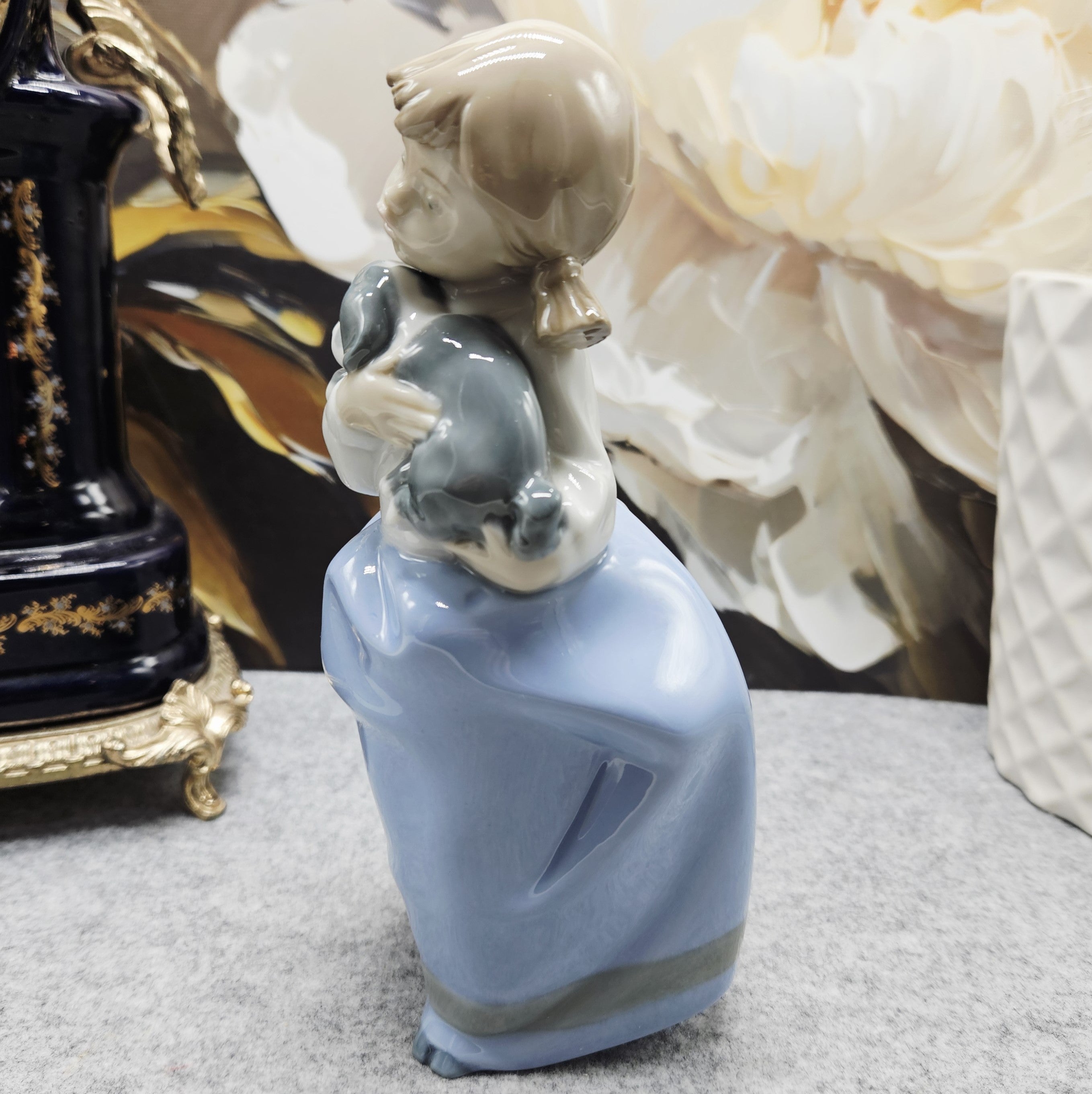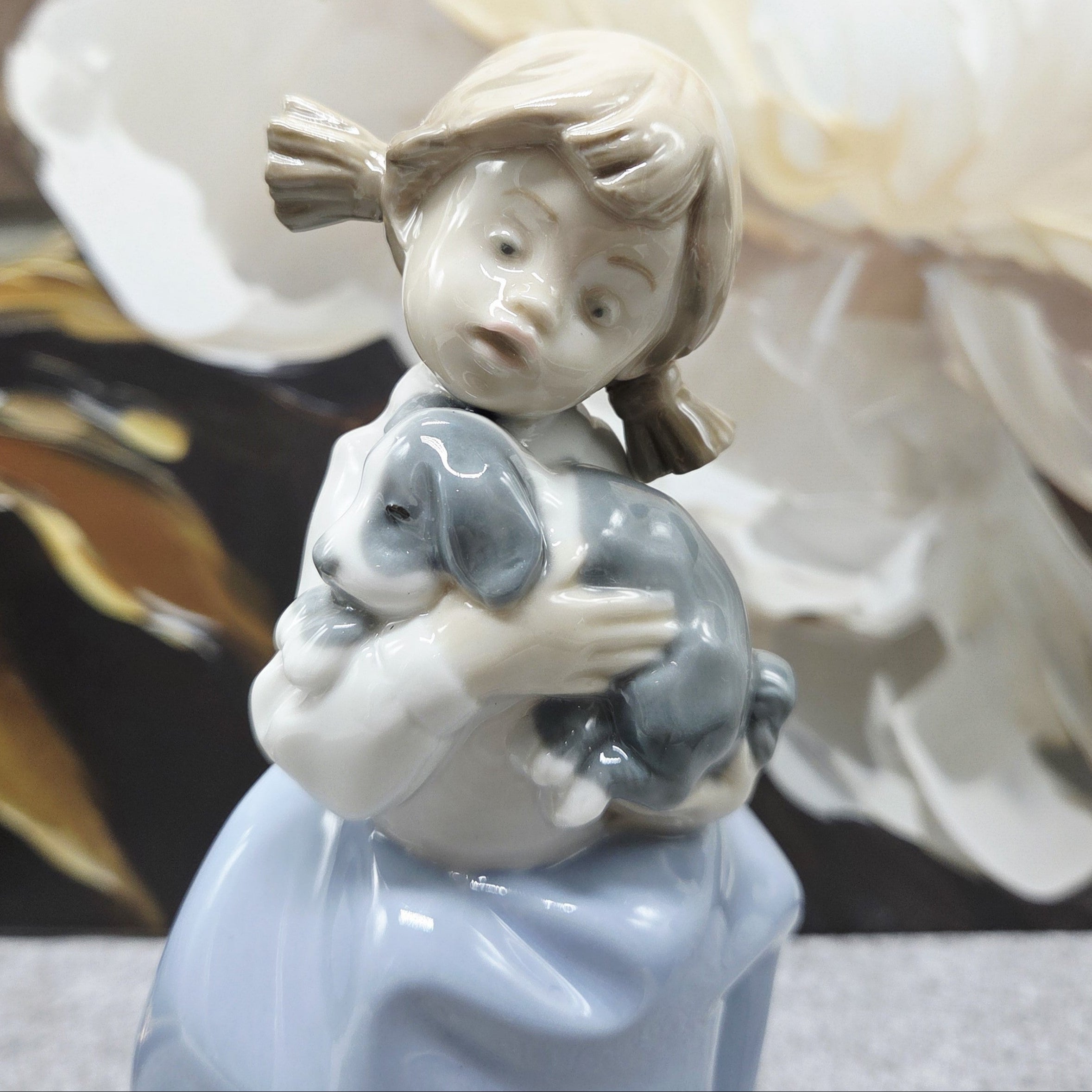 Nuostabi, rankų darbo, NAO by Lladro porceliano statulėlė „Mergaitė su šuniuku“.