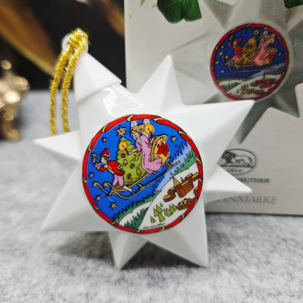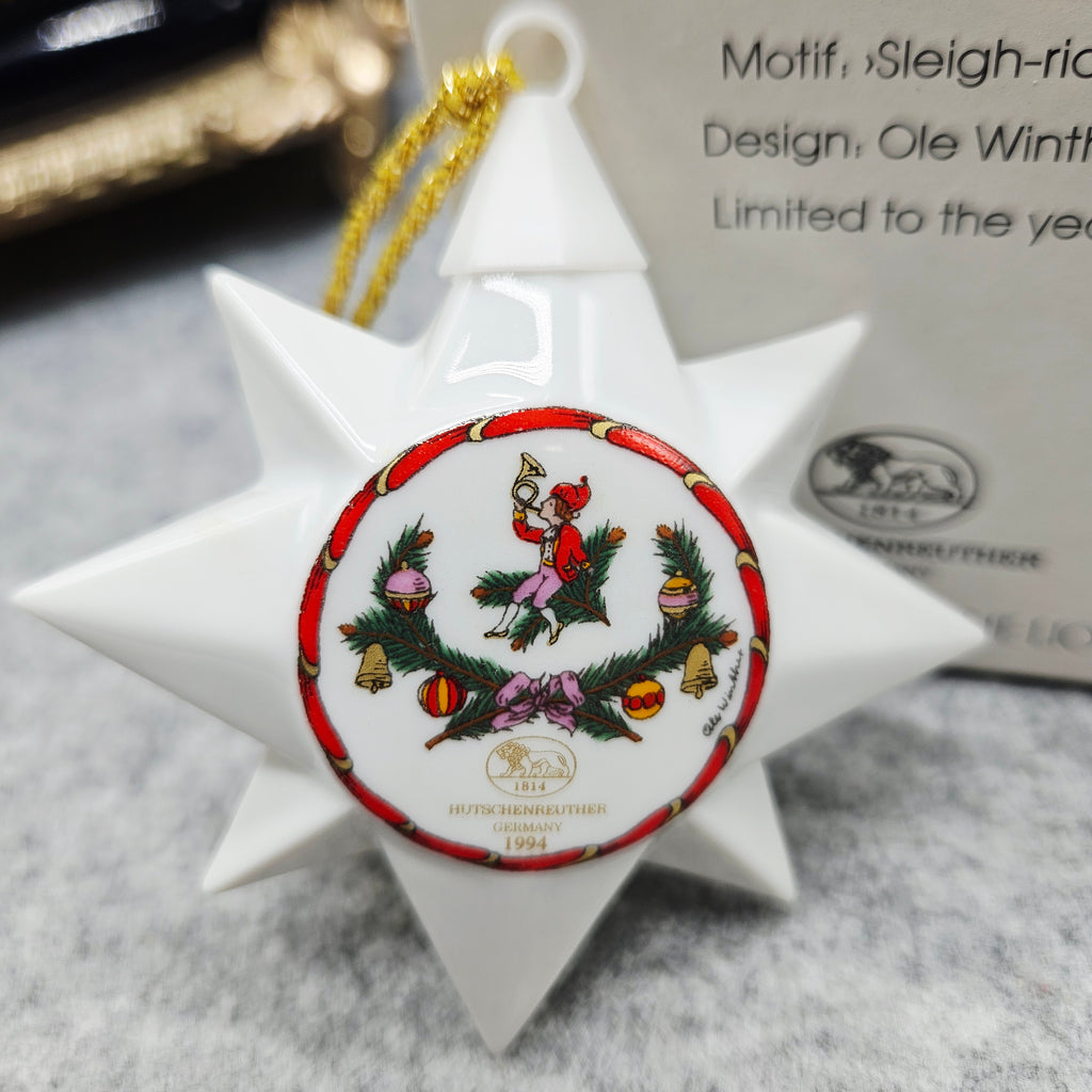 Nuostabus "Hutschenreuther" eglutės žaisliukas – kalėdinė žvaigždė "Sleigh Ride 1994" – tai išskirtinė šventinio dekoro detalė. Pagamintas iš aukštos kokybės medžiagų, jis ne tik puoš jūsų eglutę, bet ir suteiks namams ypatingą Kalėdų dvasią.