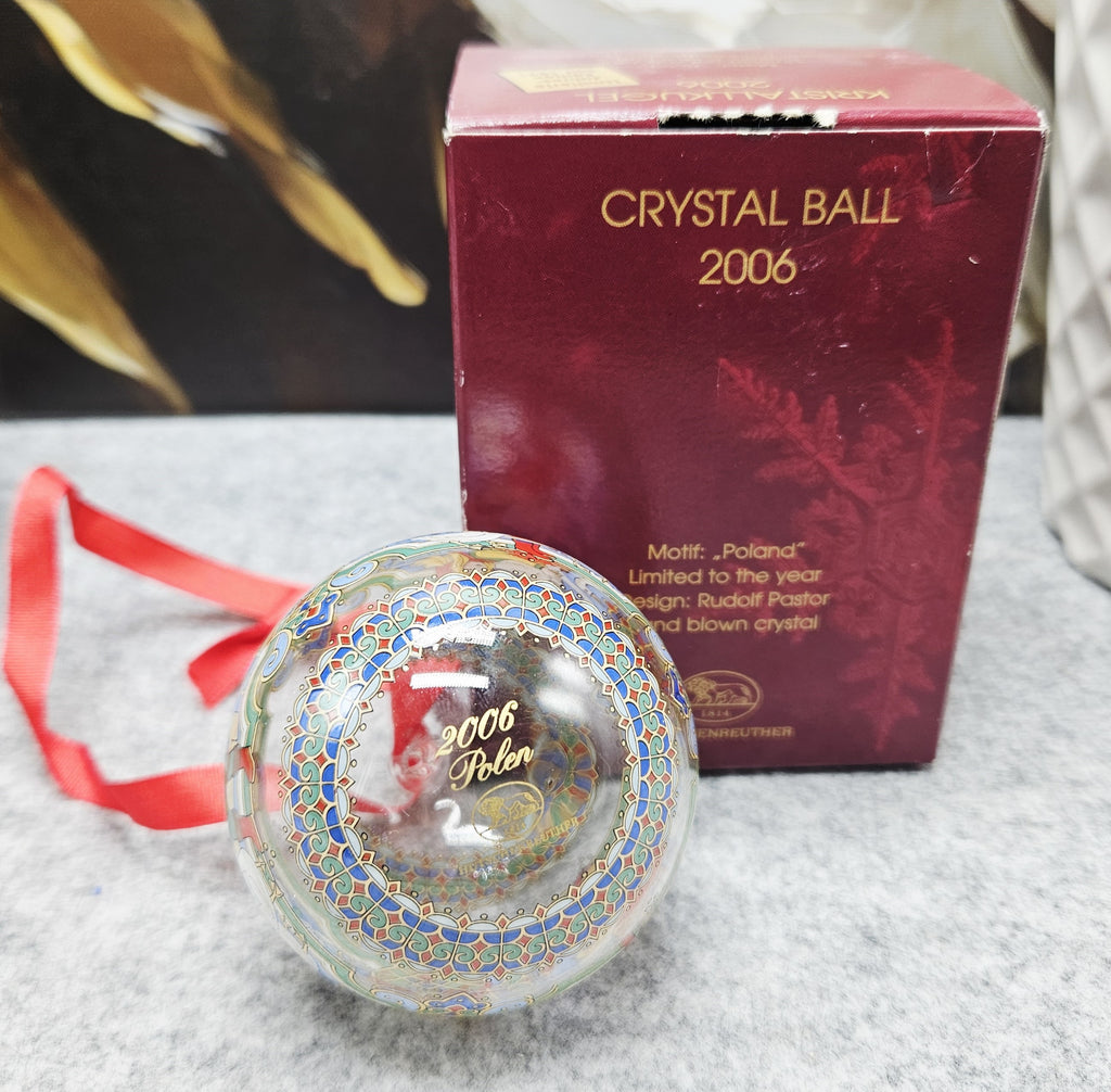 Išskirtinė „Hutschenreuther“ 2006 m. kolekcinė krištolinė Kalėdinė dekoracija su originalia dėžute. Motyvas „Poland“, dizainas Rudolf Pastor – rankų darbo pūstas krištolas papuoštas žaisminga pasakojimo scena ir tradiciniais lenkiškais ornamentais. Ryškios spalvos, gausūs raštai ir kruopšti piešinių detalizacija suteikia šiai dekoracijai šventinės nuotaikos, šilumos ir autentiškumo. Tai limituoto leidimo kolekcinis akcentas, puikiai papildantis Kalėdinę kolekciją ir tinkantis ypatingai dovanai.