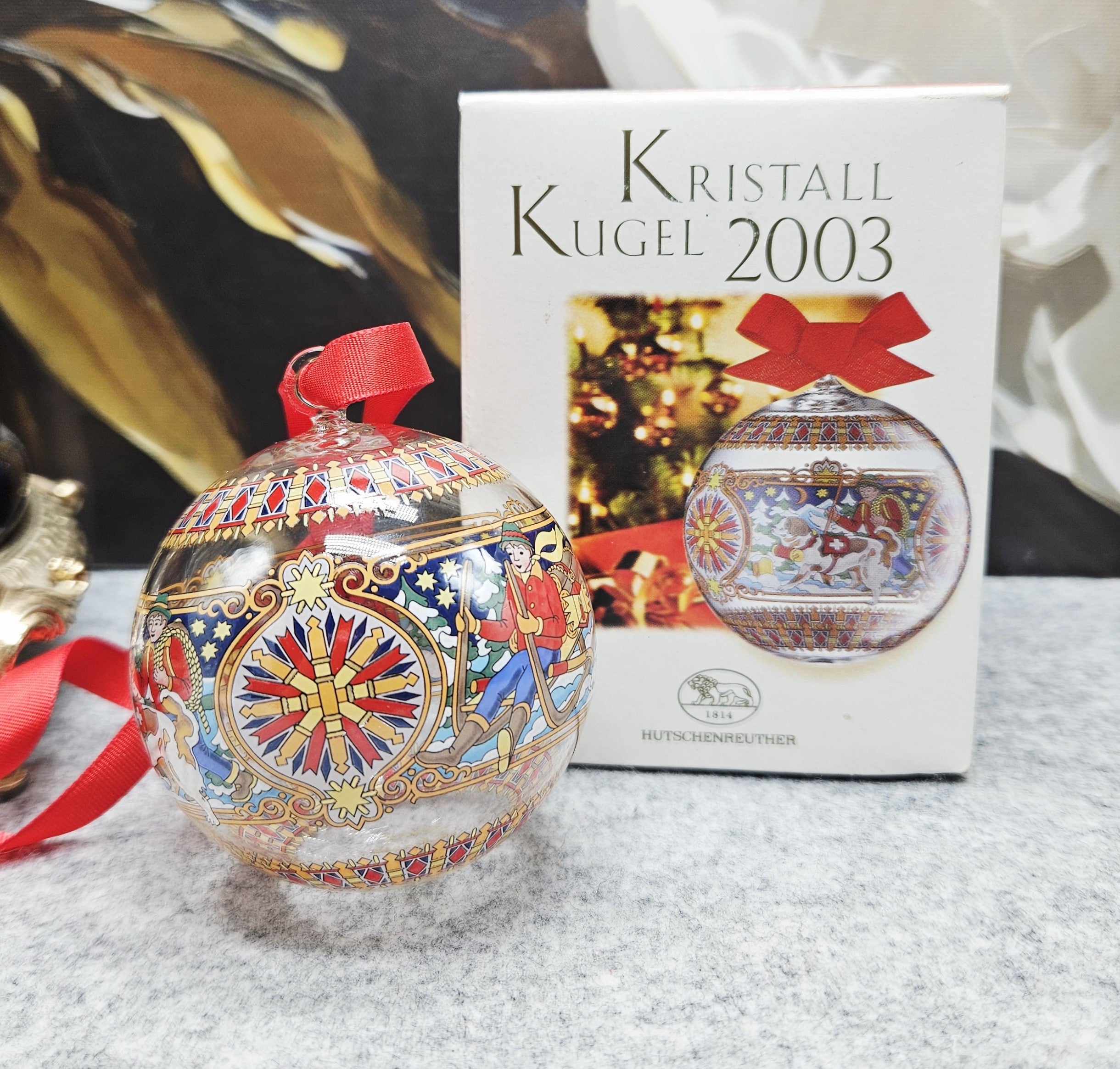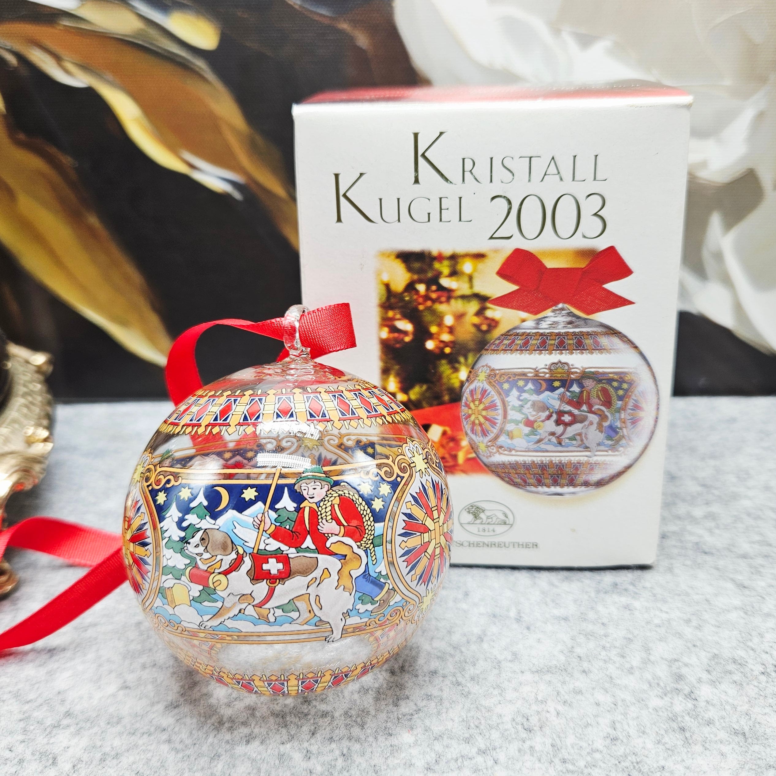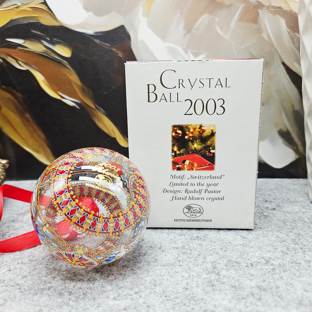 Išskirtinė „Hutschenreuther“ kolekcinė 2003 m. Kalėdinė krištolo eglutės dekoracija su originalia dėžute. Rankų darbo pūstas krištolas puošiamas itin detaliu, spalvingu dizainu “Switzerland”, sukurtu dailininko Rudolf Pastor – motyvas vaizduoja žaismingą pasakojimo sceną su žiemos peizažu ir tradiciniu simbolizmu. Ši kolekcinė Kalėdų sfera buvo leista tik vieneriems metams ir šiandien yra labai vertinama kolekcionierių. Puiki dovana, interjero detalė ir sentimentali, išskirtinė šventinė vertybė.