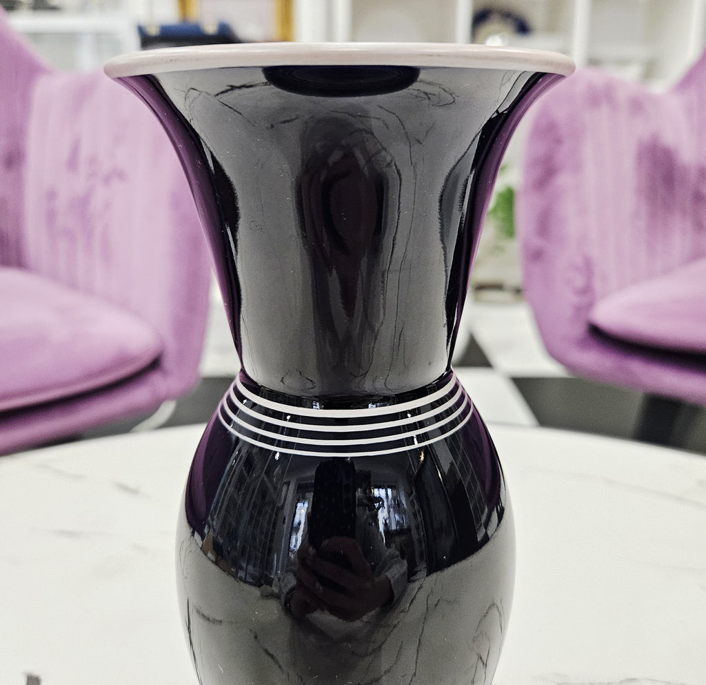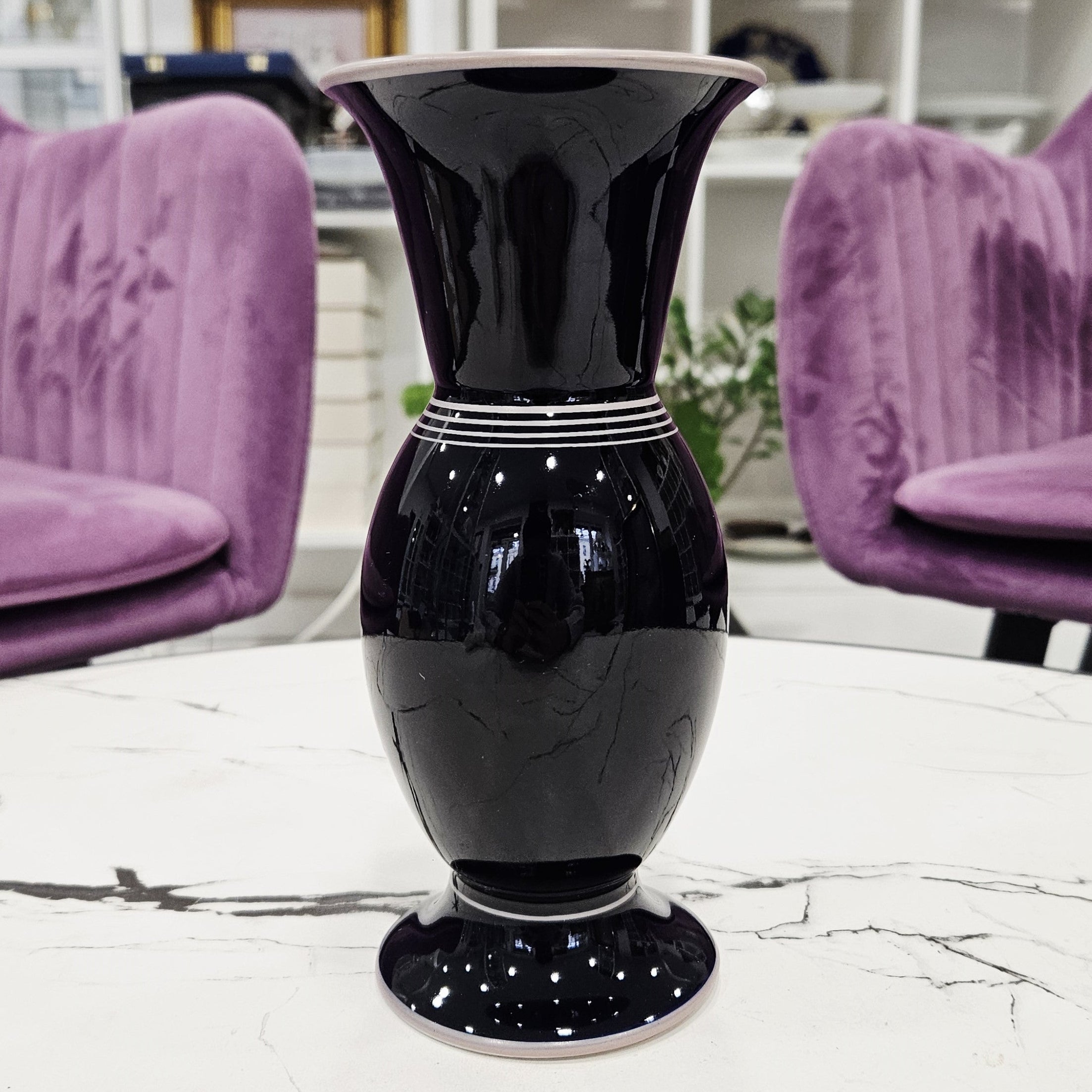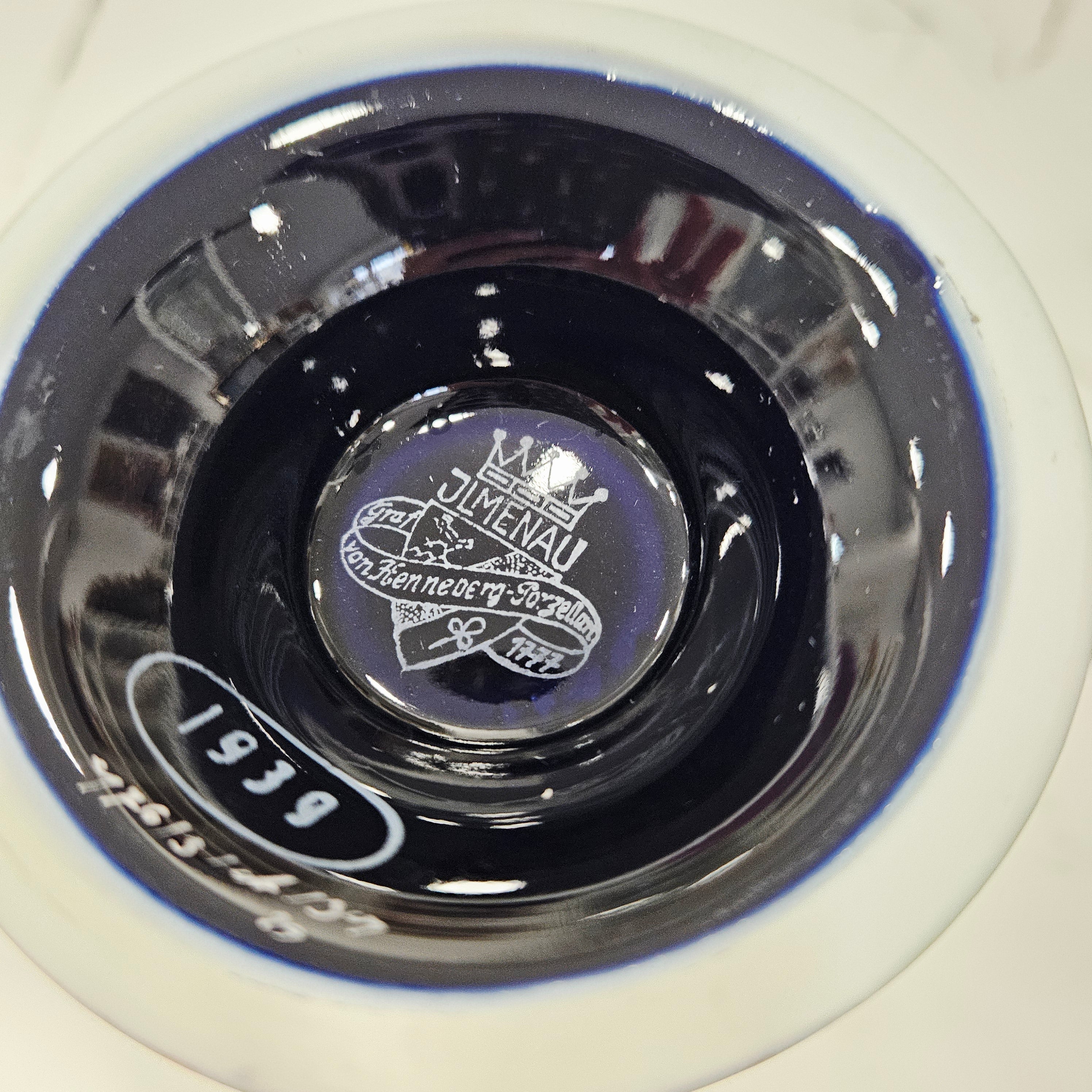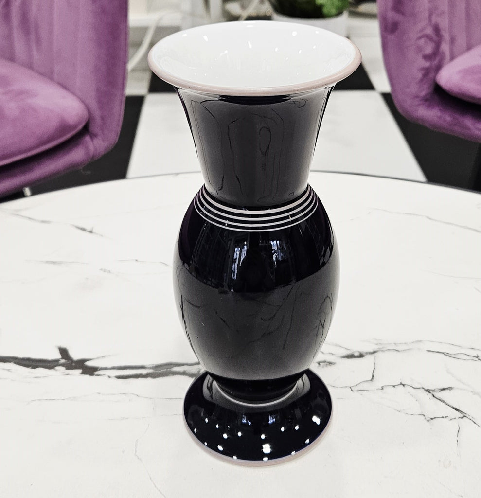 Ši elegantiška "Jlmenau graf von Henneberg porzellan 1777" porceliano vaza išsiskiria sodria tamsiai mėlyna (cobalt blue) glazūra. Minimalistinis dekoras ir klasikinė forma suteikia klasikos ir rafinuotumo jausmą. Tai reprezentatyvus porceliano dirbinys, būdingas tradiciniam Bavarijos meistriškumui, tinkantis tiek interjerui, tiek kolekcijai.