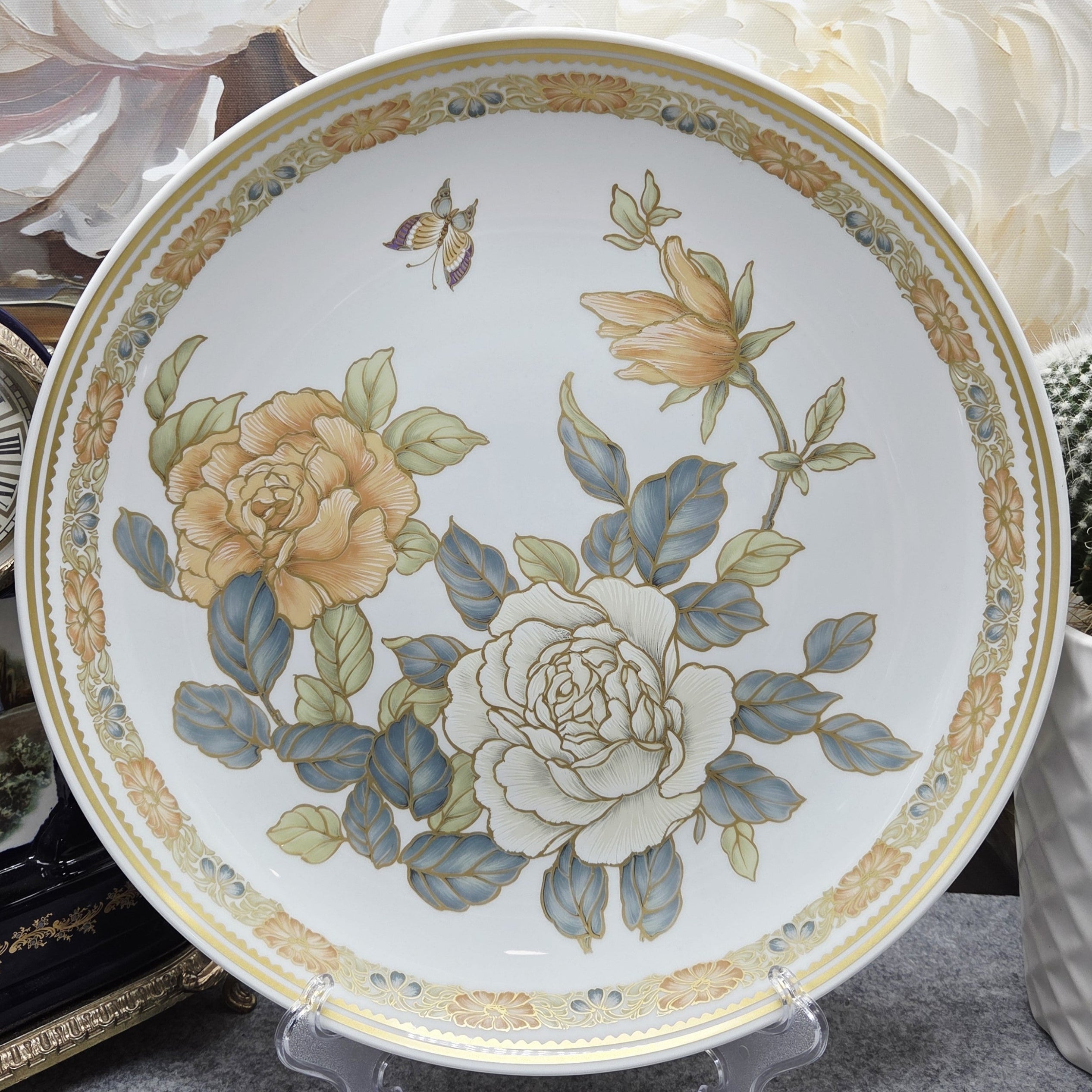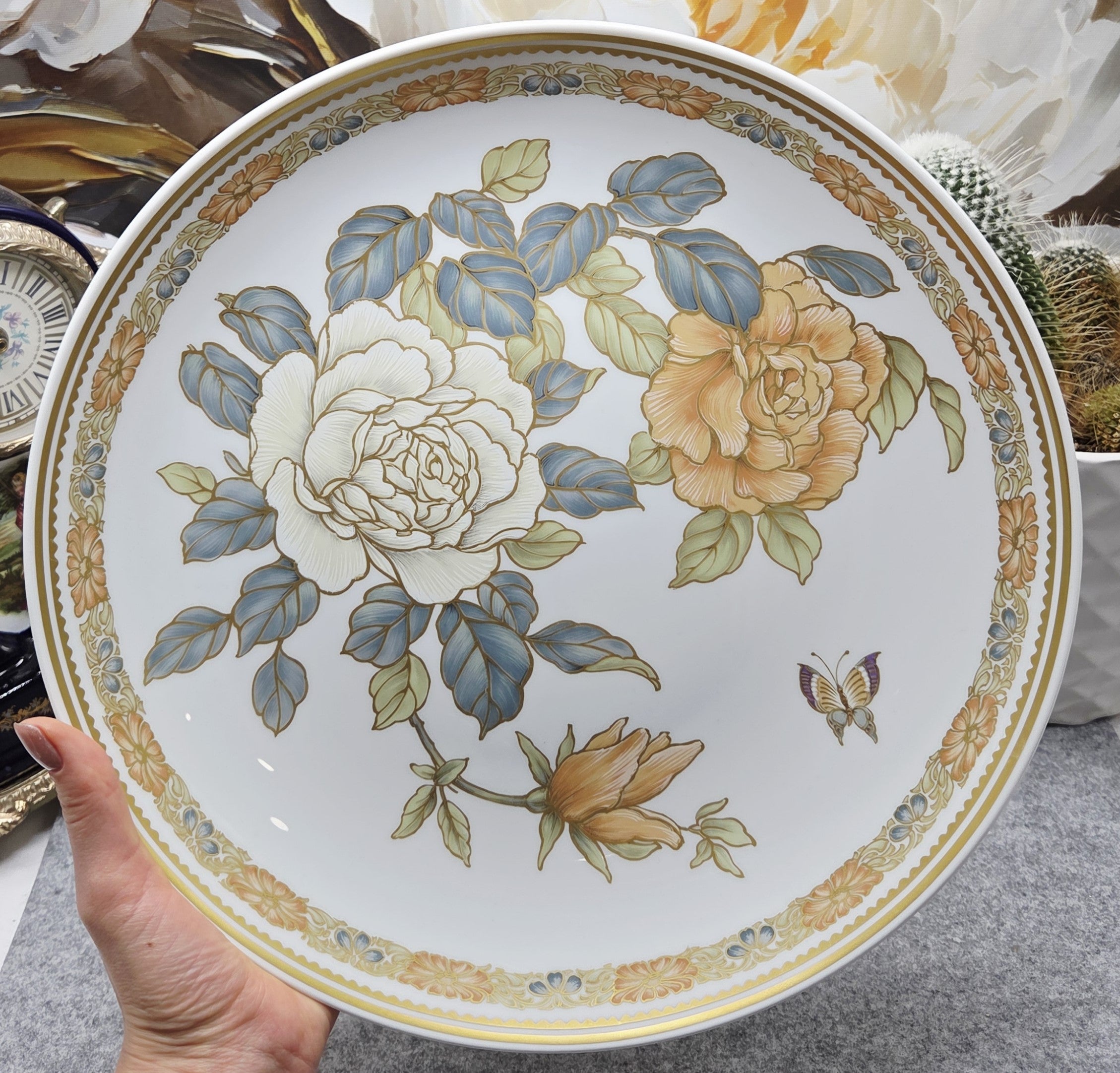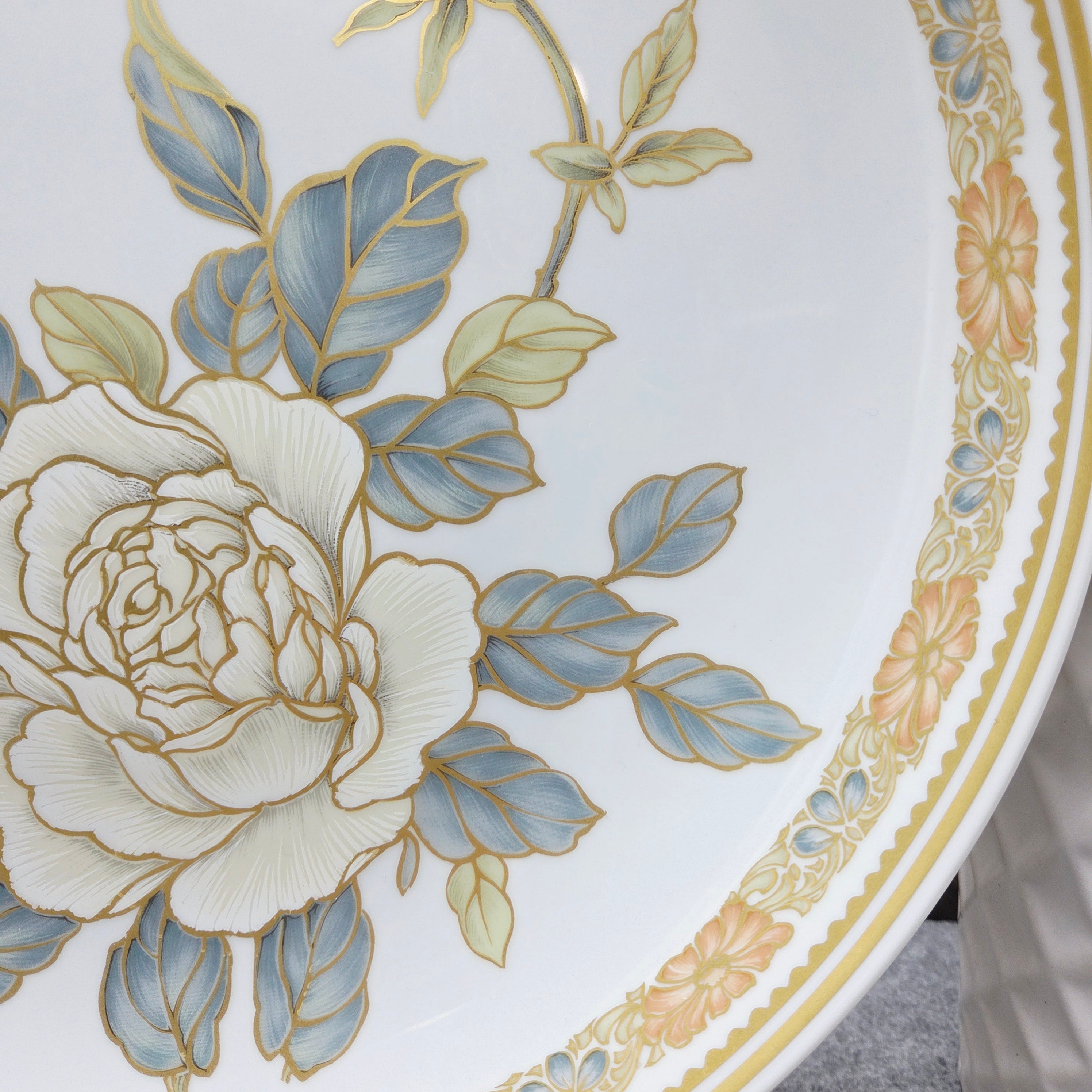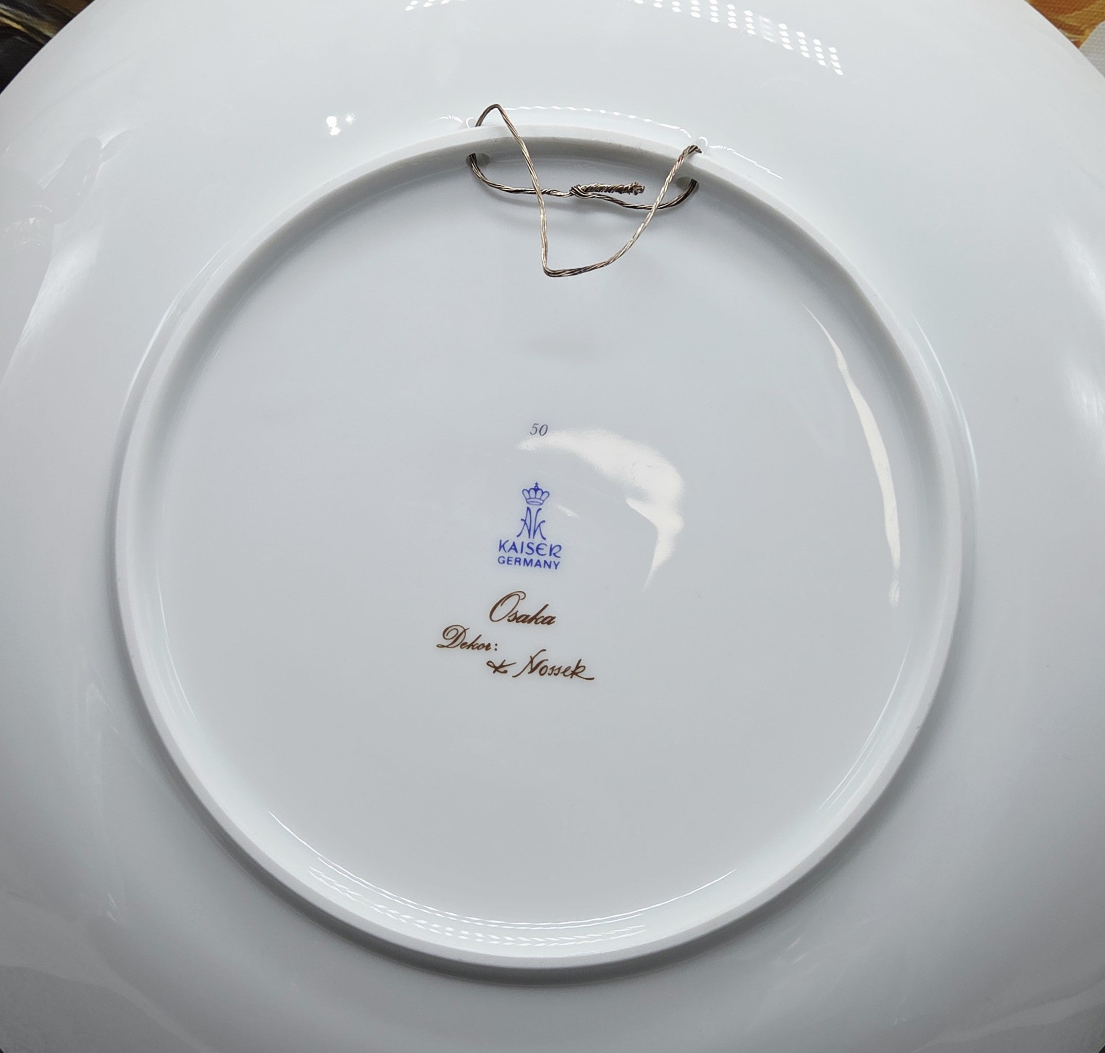 Išskirtinio grožio porcelianinė lėkštė „Osaka“, sukurta garsaus dizainerio Kurt Nossek Vokietijos porceliano manufaktūroje Kaiser. Lėkštė išsiskiria aukso ornamentais, subtiliomis gėlių kompozicijomis švelnių persikinių ir baltų tonų derinyje bei prabangiu glazūros blizgesiu.
