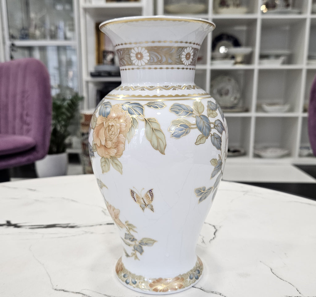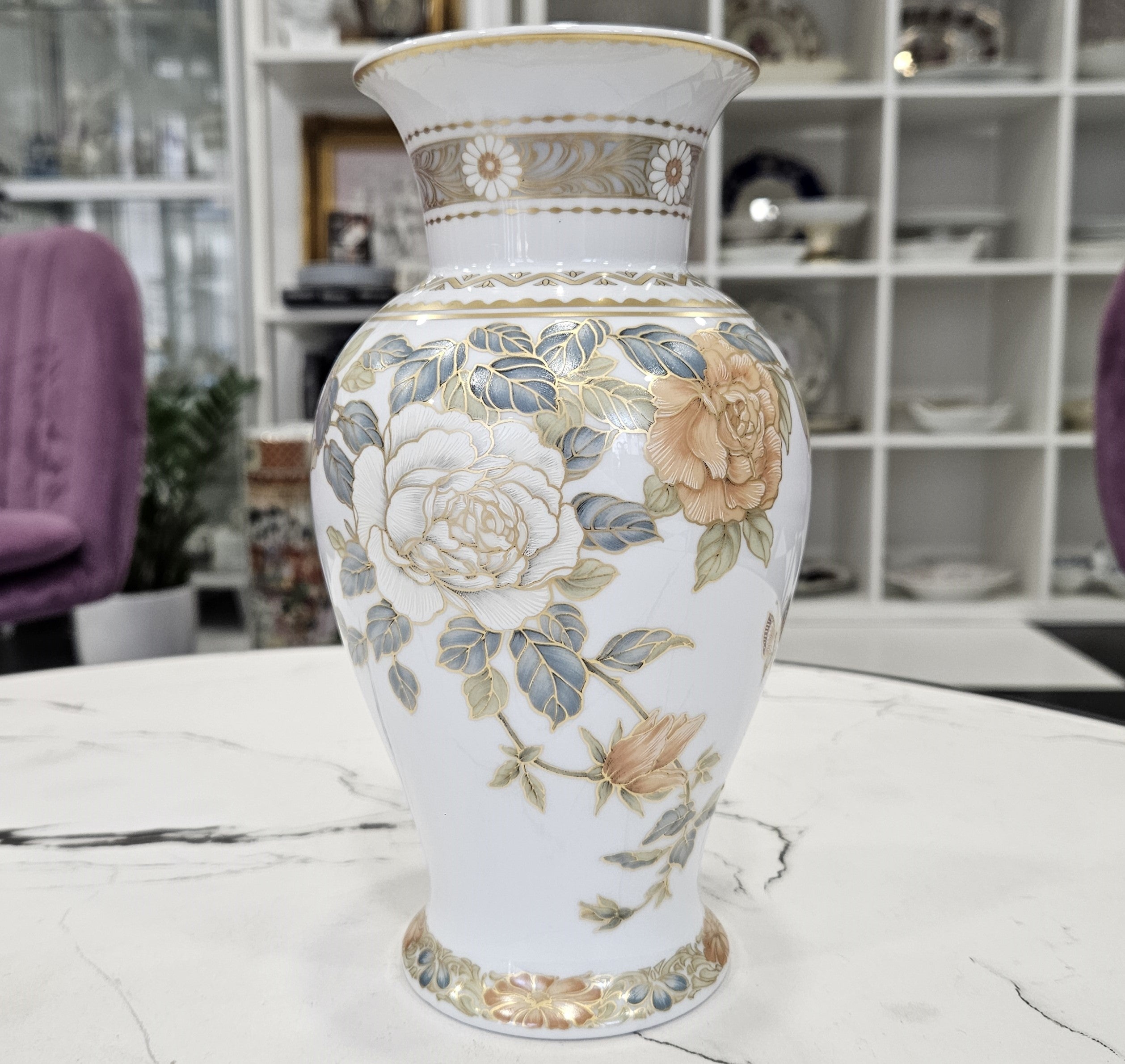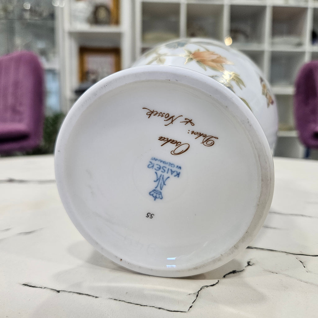 Išskirtinio grožio porcelianinė vaza „Osaka“, sukurta garsaus dizainerio Kurt Nossek Vokietijos porceliano manufaktūroje Kaiser. Vaza išsiskiria aukso ornamentais, subtiliomis gėlių kompozicijomis švelnių persikinių ir baltų tonų derinyje bei prabangiu glazūros blizgesiu.