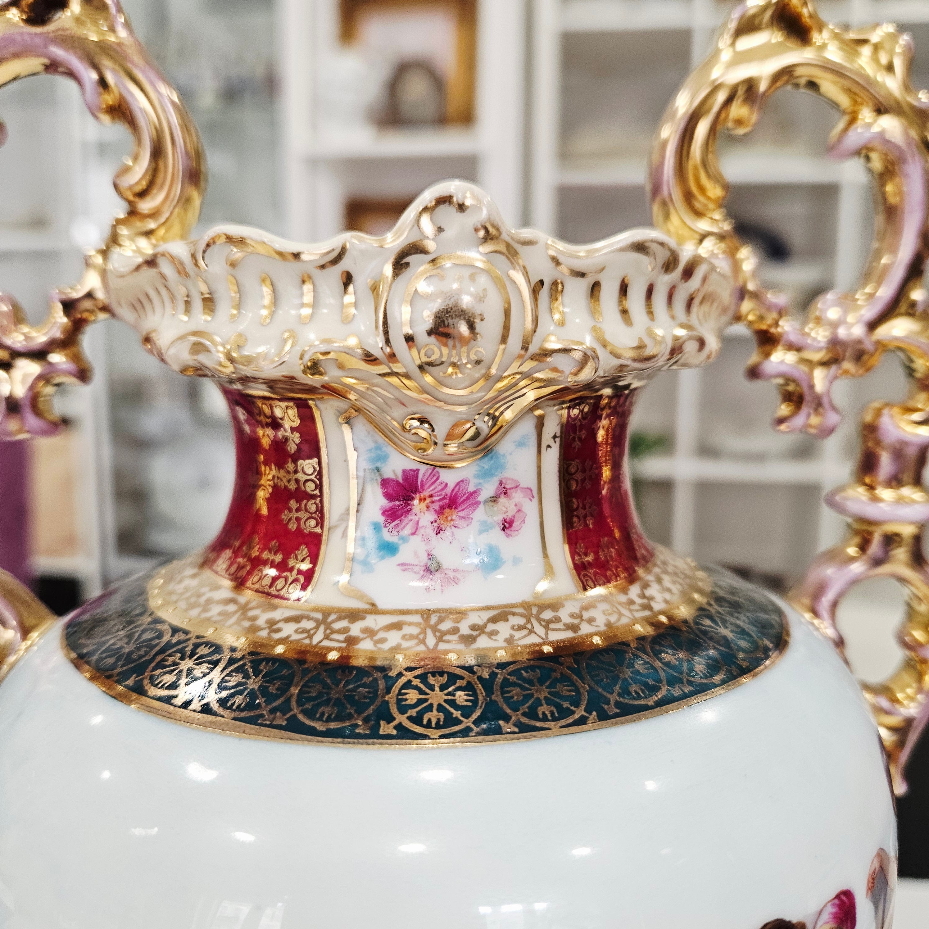 Kolekcinė "Augarten" amforinė vaza, dekoruota figūrinėmis scenomis ir auksu (33cm)