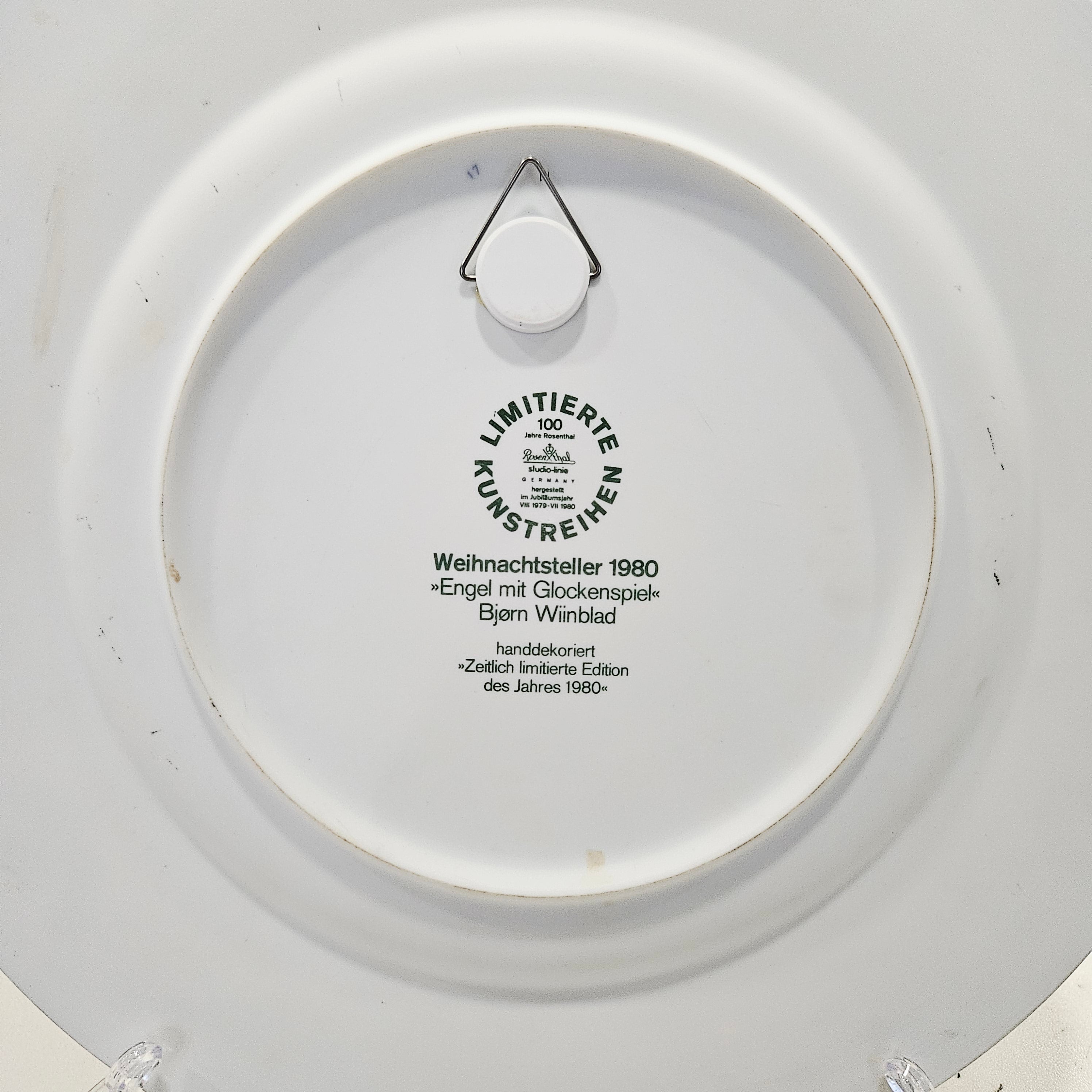 „Rosenthal“ 1980 m. dekoratyvinė lėkštė „Engel mit Glockenspiel“ („Angelas su varpeliais“) – tai subtilus ir poetiškas kolekcinis porceliano kūrinys, atspindintis „Rosenthal“ sakralinės ir simbolinės dailės tradiciją.