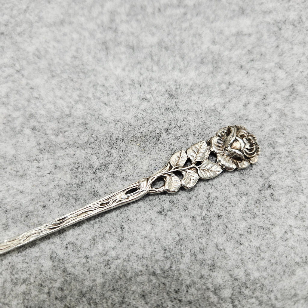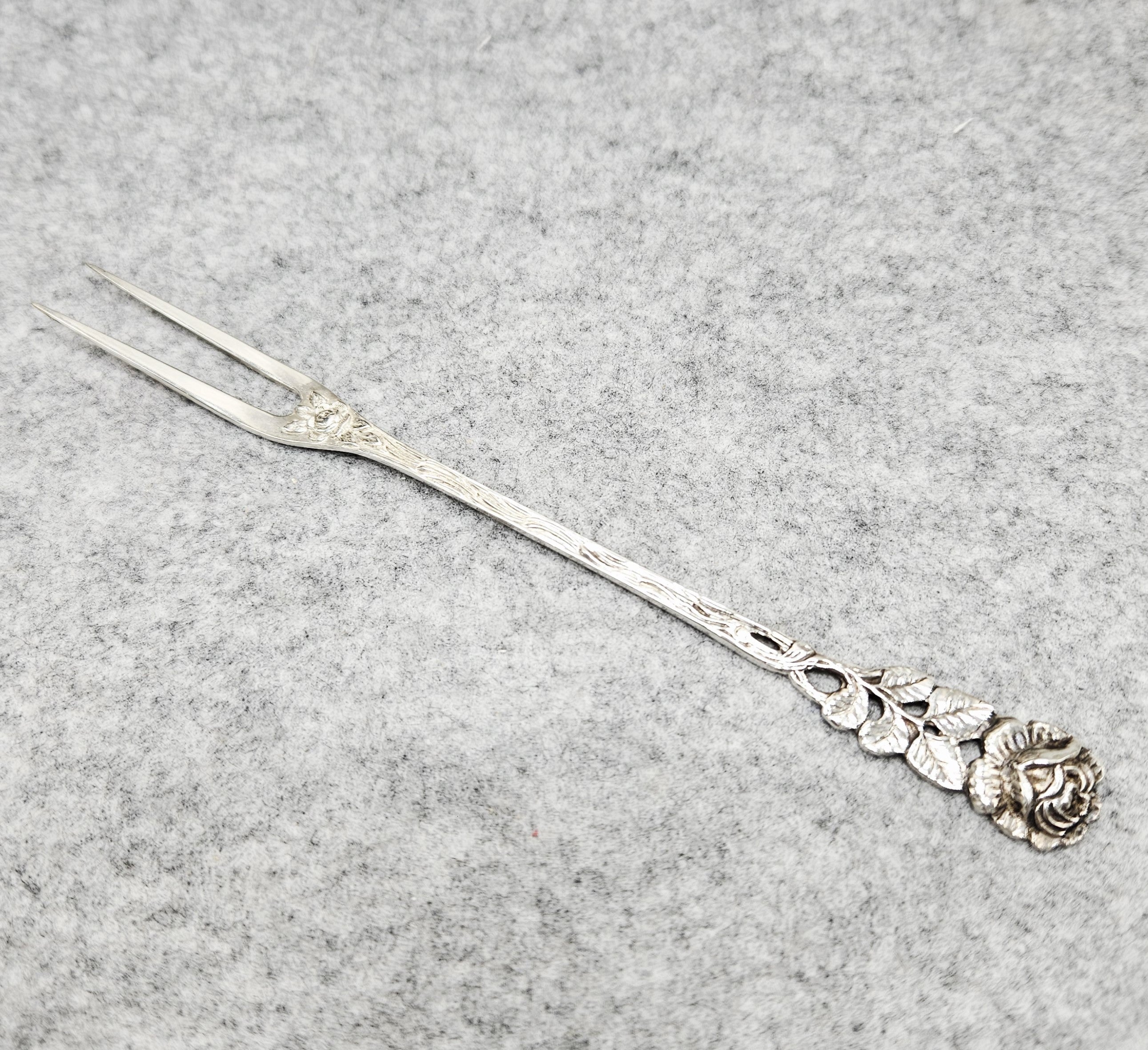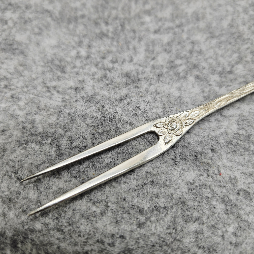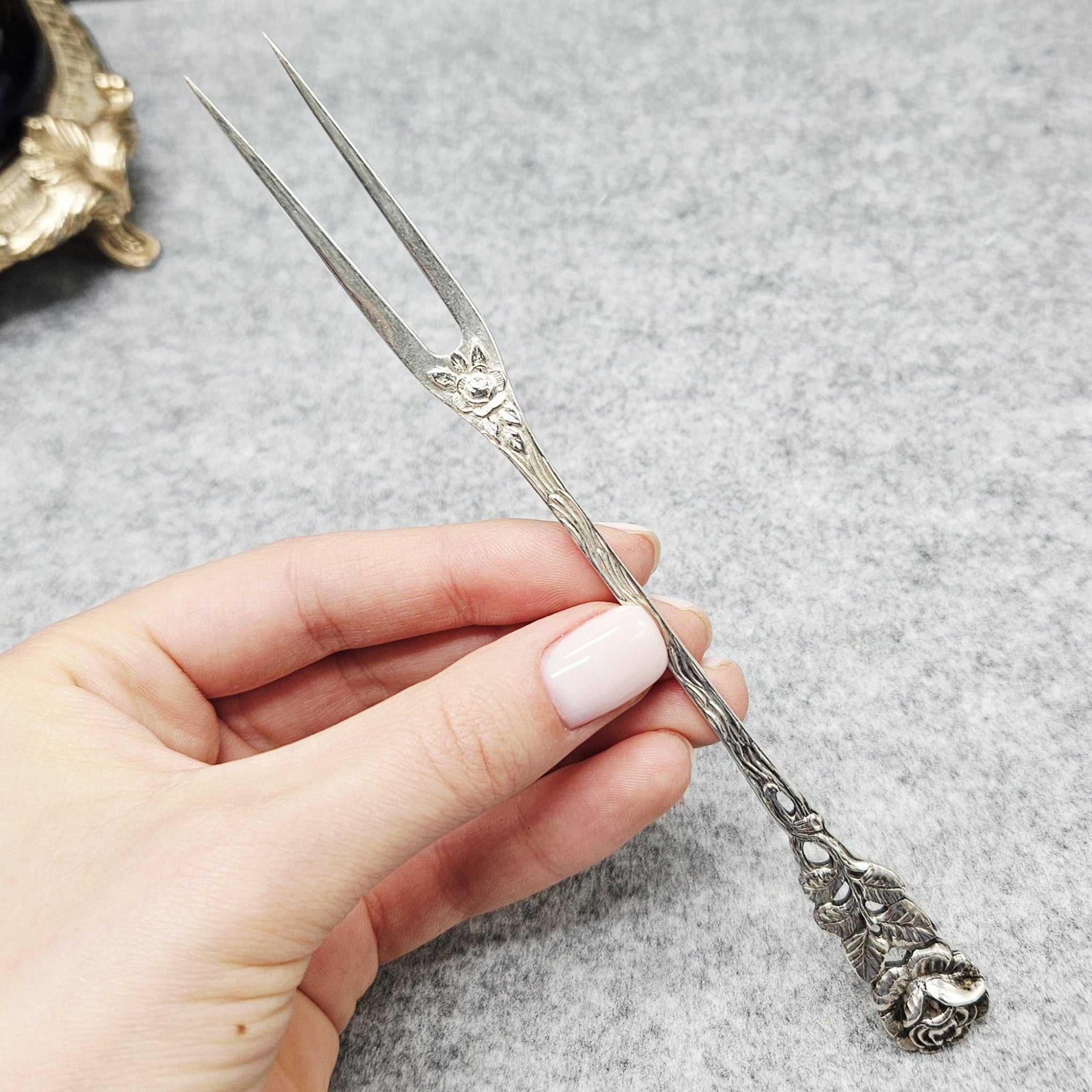 Nuostabi, sidabrinė, unikali, rankų darbo, dekoruota rožių žiedais, ANTIKO šakutė su dviem dantukais.