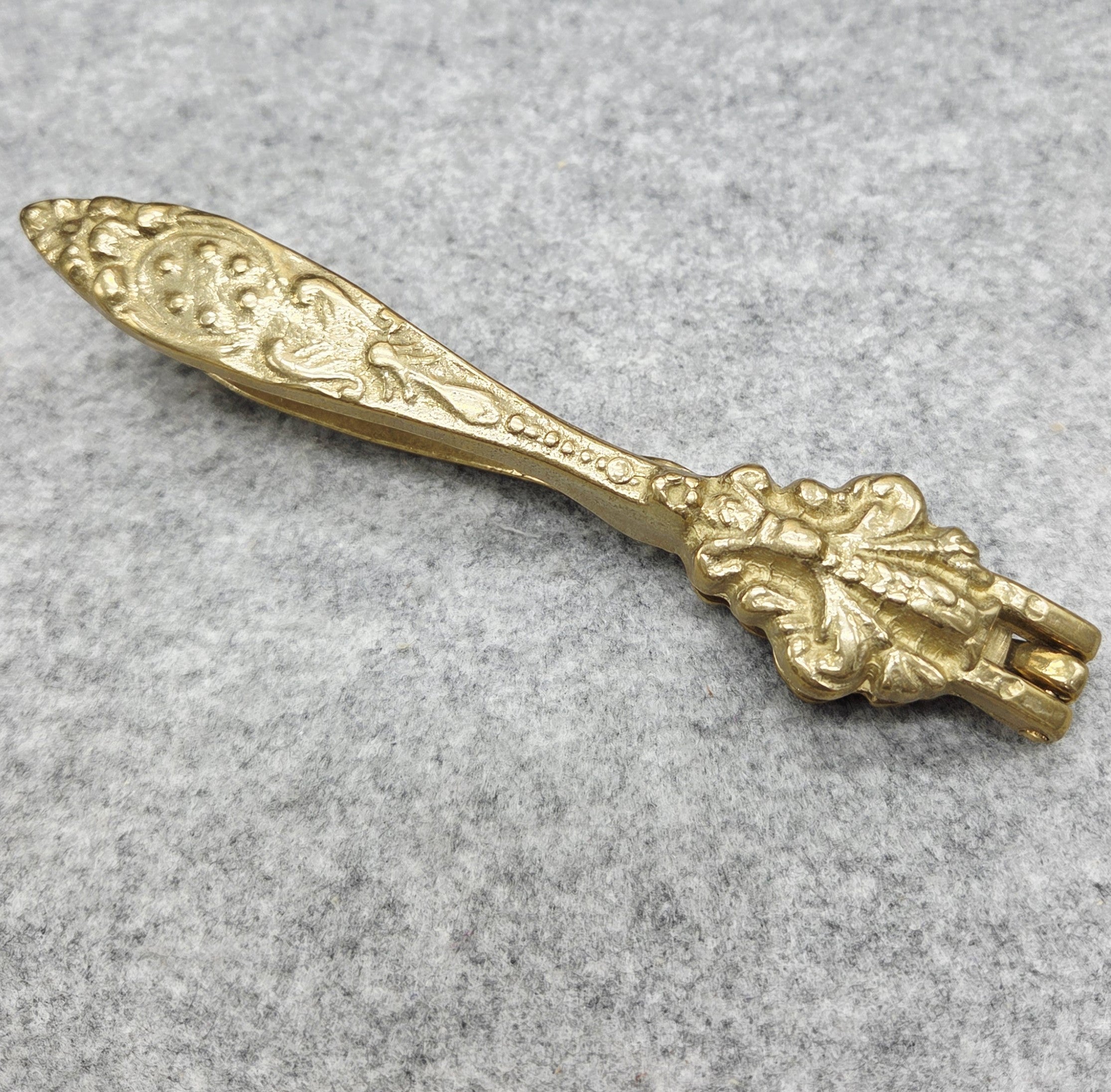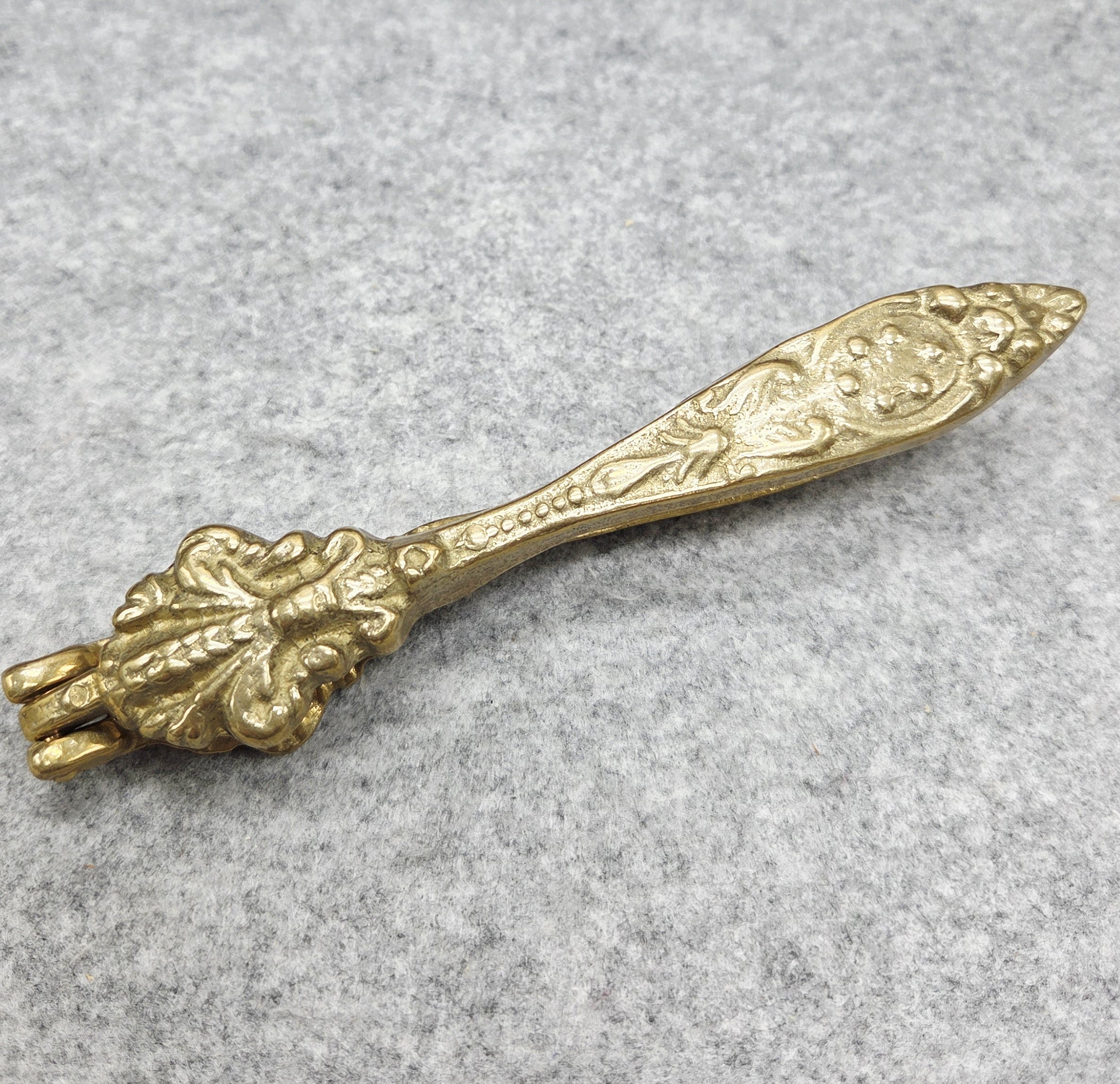 Prie rinkinio pridedamas rankinis riešutų spaustukas, dekoruotas reljefiniais motyvais, kurie pabrėžia dirbinio meistriškumą ir suteikia jam išskirtinio charakterio. Žalvaris laikui bėgant įgauna gražią, šiltą patiną, todėl tokie dirbiniai vertinami ne tik dėl funkcionalumo, bet ir dėl dekoratyvinės vertės.