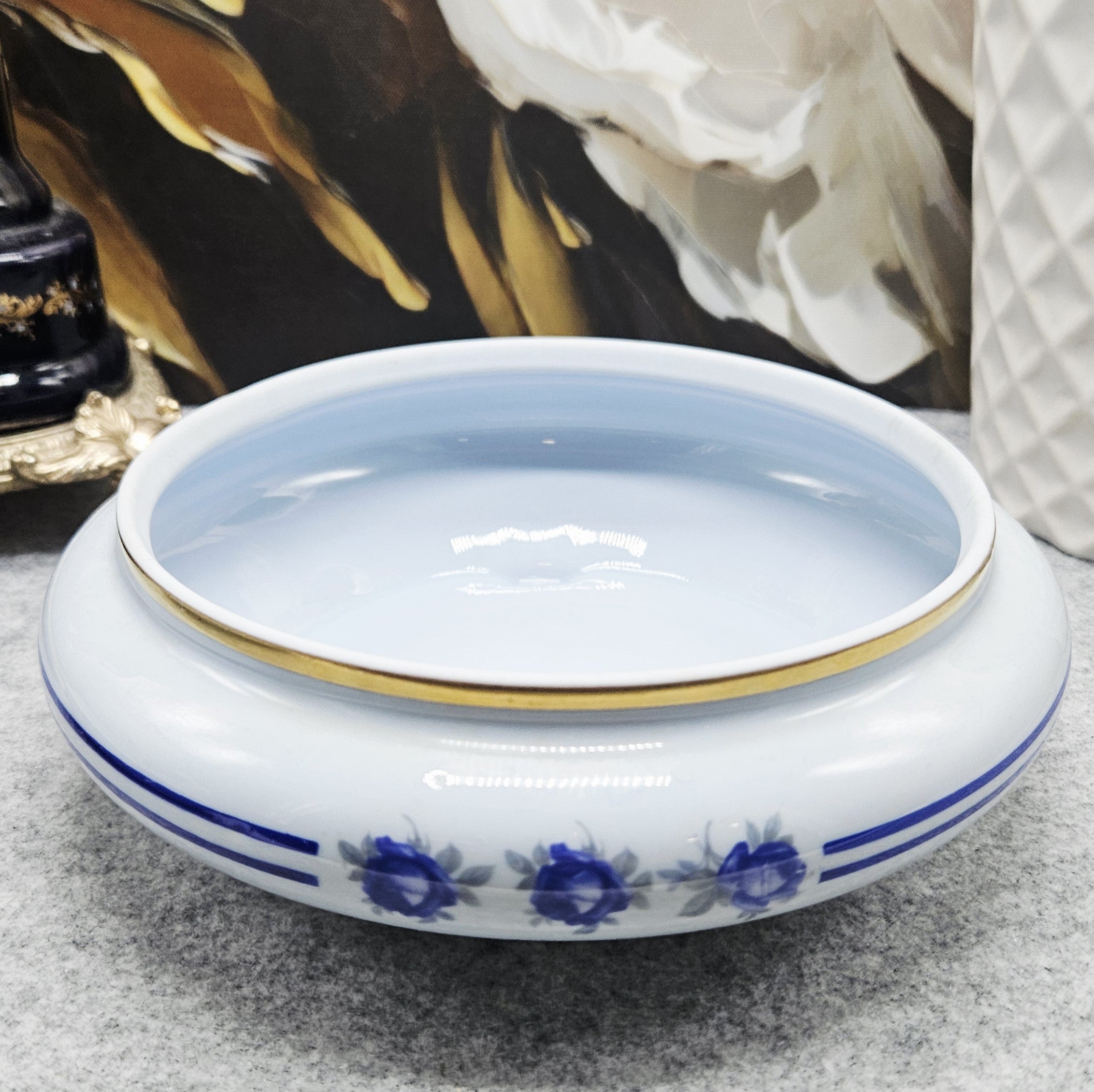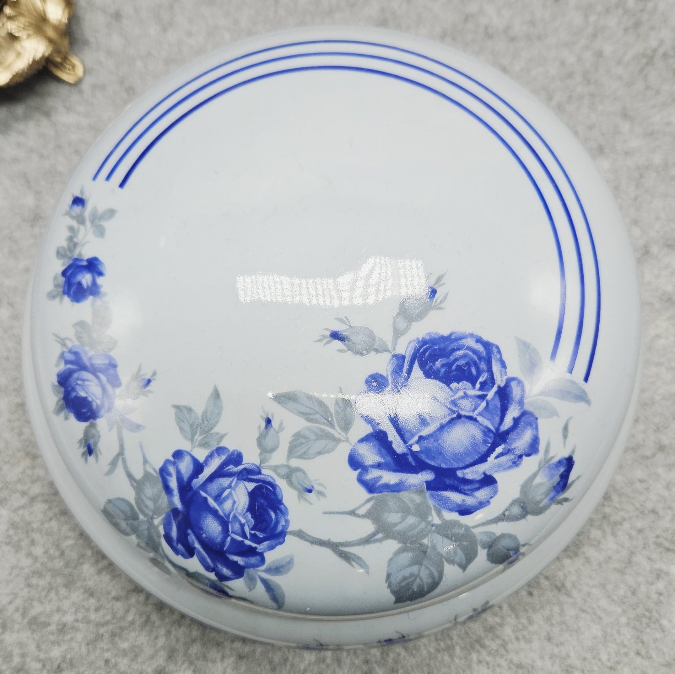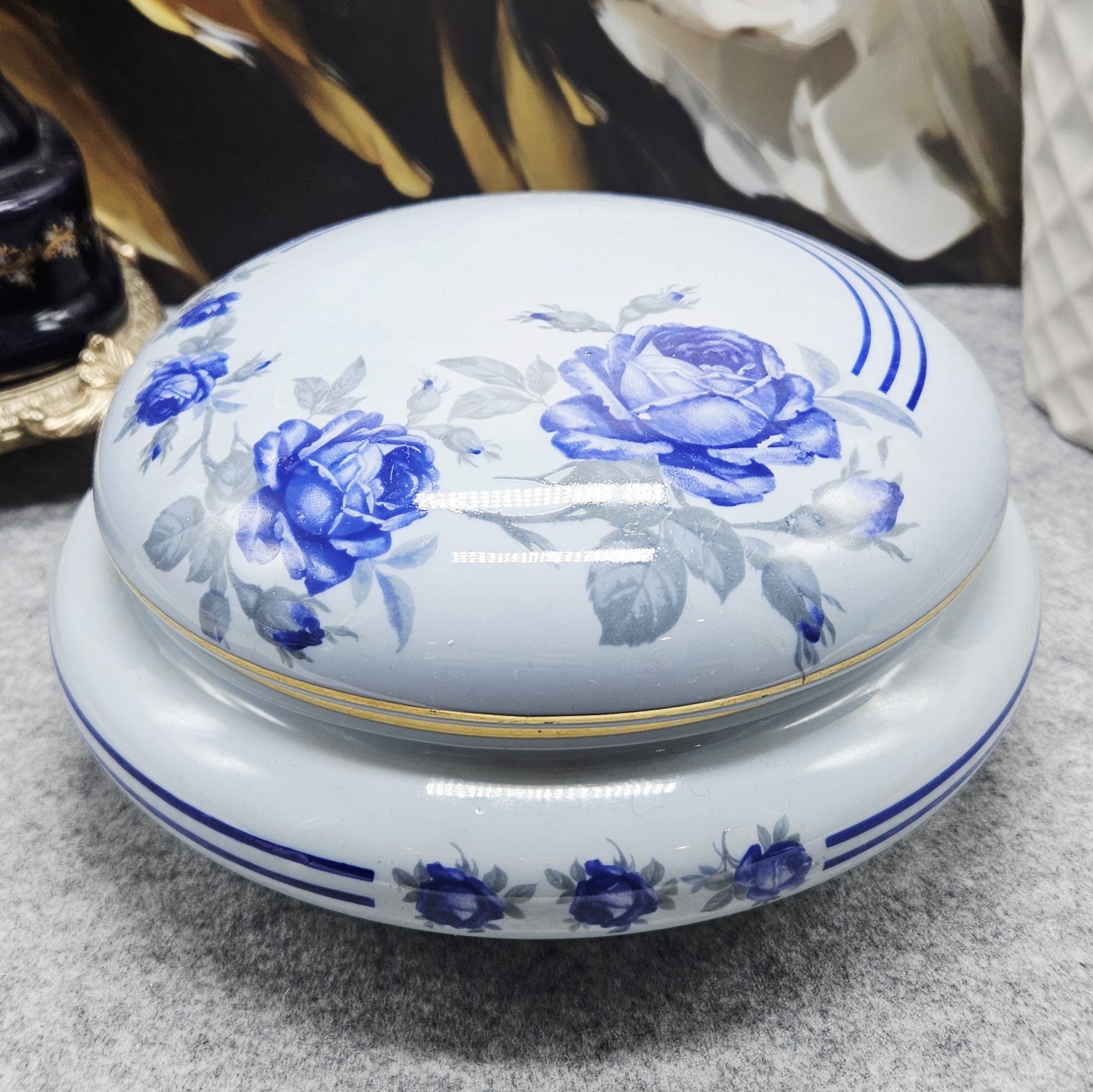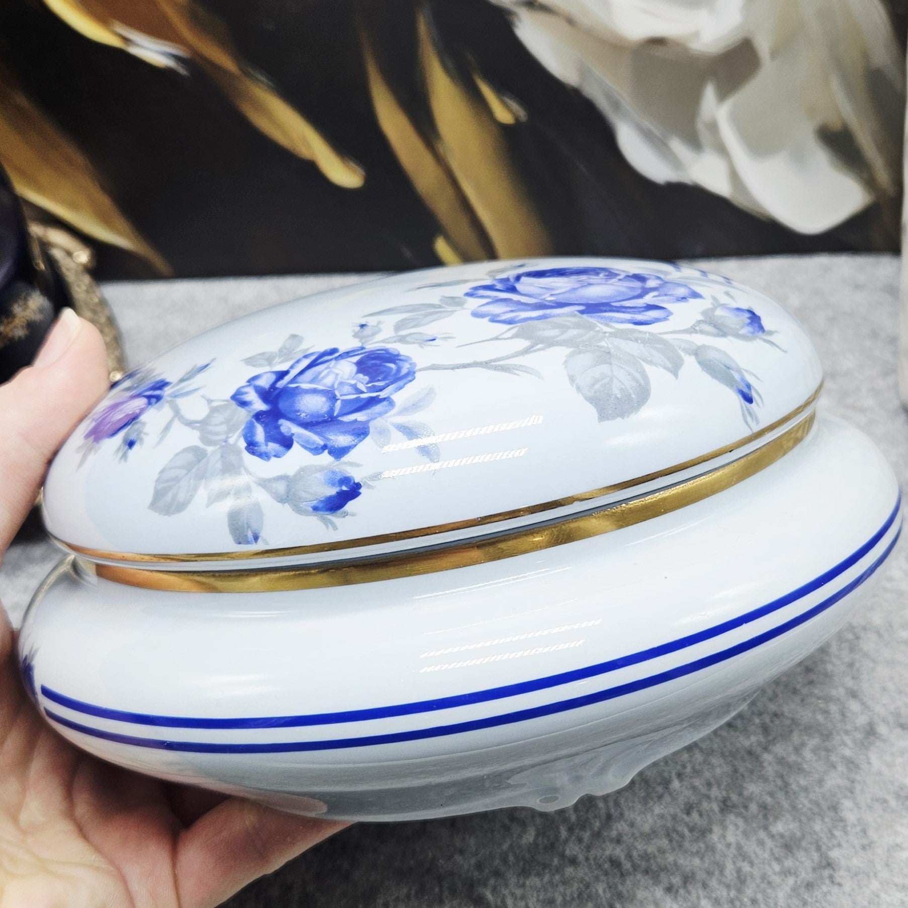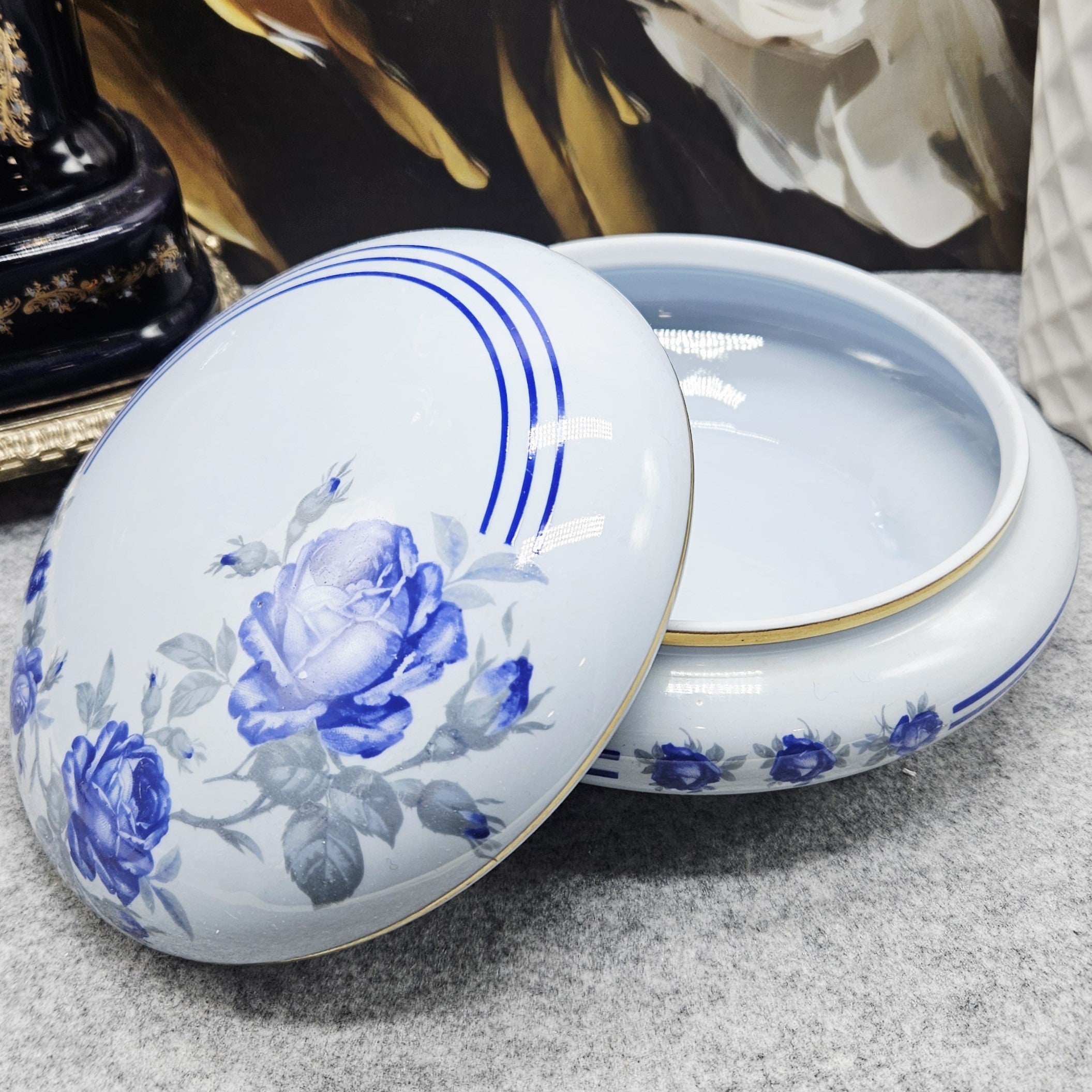 „Ćmielów“ porceliano saldaininė su dangteliu, dekoruota mėlynomis rožėmis