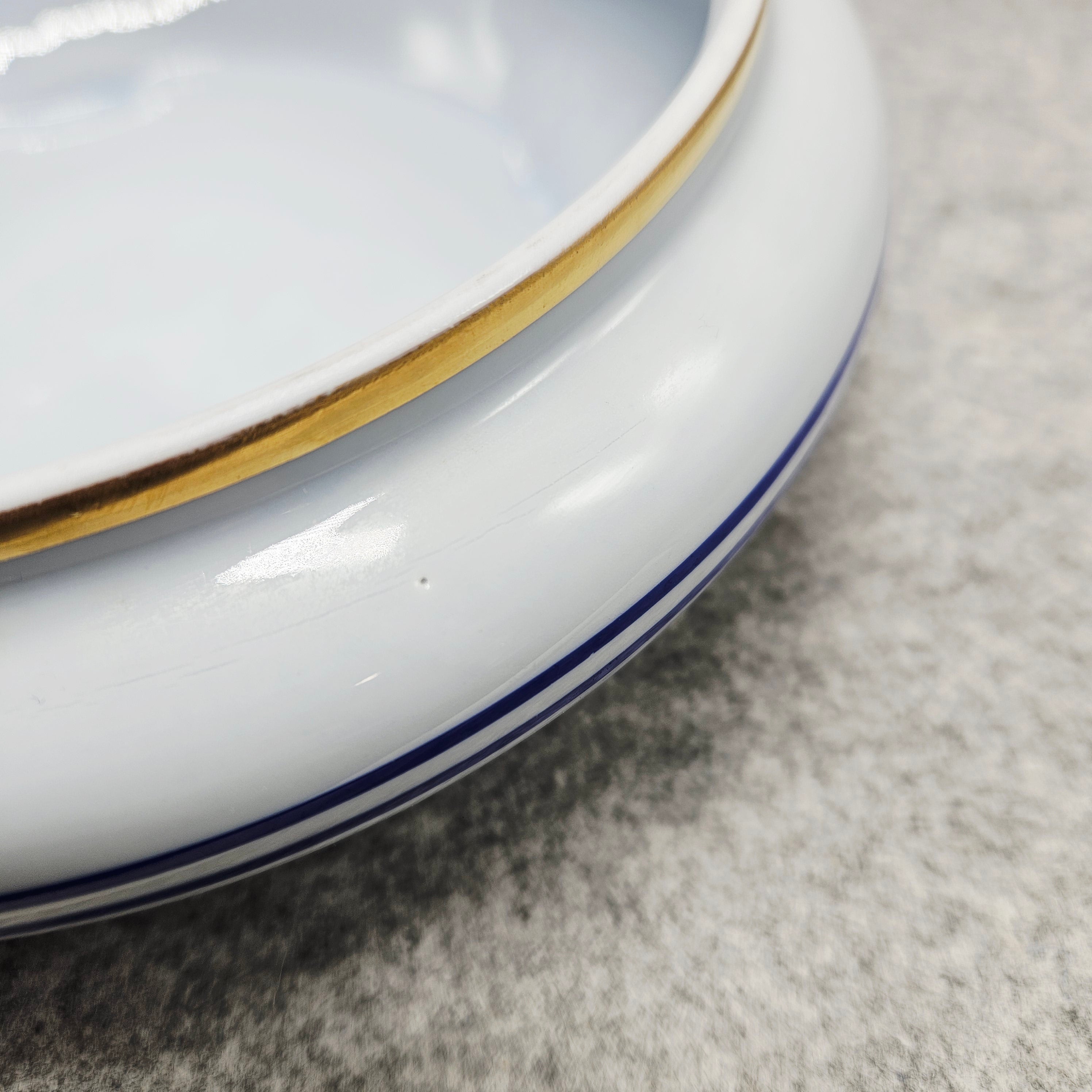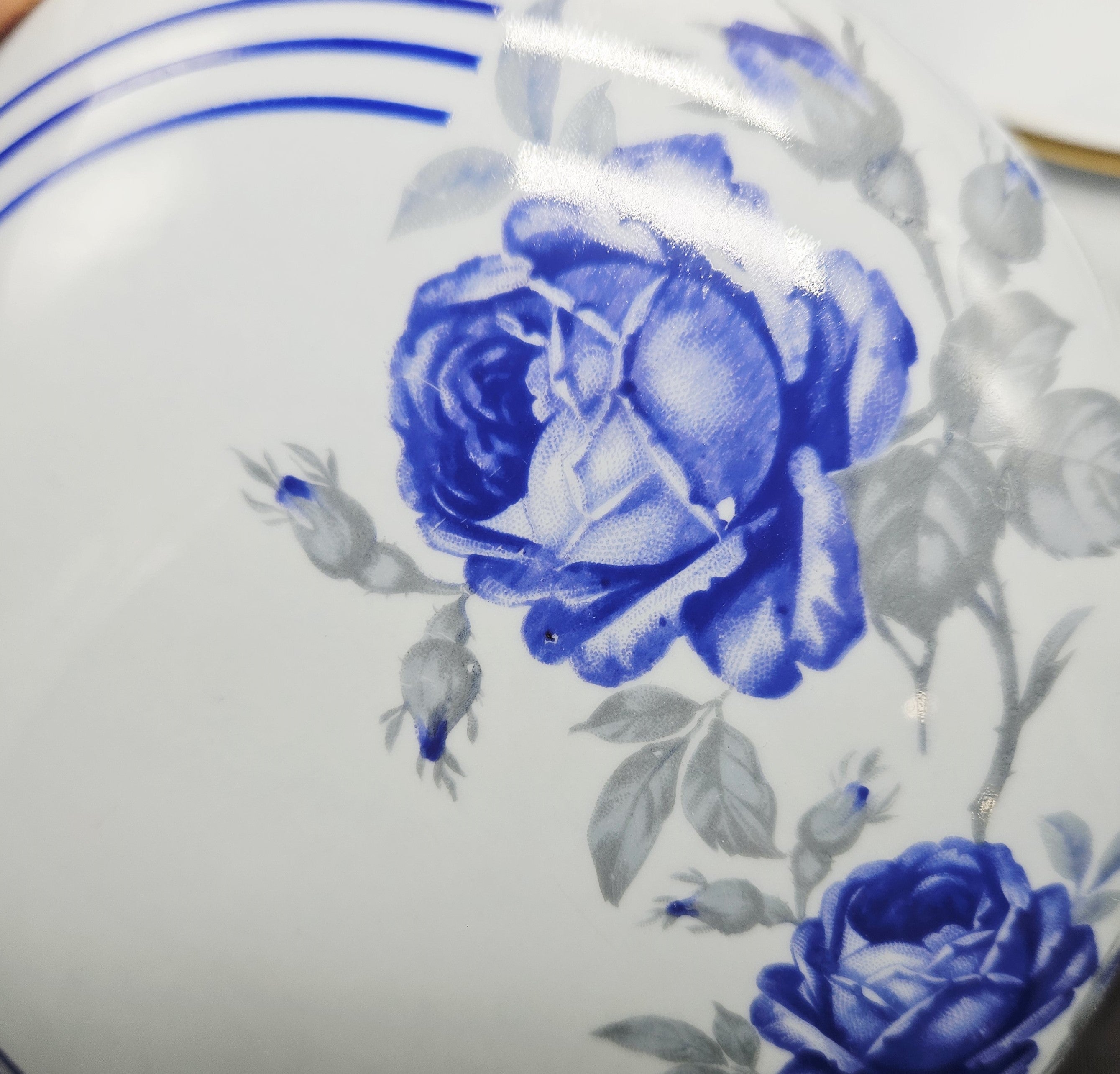 Kadangi tai yra antikvaras (daugiau nei 50+ m. amžiaus), turi natūralių naudojimo žymių, nežymiai pabraižytos rožės ir aukso linijos. (vadovautis nuotraukomis)