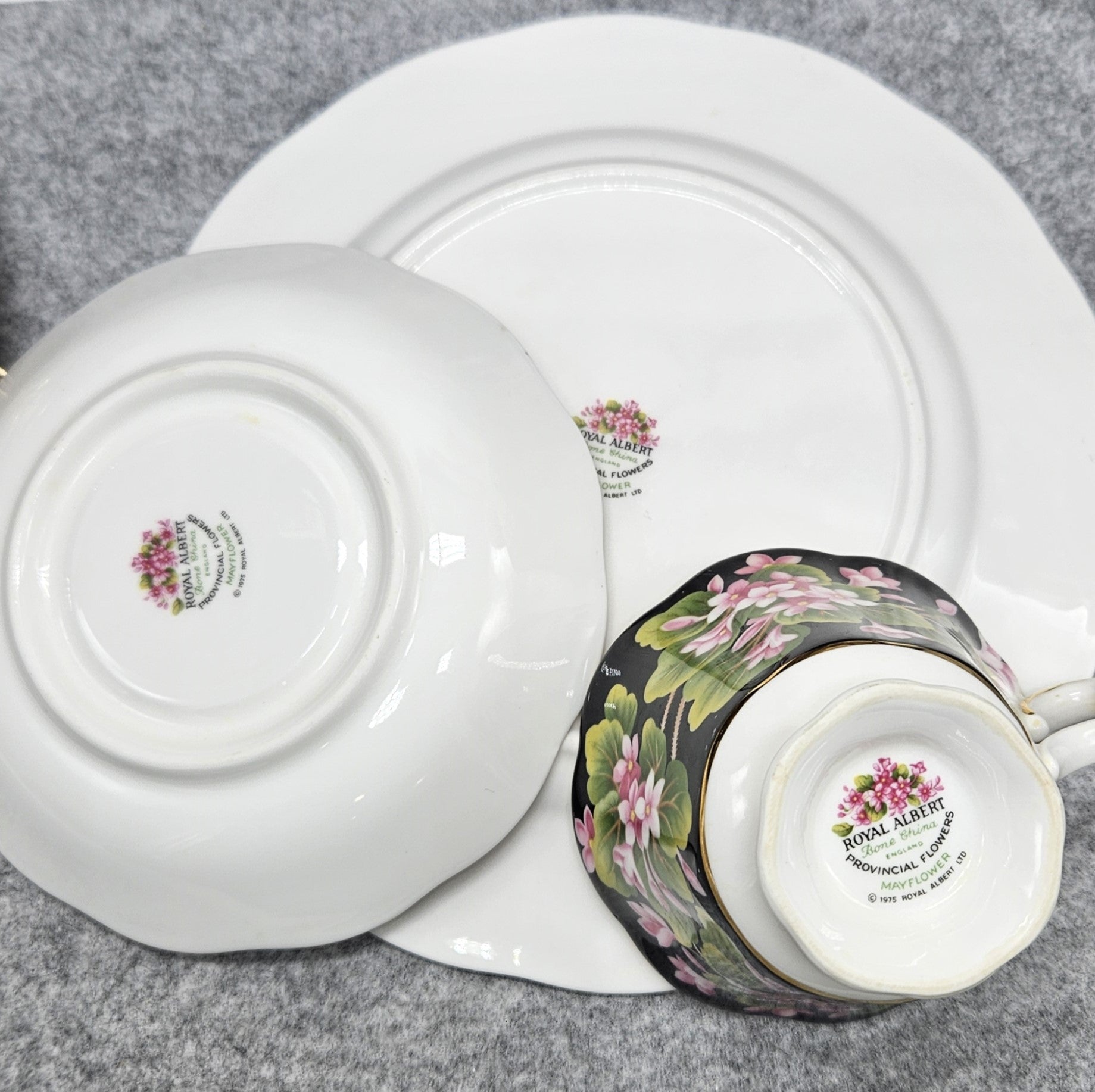 Šis elegantiškas „ROYAL ALBERT“ porceliano puodelis su lėkštutėmis yra iš serijos „Provincijos gėlės“ ir yra skirtas itin žaviam, dekoratyviniam augalui – Mayflower. Jis turi kvapnius, saldžiai kvepiančius žiedus, kurie gali būti balti arba įvairių atspalvių rausvi.
